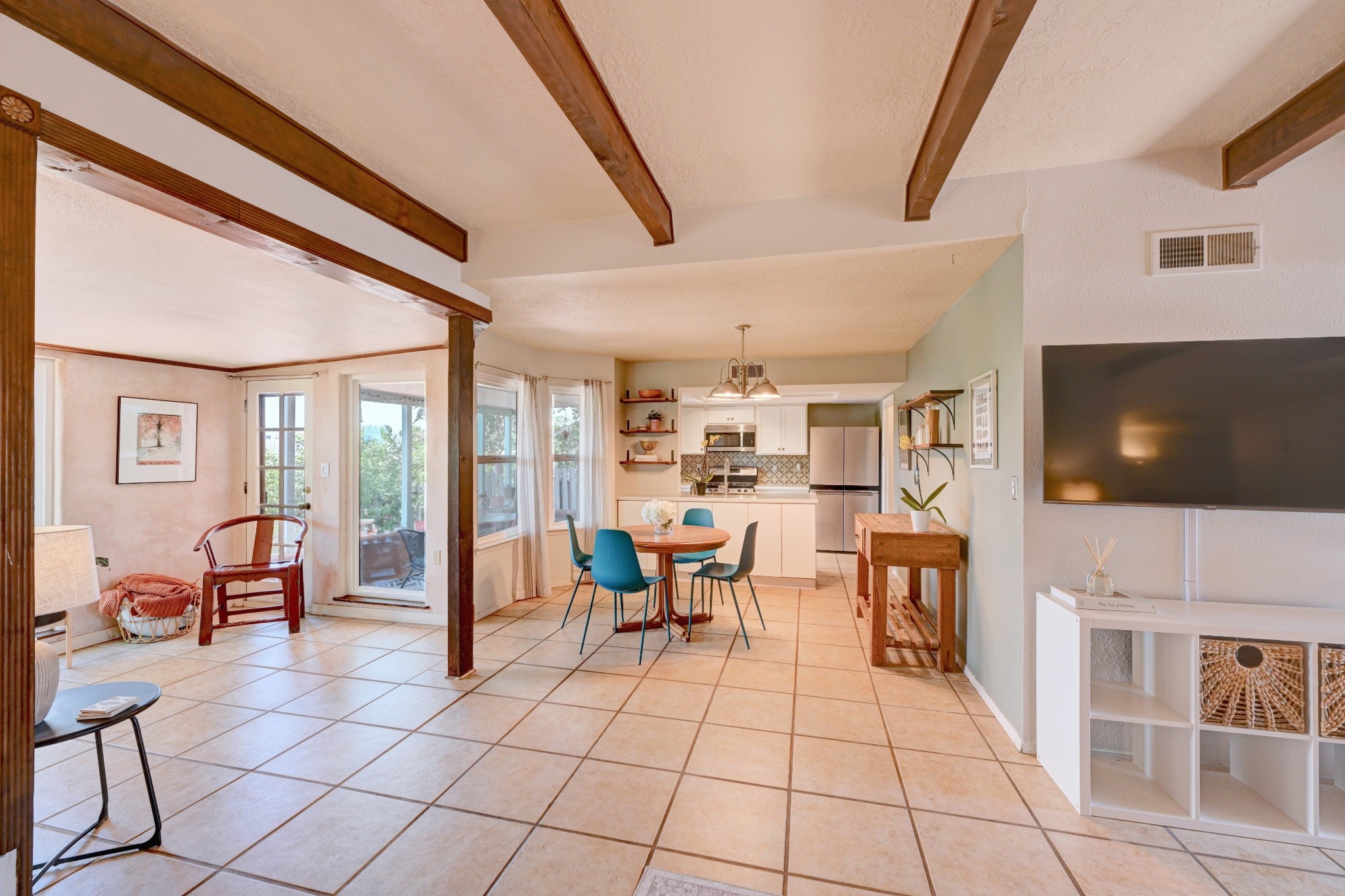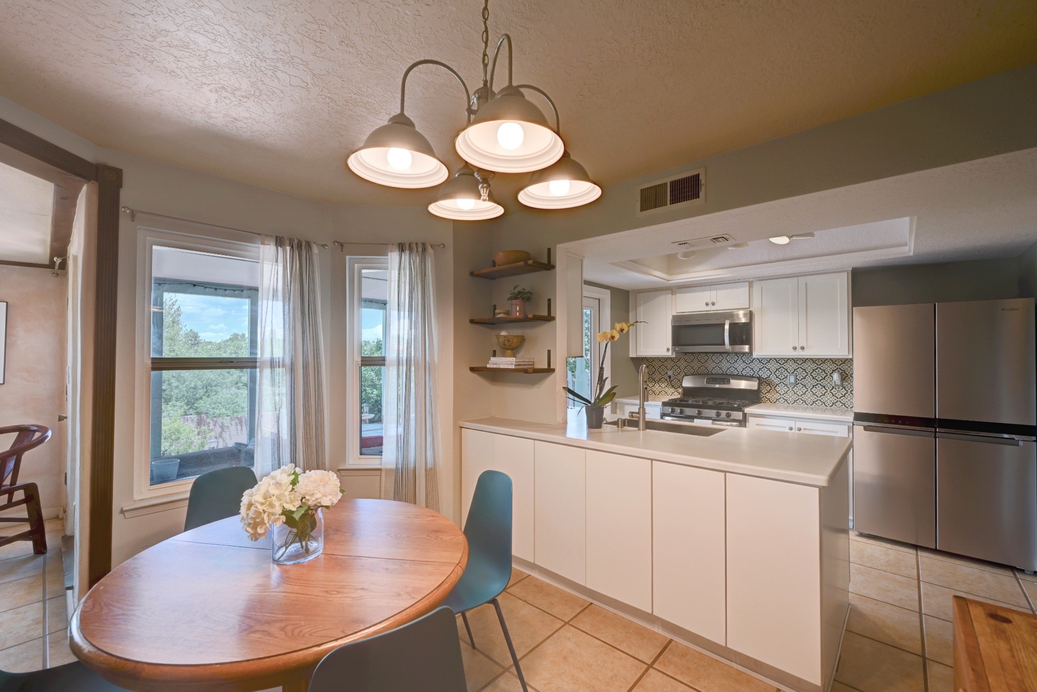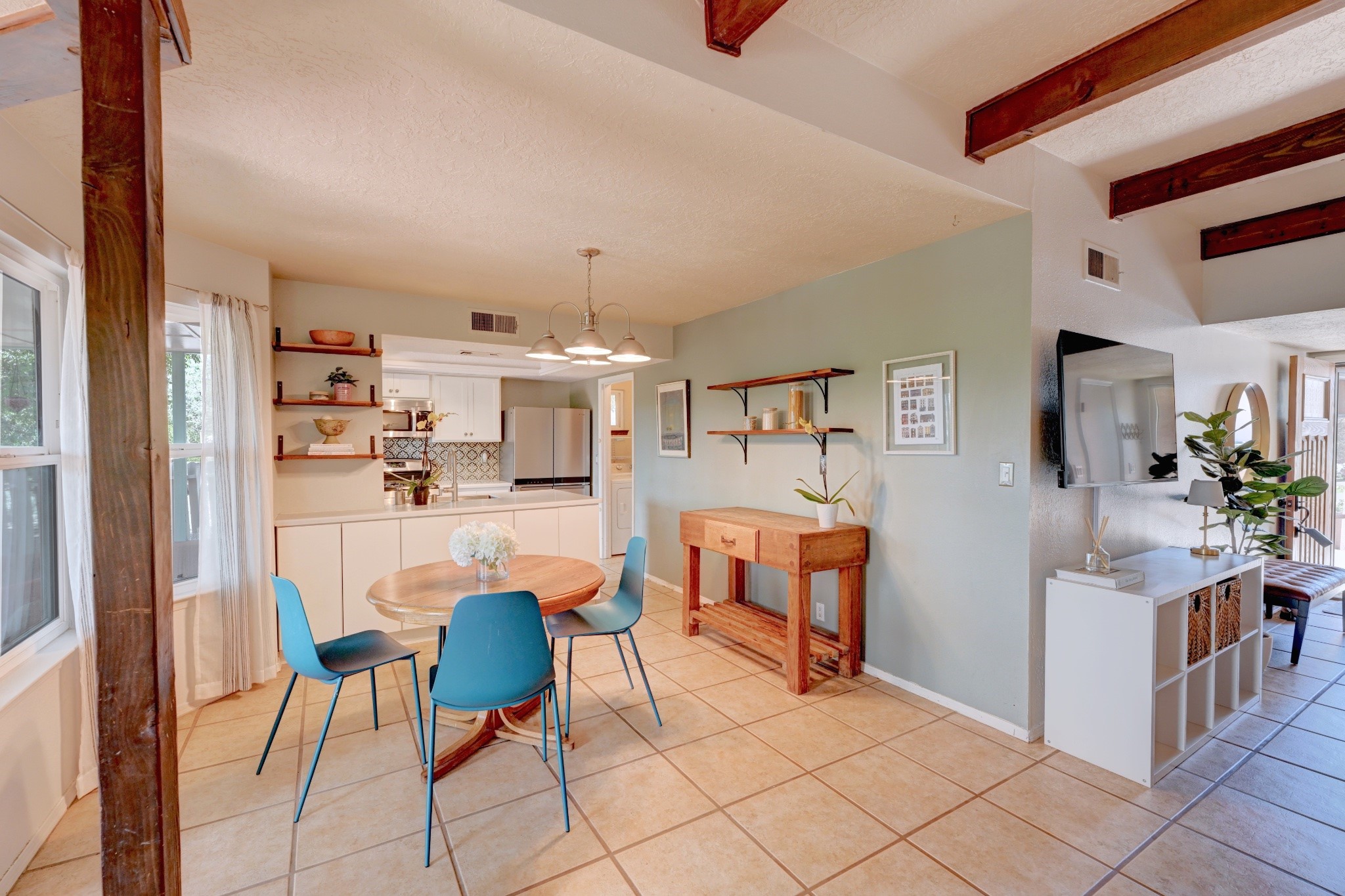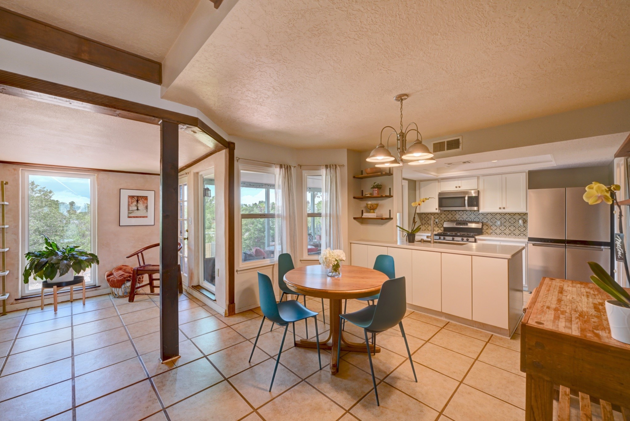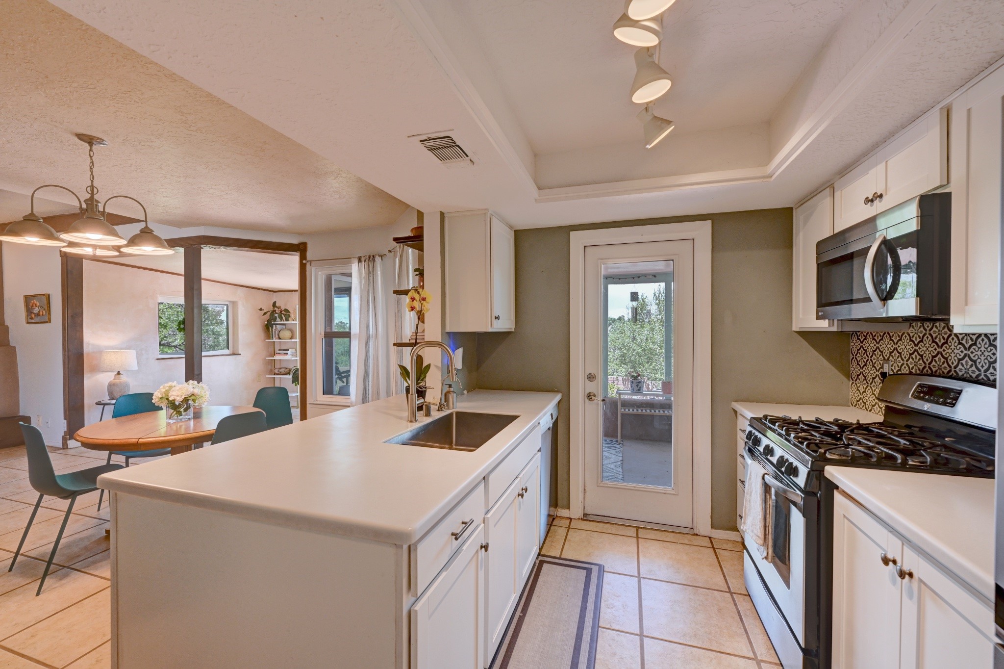 Nestled in a quiet and friendly Santa Fe neighborhood, this updated 3-bedroom, 2-bathroom home blends charm with modern convenience. With 1,154 square feet of interior space, the layout offers an easy flow between living, dining, and kitchen areas--ideal for everyday living and entertaining. A kiva fireplace adds cozy Southwestern character, perfect for curling up during those cool desert nights.Step outside and enjoy a private, spacious lot adorned with peach, pear, and cherry trees, plus perennial plants that return each year. A drip irrigation system helps keep them--and your weekends--low-maintenance. The two-car garage features newly installed doors as of 2024, pairing functionality with curb appeal.The kitchen was completely remodeled in 2020 and boasts a new refrigerator and Bosch dishwasher, while both bathrooms received full renovations in 2023. You'll also enjoy the benefits of smart climate control with a programmable thermostat, an evaporative cooler, and efficient windows installed in 2017 that help keep things comfortable year-round. Floating shelves and built-in bookshelves offer both storage and style touches throughout the home.Located just minutes from conveniences like Albertson's Supermarket and Santa Fe High School, the home's location also puts you a short trip from Dr. Martin Luther King Jr. Park--ideal for weekend strolls or playful afternoons. Commuting? Zia Road Station is nearby, making travel a breeze, whether you're heading into town or venturing further out.Thoughtfully maintained and tastefully updated, this home offers a great balance between comfort, location, and character. Whether you're planting roots or seeking a cozy retreat with fruit trees and plenty of sunshine, this property could be your perfect fit. Don't forget to check out the 3D Walkthrough and Drone Video.
