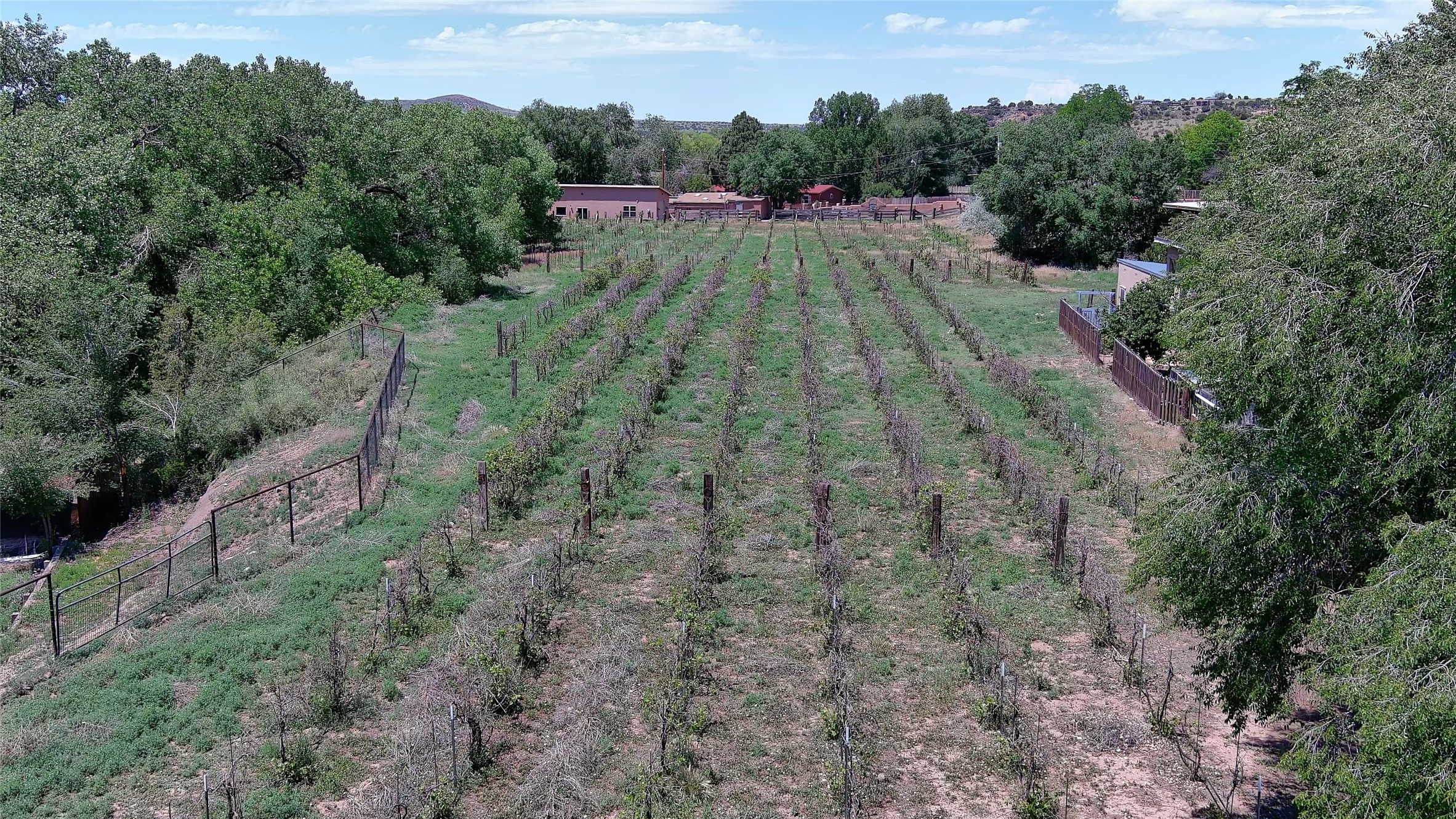 La Cienega Vineyard Estate - Four Parcels with Adobe Homes, Studios & Acequia Water Rights. Discover a unique opportunity in the heart of historic La Cienega--a vibrant 6-acre vineyard comprising four separately deeded parcels, rich with potential and authentic New Mexico charm. Anchored by two traditional adobe homes, the estate is steeped in regional character and surrounded by natural beauty. The main house features 3 bedrooms, 2 baths, and showcases classic Santa Fe style with brick floors, vigas, and elegant touches throughout. The adobe main residence is a quintessential historic home in the La Cienega Village. The second adobe home offers additional living space or rental income potential. In addition to the homes, the property includes a partially completed two-story apartment--ready for your finishing touches--and several studio structures that could be transformed into creative workspaces, studios, rentals or other uses associated with the Vineyard. The well-maintained vineyard is nourished by valuable acequia water rights, ensuring sustainable growth and offering agricultural possibilities for wine production, agritourism, or farm-to-table ventures. With flexible uses and multiple dwellings already in place, this rare offering is ideal for a variety of uses--live/work, multi-generational living, a creative retreat, or a boutique vineyard business. Properties with this combination of history, water, and opportunity are seldom available in La Cienega