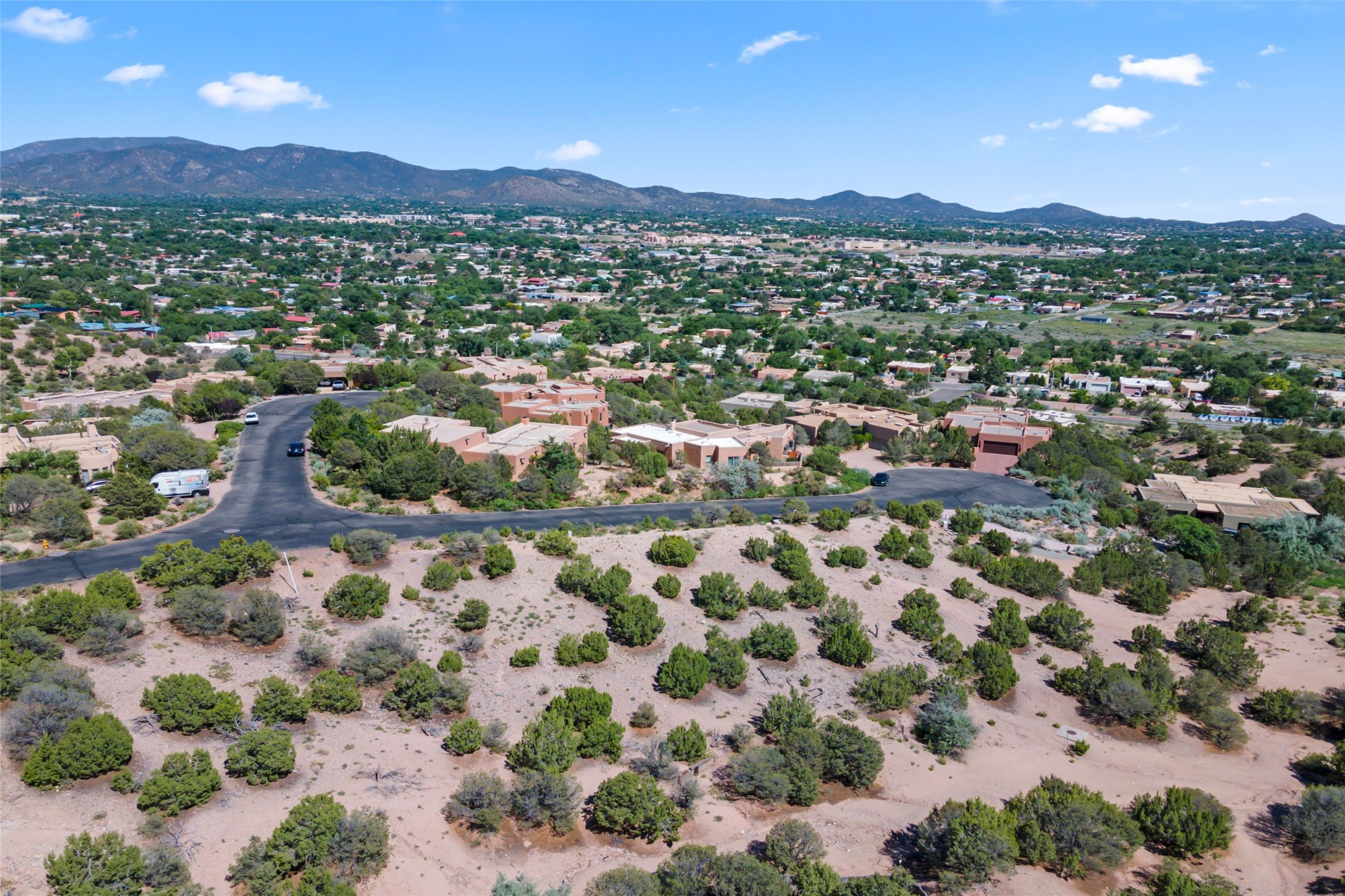 Rare, city residential lot on .41 acre in the desirable Los Lomas neighborhood of West Alameda. Situated on a paved cul-de-sac, this prime lot offers unobstructed views of the majestic Sandia Mountains. All city utilities are conveniently located at the lot line. Included in the sale are preliminary plans for a 3-bedroom home designed by Chord Architecture. These models have not yet been submitted to the HOA for approval, providing the new owners with an opportunity to customize the final composition to meet their specific needs and vision. Excellent location close to the Santa Fe River Trail, downtown Santa Fe Plaza, and Canyon Road. Enjoy the rich cultural and culinary amenities that Santa Fe is renowned for just minutes away.