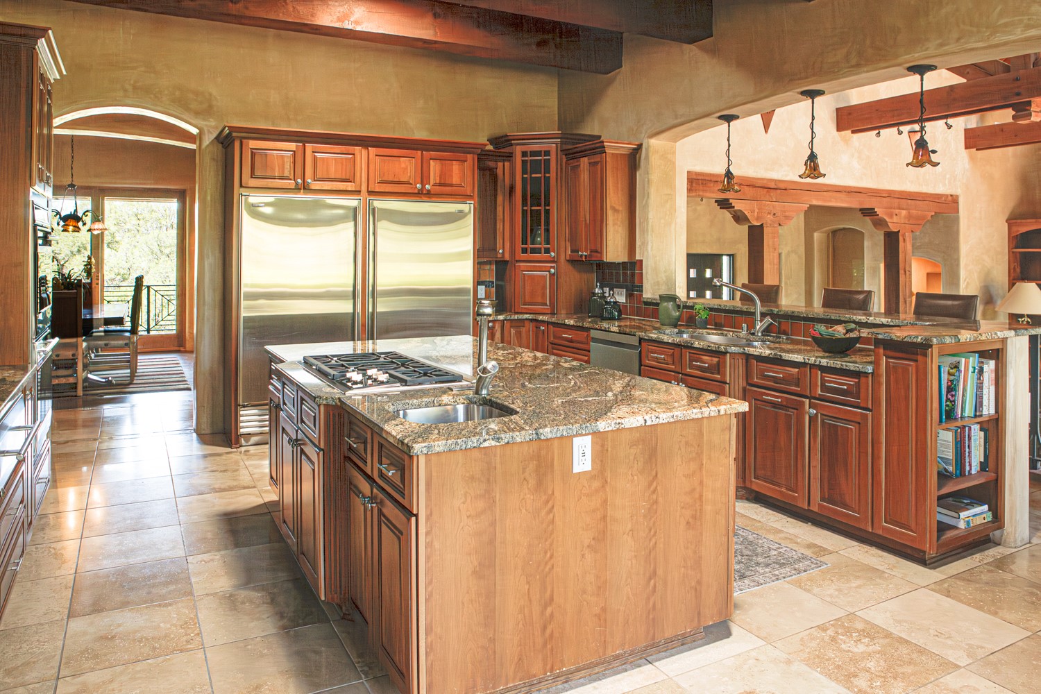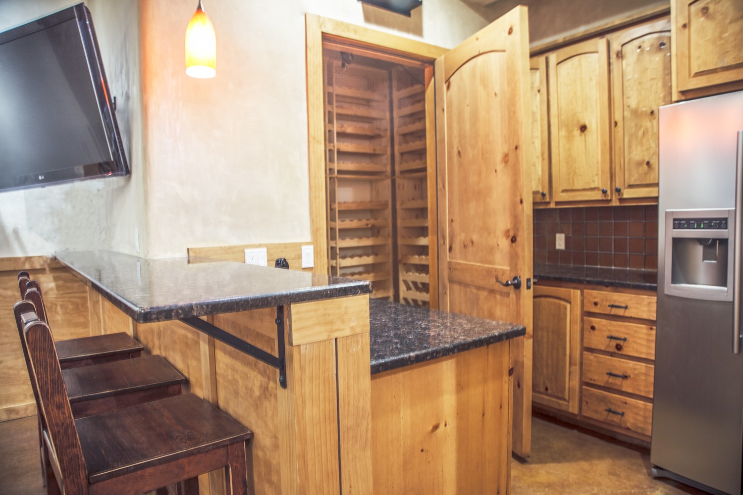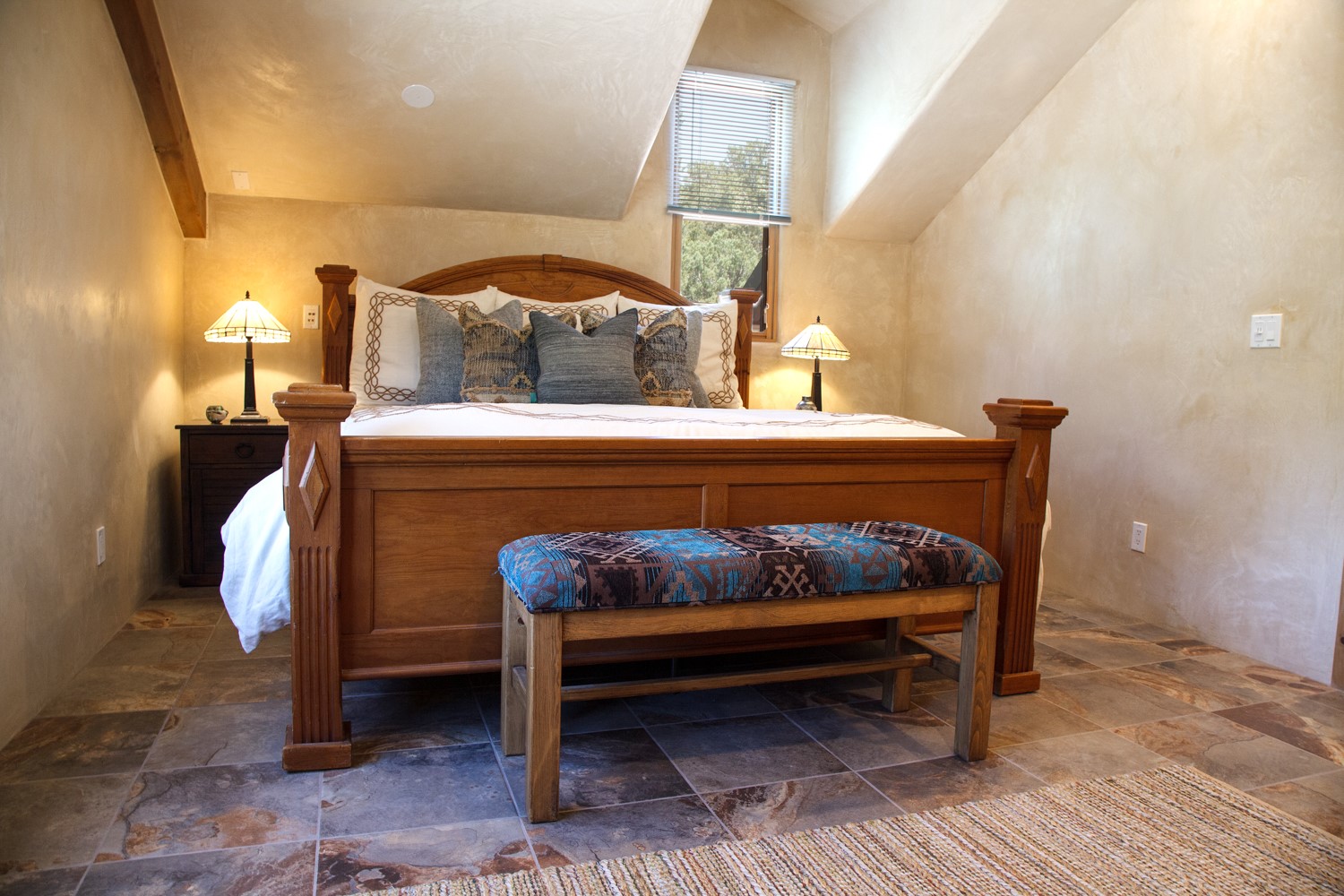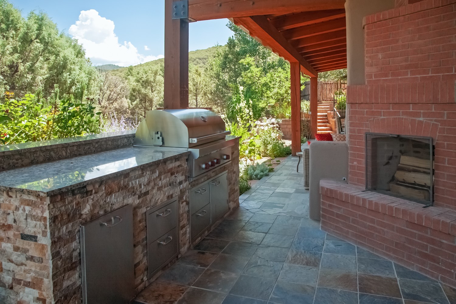 This stunning gated estate sprawls across over 4 acres, offering the perfect blend of privacy and convenience, and only a 20-minute drive to the Santa Fe Ski Basin. The home's architecture is exceptional, featuring a pitched roof, prominent exposed timbers and trusses, a gabled dormer, clerestory windows, a metal roof that enhances its aesthetic appeal and an elevator. The grand entryway is highlighted by a custom steel door and a cascading waterfall feature. The gourmet kitchen is a chef's dream, equipped with a large island, breakfast nook, side-by-side Sub-Zero refrigerator and freezer, a wine and beverage center, and a formal dining area. The spacious living and family rooms are designed for entertaining, with one bedroom in this wing--one large enough to serve as a children's playroom. The expansive master suite includes a sitting area with kiva fireplace, a large bathroom, his and hers closets, and a beautiful view of the adjacent surrounding 25-acre open space. Nearby are an office and two ensuite bedrooms. The lower level features an exercise room, game room, kitchenette, wine cellar, and a bath. Outside, the property is equally impressive, with decks, porches, and patios nestled among lush fruit trees, aspens, and gardens. The outdoor living spaces include a professional BBQ, fireplace, and seating area around a tranquil Koi Pond. A separate combination car/RV garage provides ample space for large vehicles, with a private one-bedroom, one-bath guest house situated above it. This is quite simply a little slice of heaven just minutes from downtown Santa Fe and the Historic Plaza!