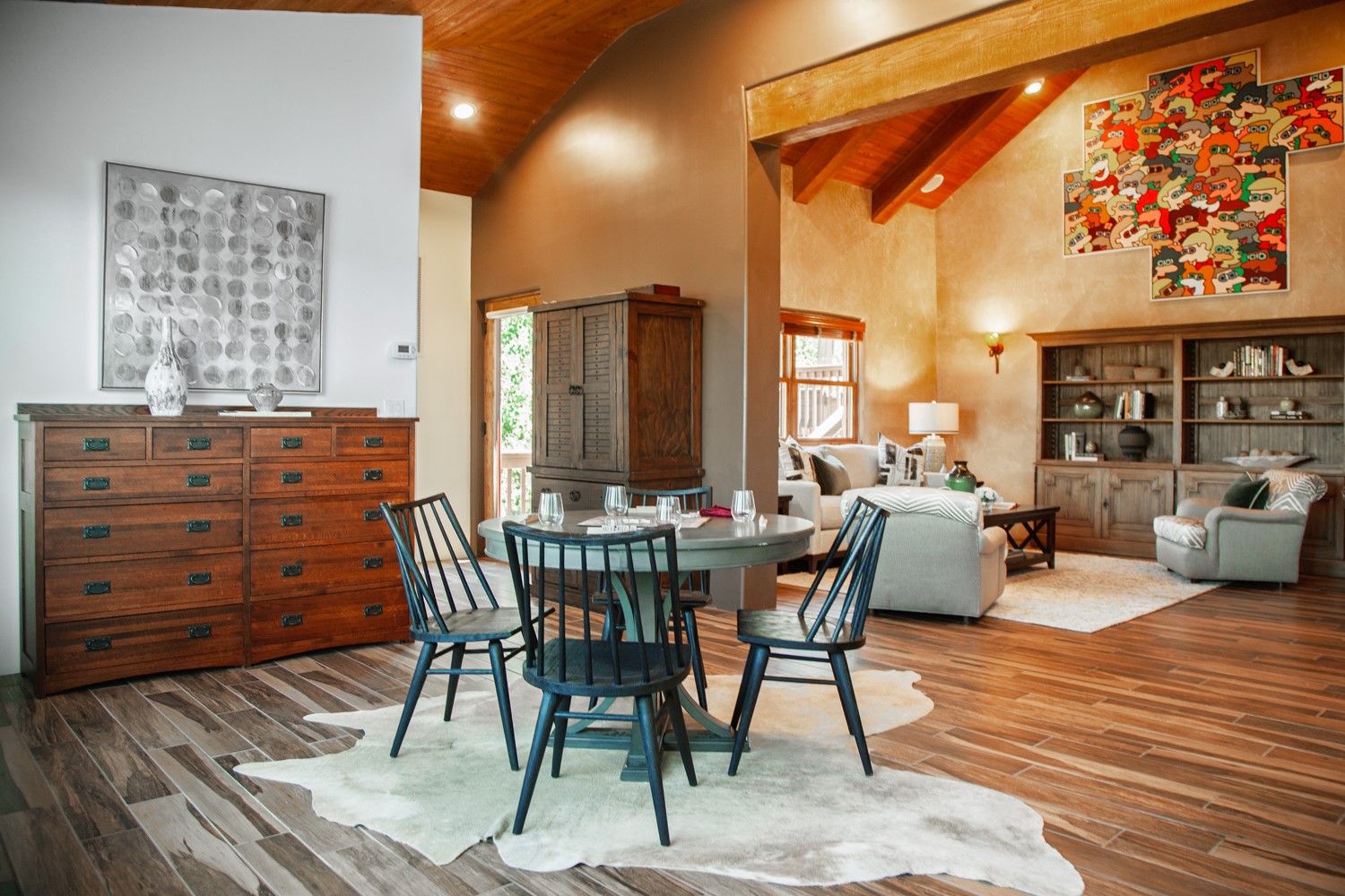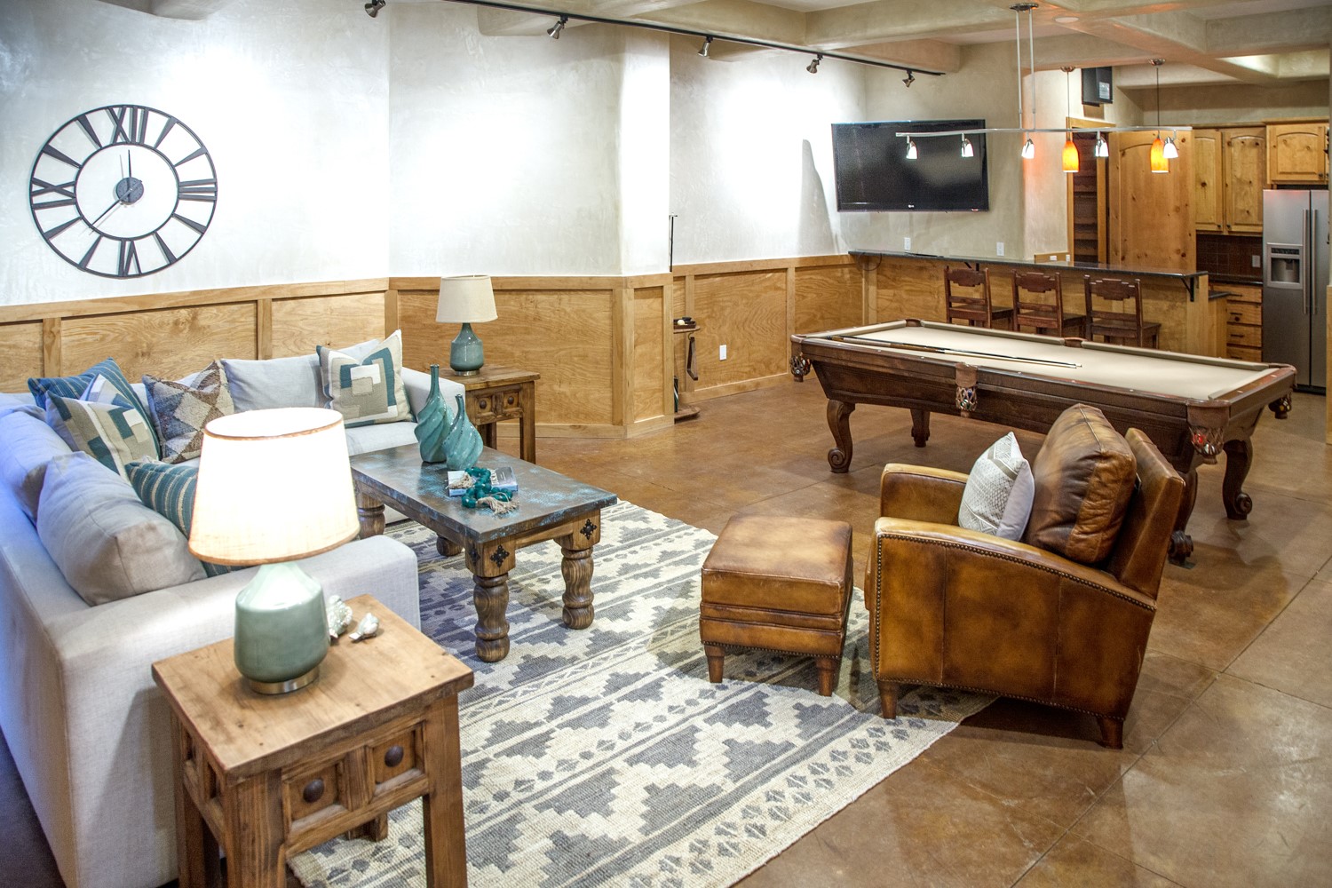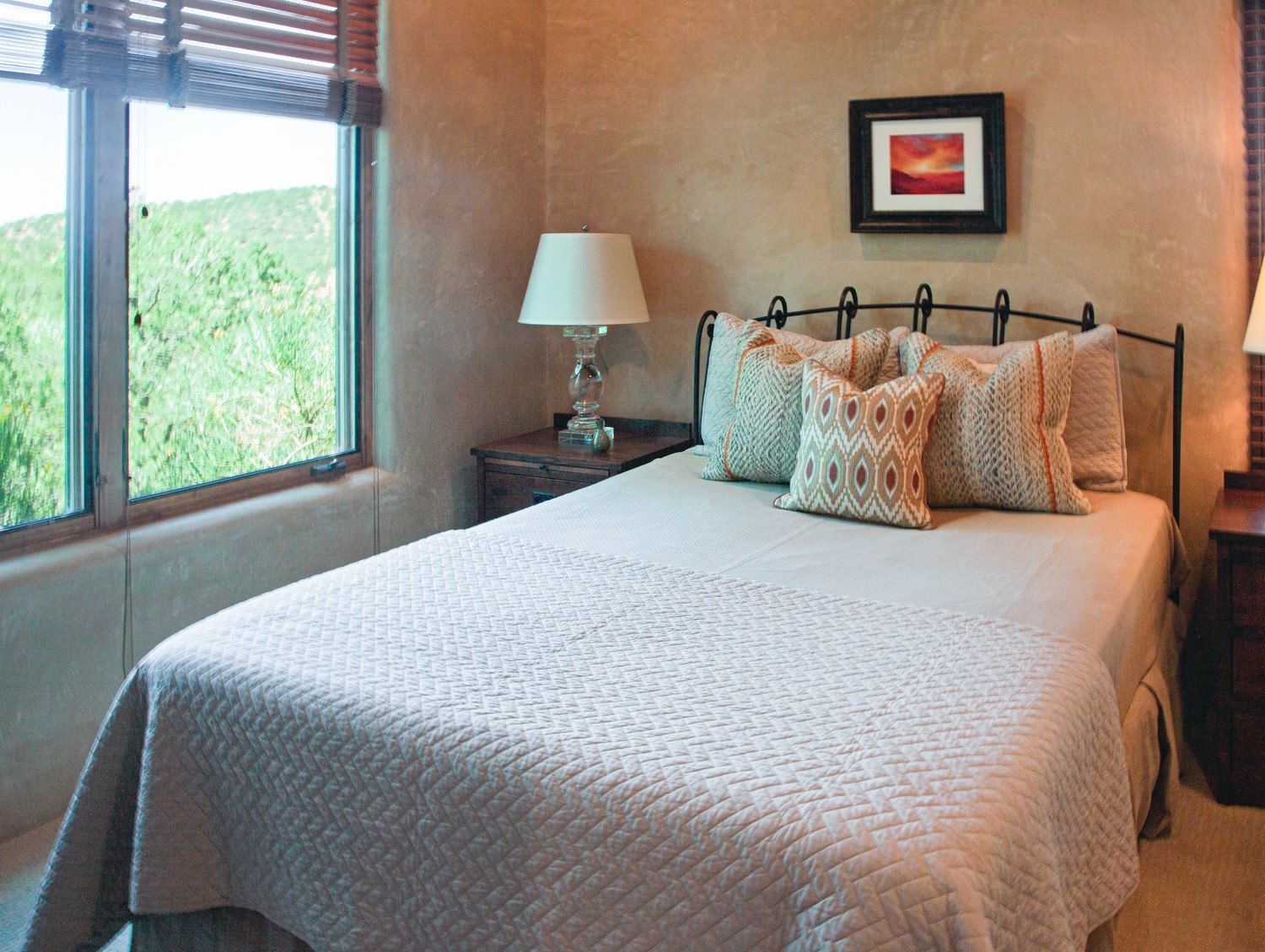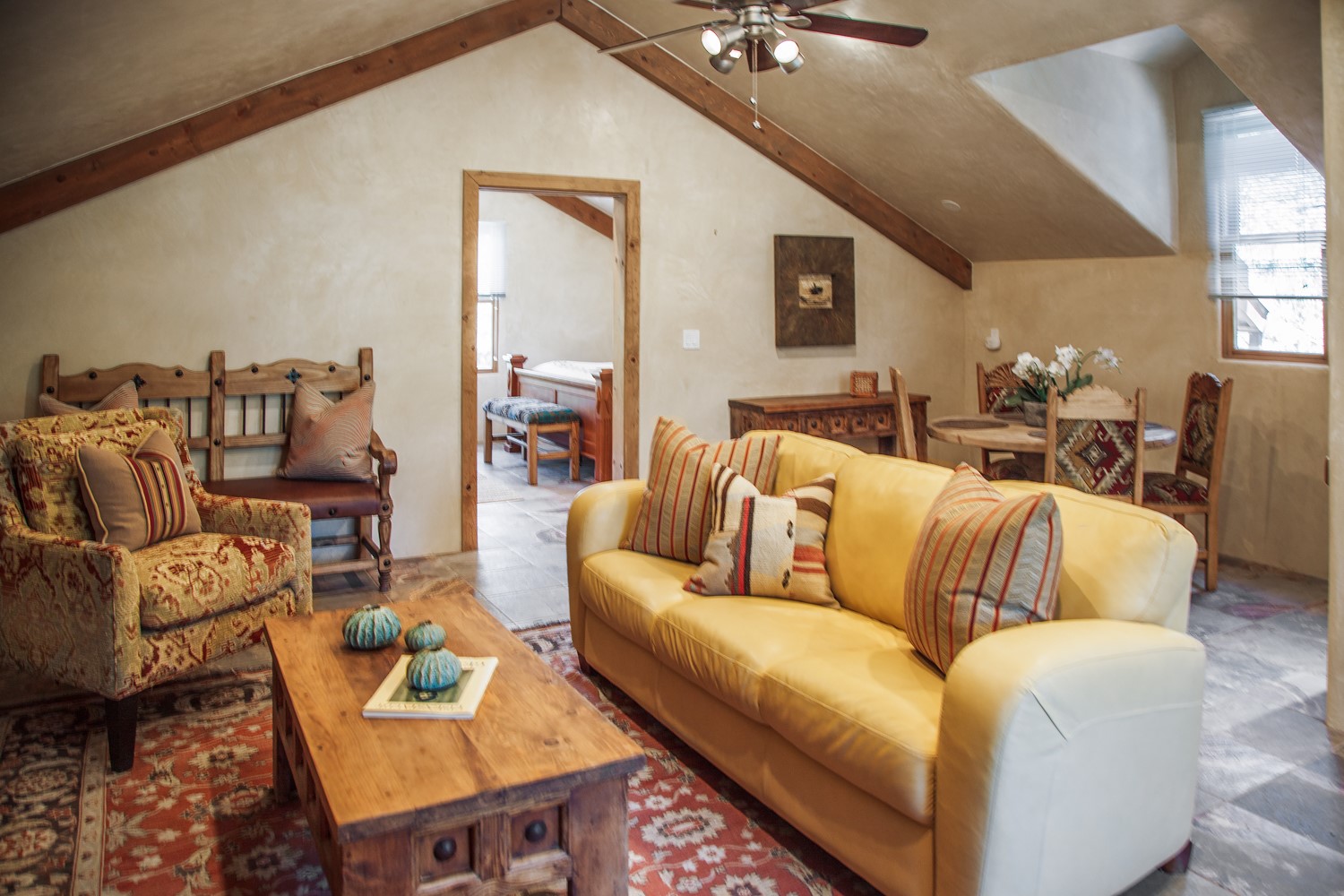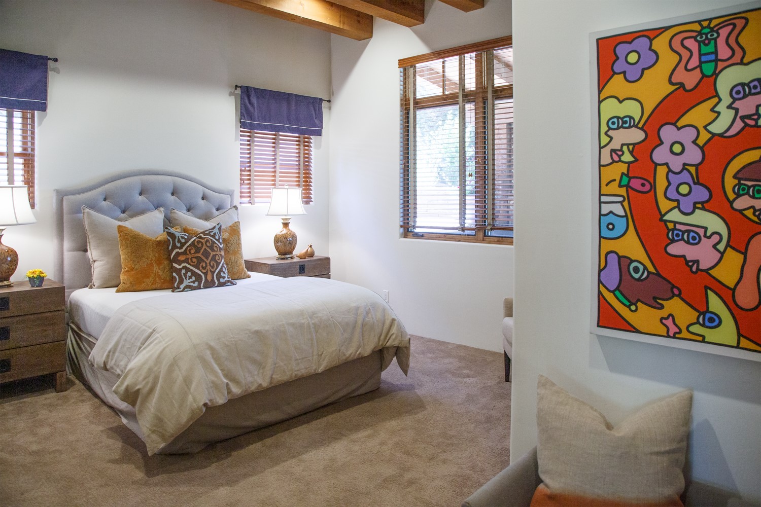 This stunning gated estate sprawls across over 4 acres, offering the perfect blend of privacy and convenience, and only a 20-minute drive to the Santa Fe Ski Basin. The home's architecture is exceptional, featuring a pitched roof, prominent exposed timbers and trusses, a gabled dormer, clerestory windows, a metal roof that enhances its aesthetic appeal and an elevator. The grand entryway is highlighted by a custom steel door and a cascading waterfall feature. The gourmet kitchen is a chef's dream, equipped with a large island, breakfast nook, side-by-side Sub-Zero refrigerator and freezer, a wine and beverage center, and a formal dining area. The spacious living and family rooms are designed for entertaining, with one bedroom in this wing--one large enough to serve as a children's playroom. The expansive master suite includes a sitting area with kiva fireplace, a large bathroom, his and hers closets, and a beautiful view of the adjacent surrounding 25-acre open space. Nearby are an office and two ensuite bedrooms. The lower level features an exercise room, game room, kitchenette, wine cellar, and a bath. Outside, the property is equally impressive, with decks, porches, and patios nestled among lush fruit trees, aspens, and gardens. The outdoor living spaces include a professional BBQ, fireplace, and seating area around a tranquil Koi Pond. A separate combination car/RV garage provides ample space for large vehicles, with a private one-bedroom, one-bath guest house situated above it. This is quite simply a little slice of heaven just minutes from downtown Santa Fe and the Historic Plaza!