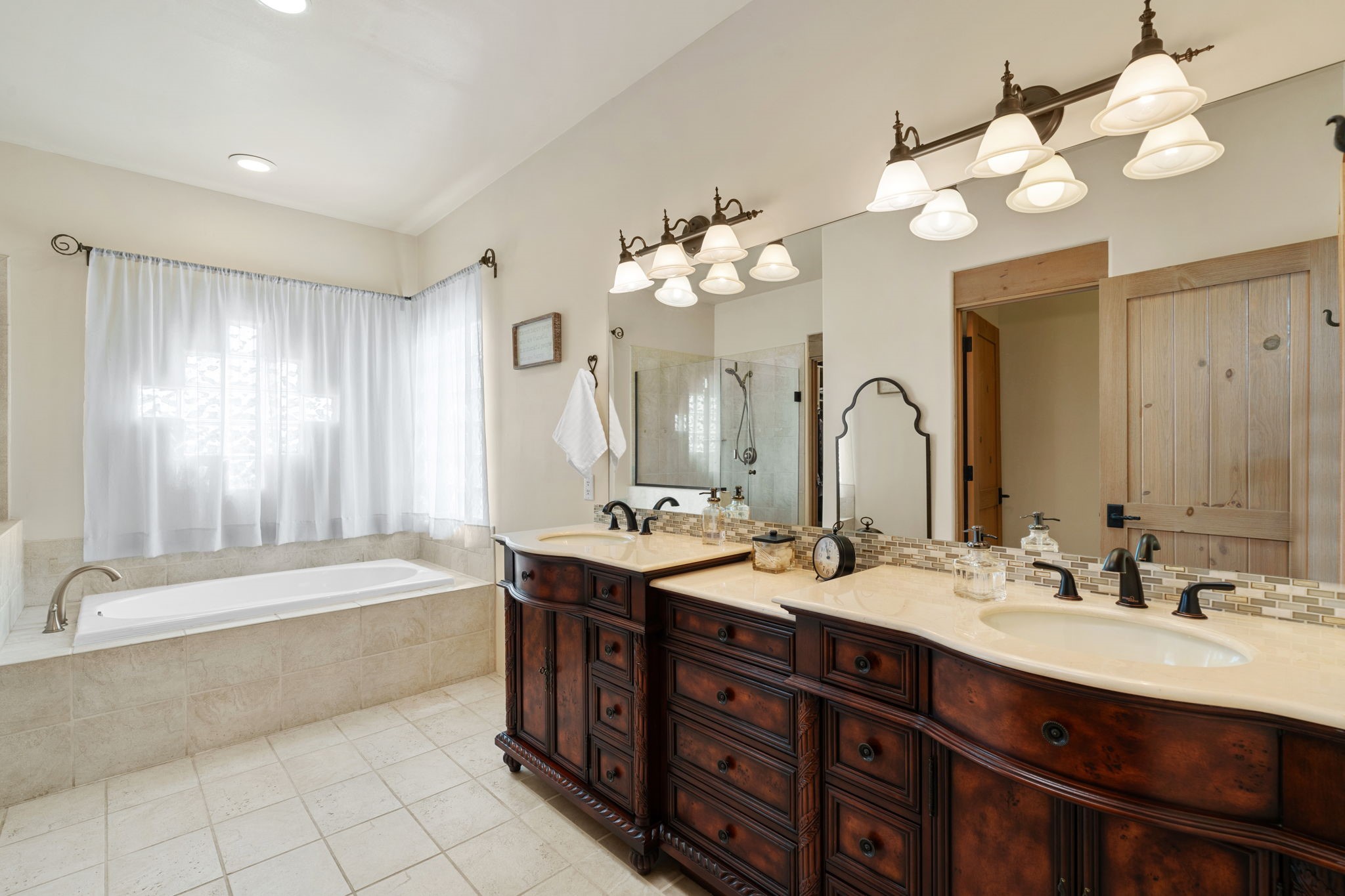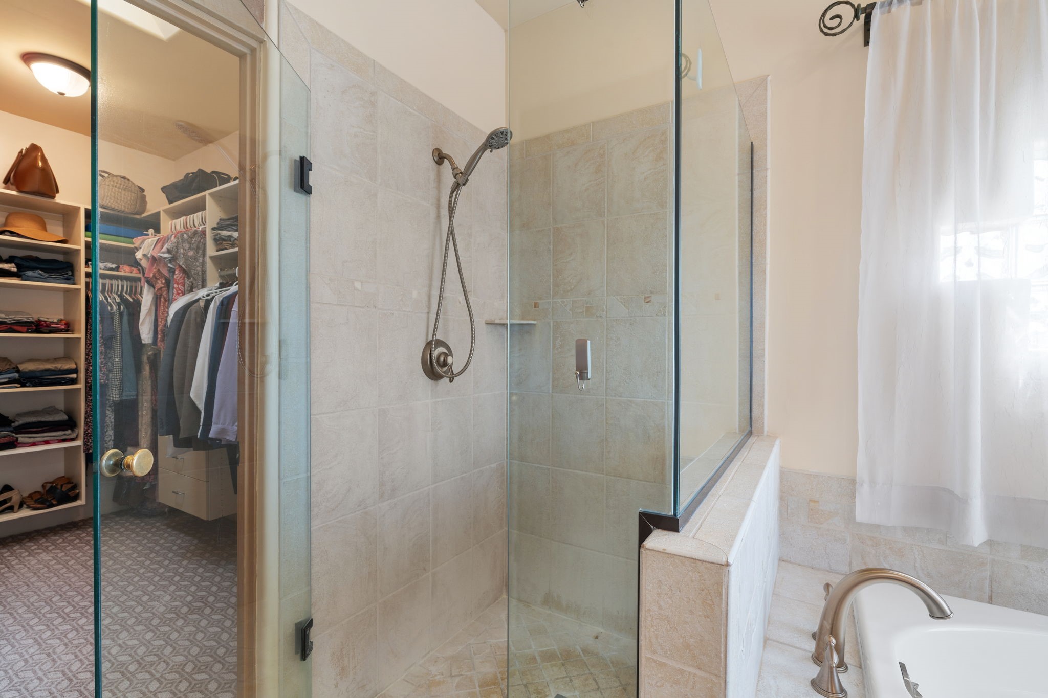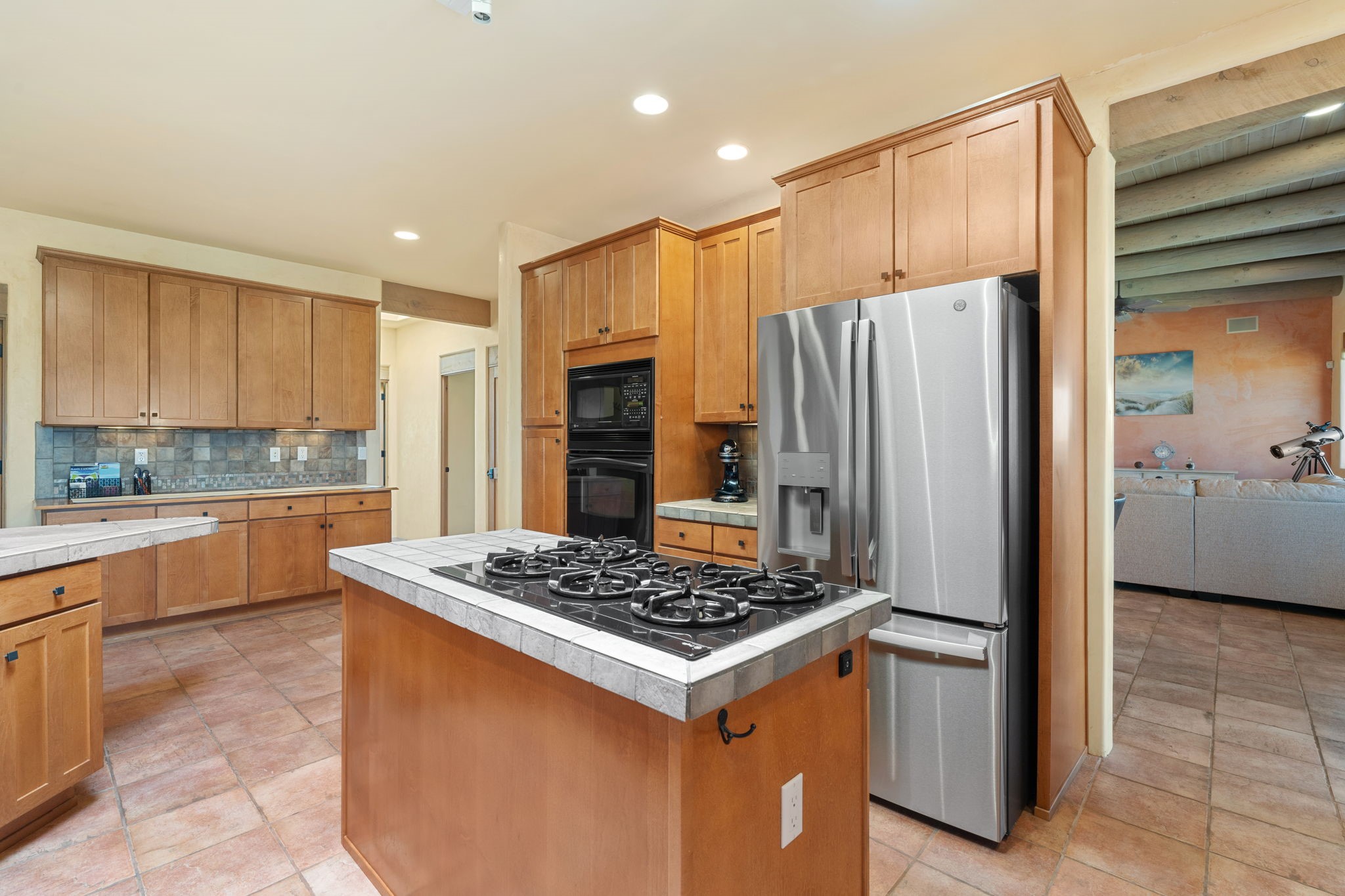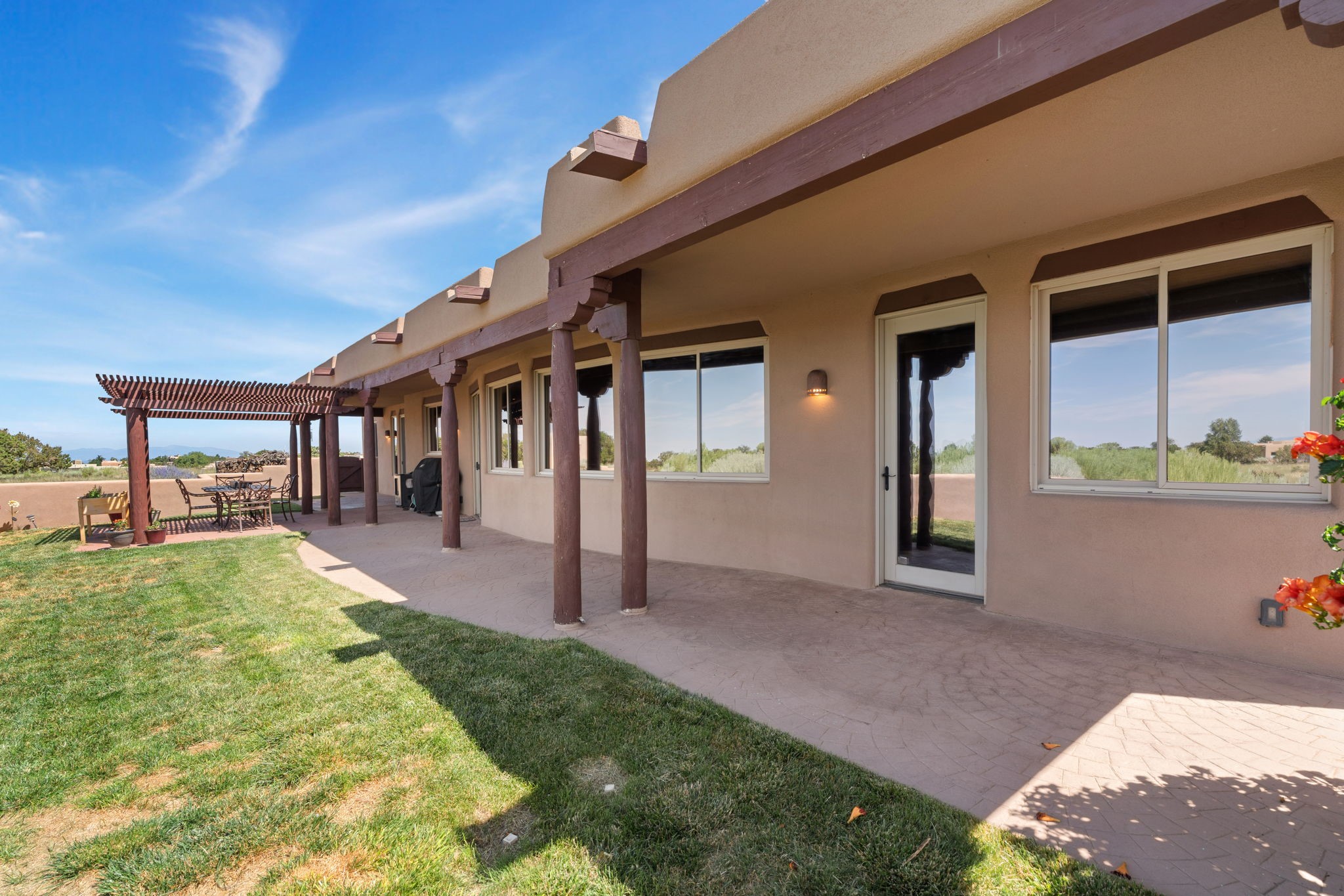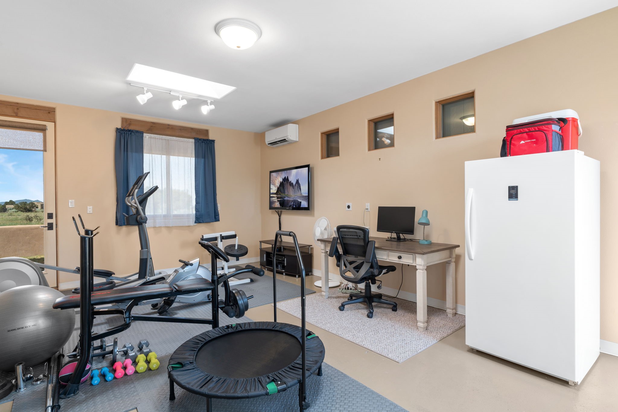 Beautiful, single-level Eldorado home with views, great floorplan and pre-inspected! Two living areas, both with vigas and kiva fireplaces. Den and office have large built-in bookcases. In-floor, natural gas radiant heat and 4 splits for air conditioning and heat. Light and bright studio has a cement floor and is detached from the house with two entrances and has a split for heat and AC - can also be accessed from the garage. Front and back walled courtyards with the rear portal running the length of the property. Generous kitchen has views, stainless appliances, loads of counter space and storage. California closet systems in each bedroom. Home has been pre-inspected and most repairs are complete. Report available on request. Recent roof maintenance with 1-year warranty. NO STEPS. NO KITEC. Radiant heat is Onix. Domestic plumbing is copper. Weil-McClain boiler and Bradford White water heater, both new in 2016. Recent new hot water recirculating pump installed. Proper laundry room with sink and storage. New shed is 10' x 12. Septic inspection is completed and report in supplements. Lot corners are flagged. Four raised garden beds. This home has abundant storage. Sparkling clean and ready to go!