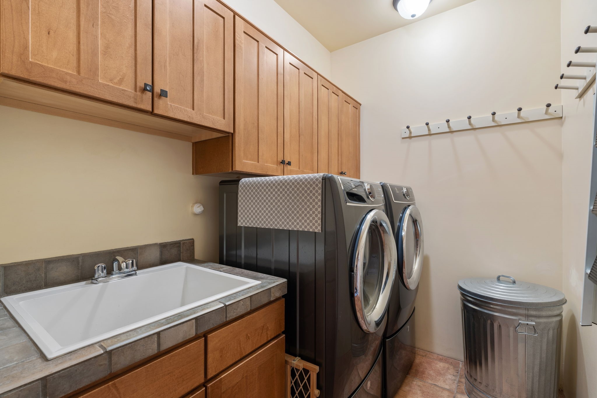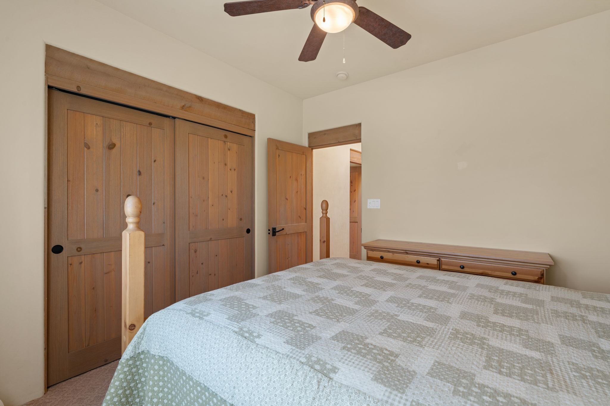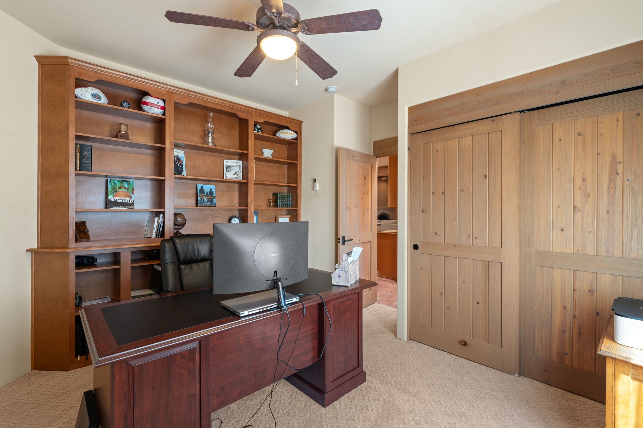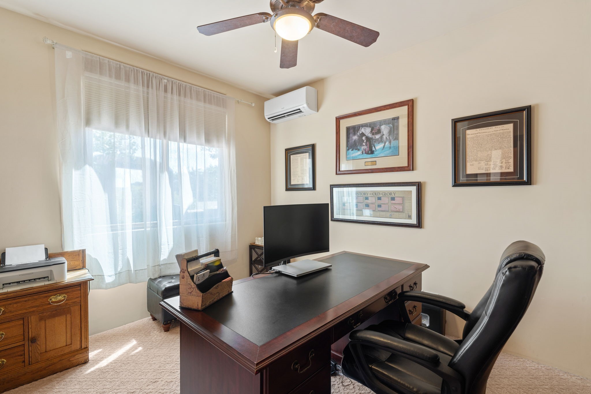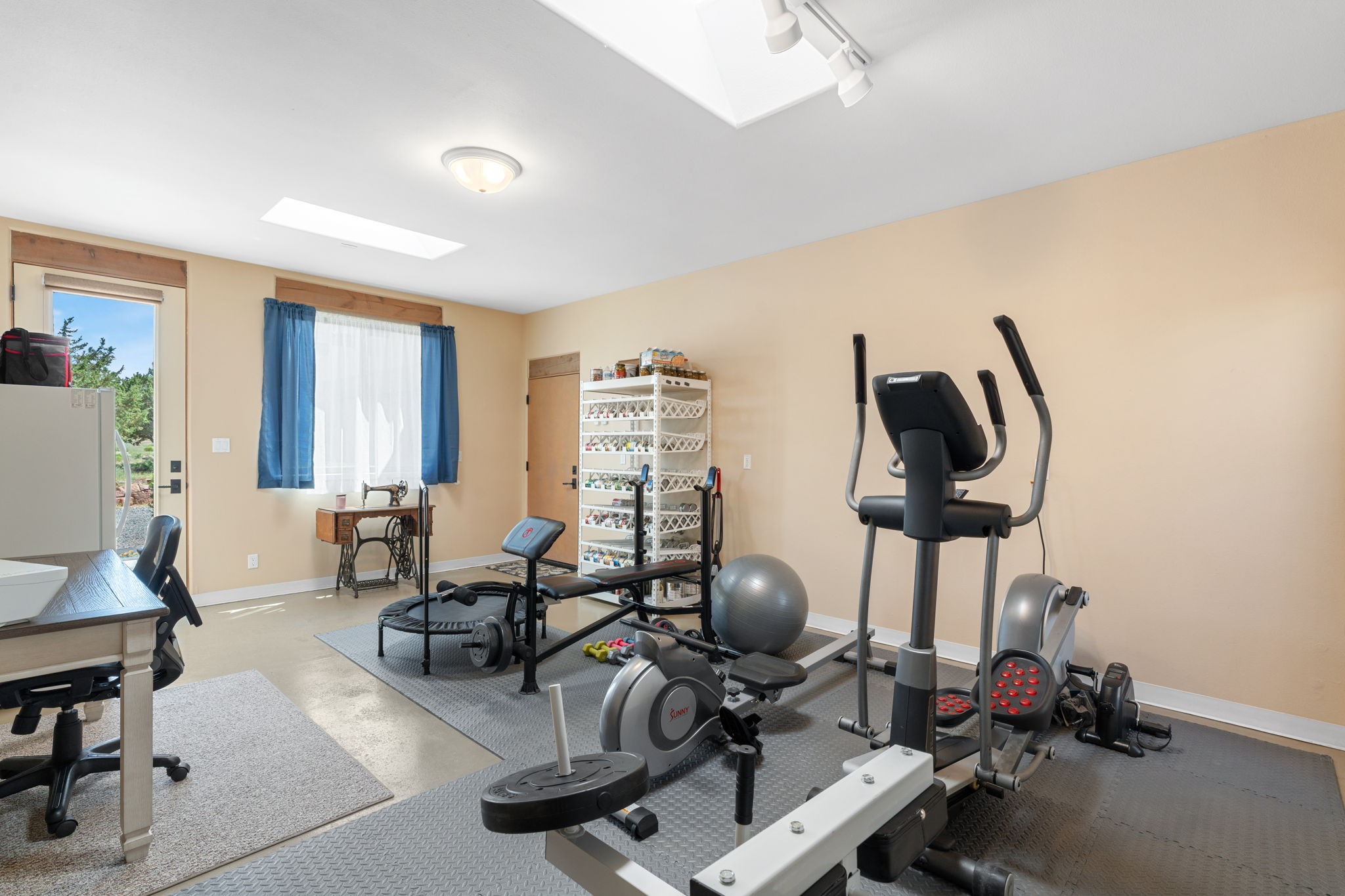 Beautiful, single-level Eldorado home with views, great floorplan and pre-inspected! Two living areas, both with vigas and kiva fireplaces. Den and office have large built-in bookcases. In-floor, natural gas radiant heat and 4 splits for air conditioning and heat. Light and bright studio has a cement floor and is detached from the house with two entrances and has a split for heat and AC - can also be accessed from the garage. Front and back walled courtyards with the rear portal running the length of the property. Generous kitchen has views, stainless appliances, loads of counter space and storage. California closet systems in each bedroom. Home has been pre-inspected and most repairs are complete. Report available on request. Recent roof maintenance with 1-year warranty. NO STEPS. NO KITEC. Radiant heat is Onix. Domestic plumbing is copper. Weil-McClain boiler and Bradford White water heater, both new in 2016. Recent new hot water recirculating pump installed. Proper laundry room with sink and storage. New shed is 10' x 12. Septic inspection is completed and report in supplements. Lot corners are flagged. Four raised garden beds. This home has abundant storage. Sparkling clean and ready to go!