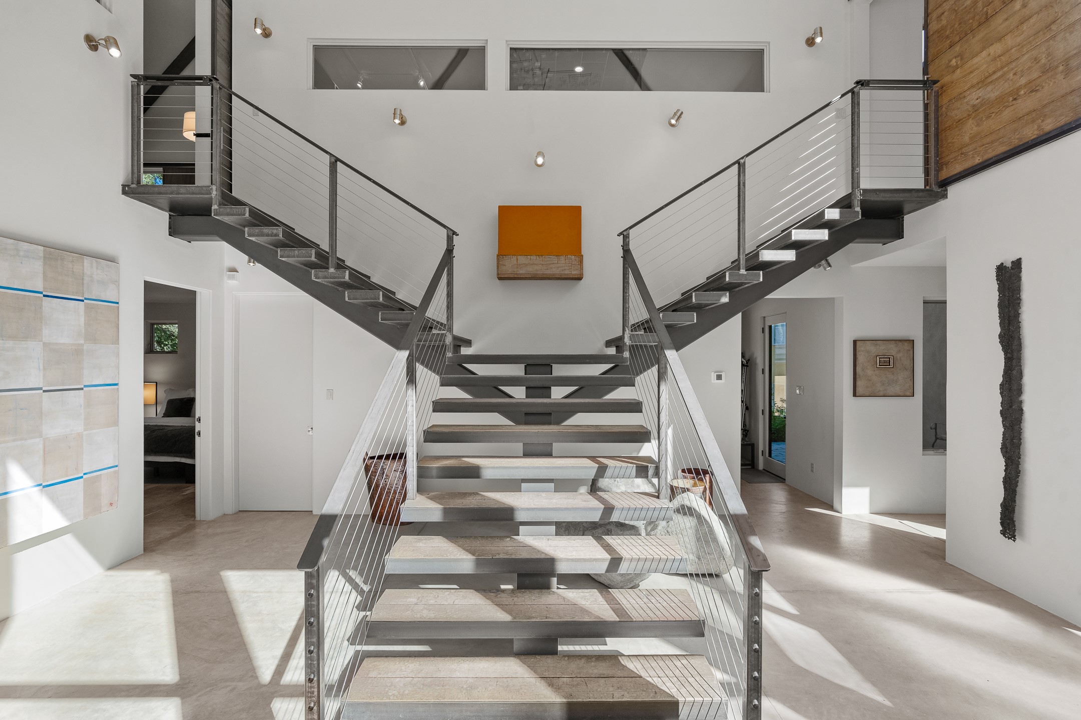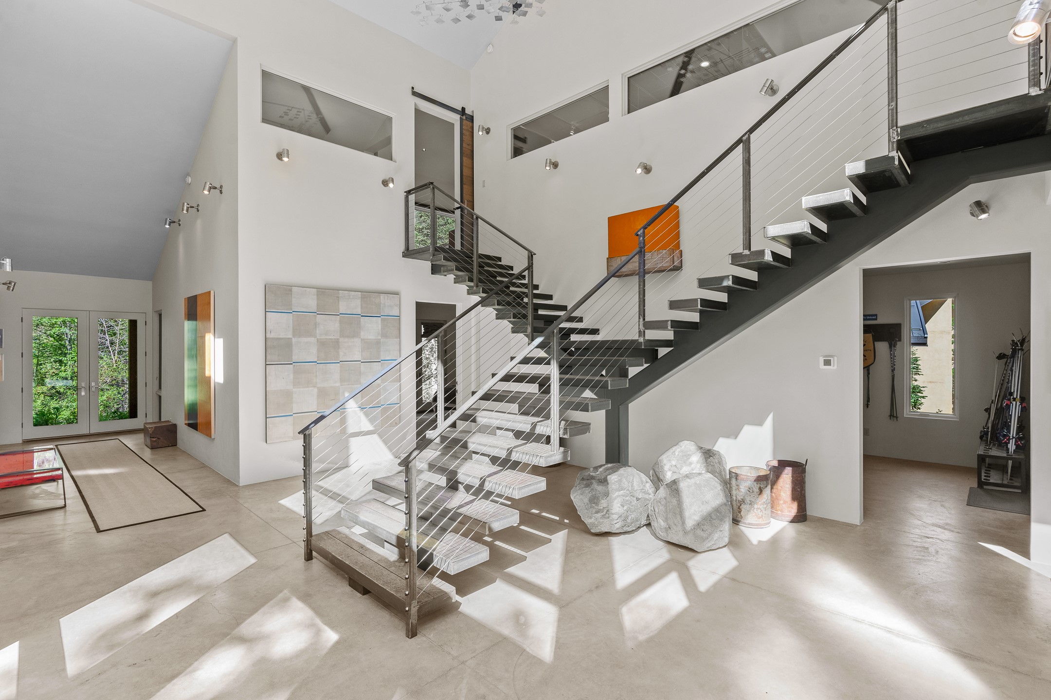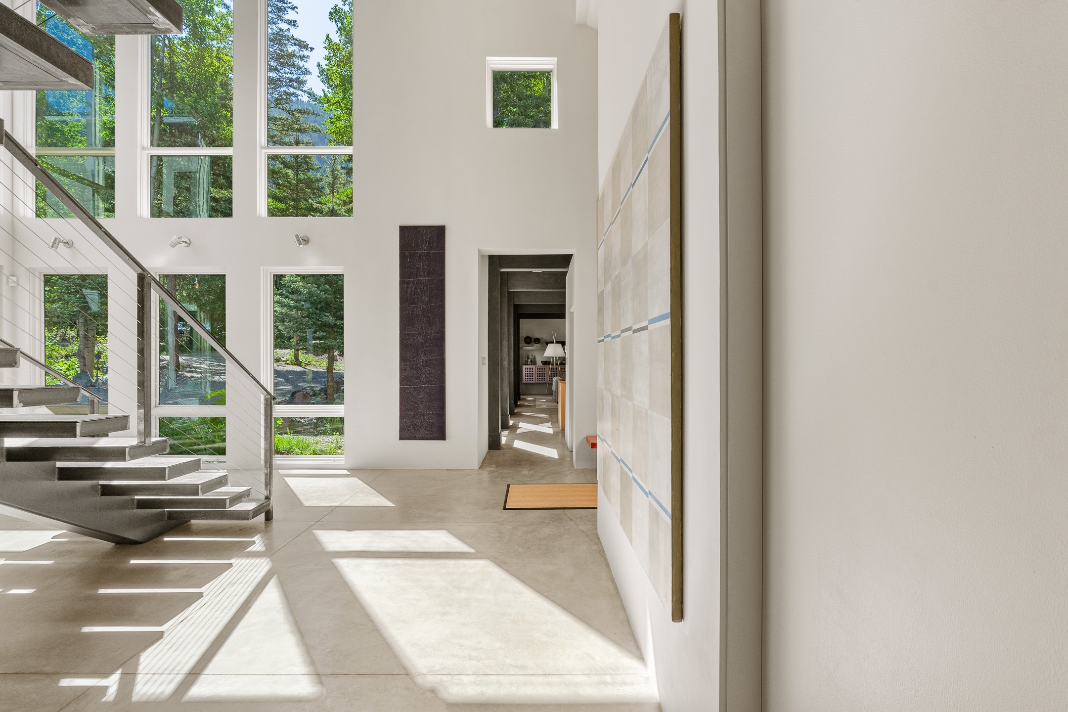 Situated in the heart of Taos Ski Valley, this one-of-a-kind Contemporary Modern Mountain Home redefines alpine luxury. Set on a rare corner lot spanning over one-third of an acre, the property is graced with more than 150 feet of the Rio Hondo River, flowing beneath two custom-built bridges that provide direct ski-in/ski-out access. Just a short walk to the base area's two main lifts, the location is simply unmatched. Every detail of this stunning home exudes sophistication and modern elegance. Designed for both comfort and performance, it features high-end finishes throughout, including automated sun shades, radiant in-floor heating, a chef's kitchen with premium appliances, and a luxurious steam shower in the primary suite. A dramatic zinc standing seam roof--engineered to last 80 to 100years--crowns the home, while a natural gas standby generator ensures seamless year-round living. Step outside to the elevated hot tub perched above the river and enjoy serene mountain ambiance like no other. The heated driveway and stone paver walkways offer effortless winter access, while the oversized 3-car garage--with one bay currently transformed into a game room--adds versatility and comfort. A dedicated ski storage room with private locker space and a separate entrance completes the alpine lifestyle experience. The home's thoughtful floor plan offers exceptional privacy and flow. The primary suite features a private office, steam shower, and complete separation from the guest quarters, which are adjacent to a spacious family lounge. A guest suite on the lower level provides additional convenience and flexibility. From its unparalleled riverfront setting to its extraordinary finishes and amenities, there is simply no other home of this caliber in Taos Ski Valley. This is more than a residence--it's an elevated mountain sanctuary. Home is being sold fully furnished, including most artwork.