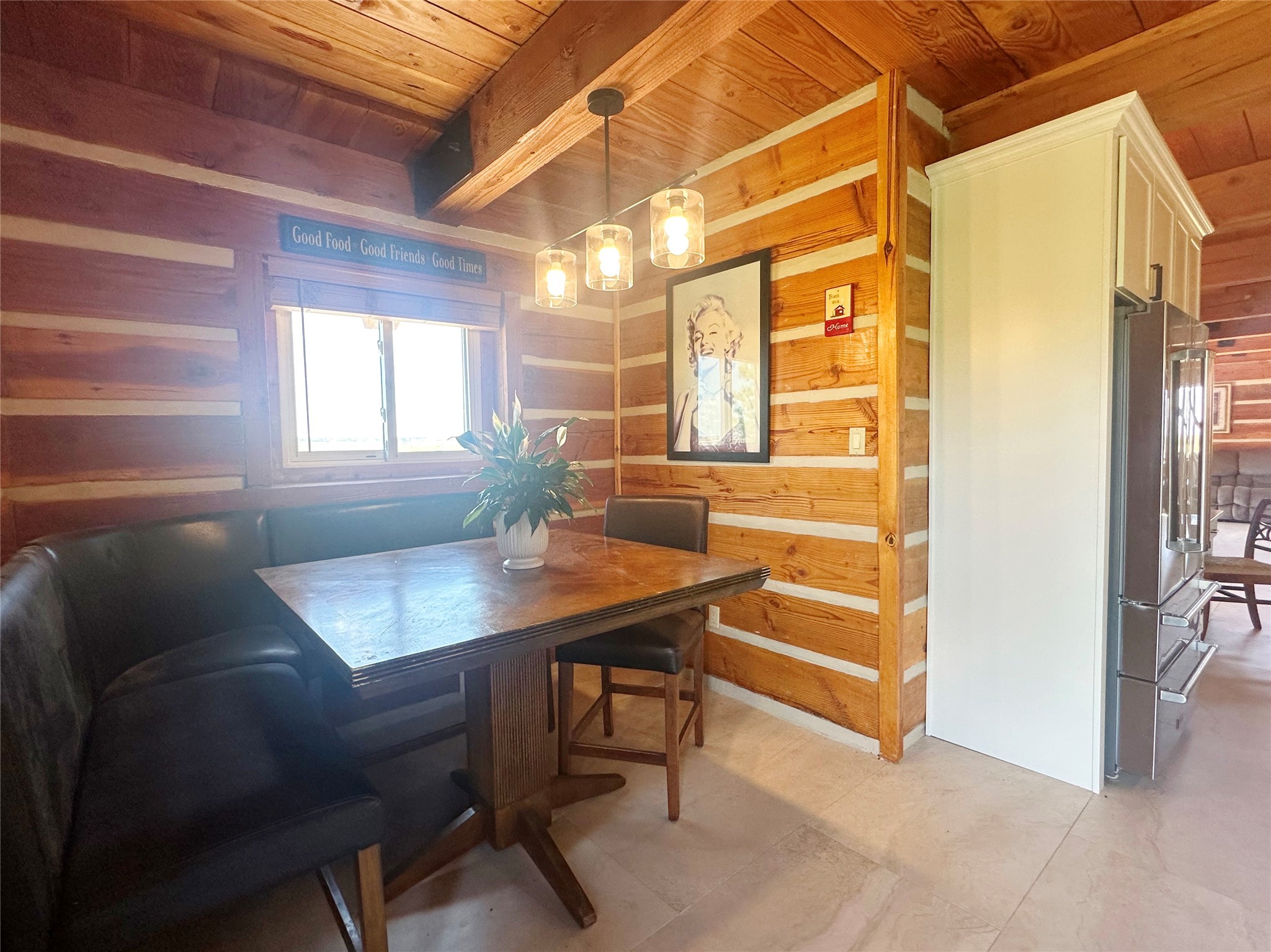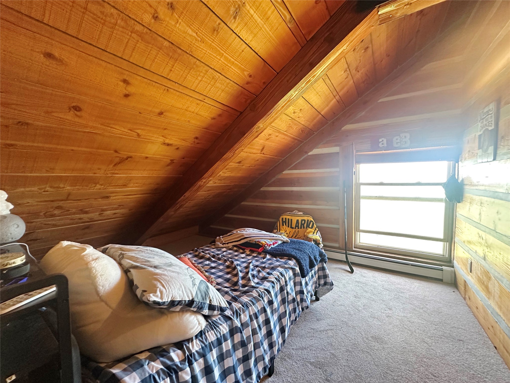 This two-story, 2,477 sq ft log cabin sits on 10 flat, usable acres in the open grasslands of Stanley, just 50 minutes from Santa Fe. The home features vaulted ceilings, modern finishes, and a practical layout with 3 bedrooms and 3 full bathrooms. The main level includes a primary suite with ensuite bath, a second full guest bath, an updated kitchen, and a central living area with a two-way fireplace and radiant floor heating. South-facing windows provide abundant natural light and support passive solar. Upstairs, a loft-style landing leads to two additional bedrooms and a full bathroom. A covered carport offers sheltered parking and extra storage. The surrounding acreage is open and accessible, with wide-ranging views in every direction. Whether you're looking for a full-time residence or a comfortable retreat from the city, this property is ready to welcome you home.