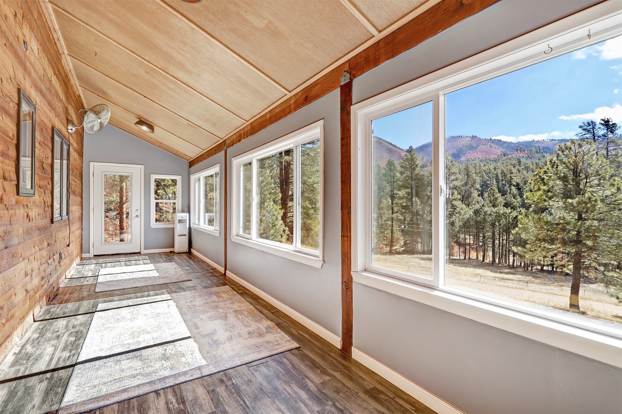 Need space? This large mountain home features 6/7 bedrooms, 5 bathrooms and storage galore! A separate apartment area has it's own entrance, kitchen, bath, and living area. The approx 2 acre property boarders the Santa Fe National Forest, and easily accessed by a county maintained road. Only a mile or so to a back gate of the Valles Caldera, and a 40 minute scenic commute to Los Alamos. Oversized 2 car garage gives you plenty of room for the toys. A sunroom on the front of the house opens to the large deck for outdoor enjoyment/entertaining. Hike out the back door into the woods, bike into the Caldera, or fish the streams in the area. This place has it all, and room for everyone!