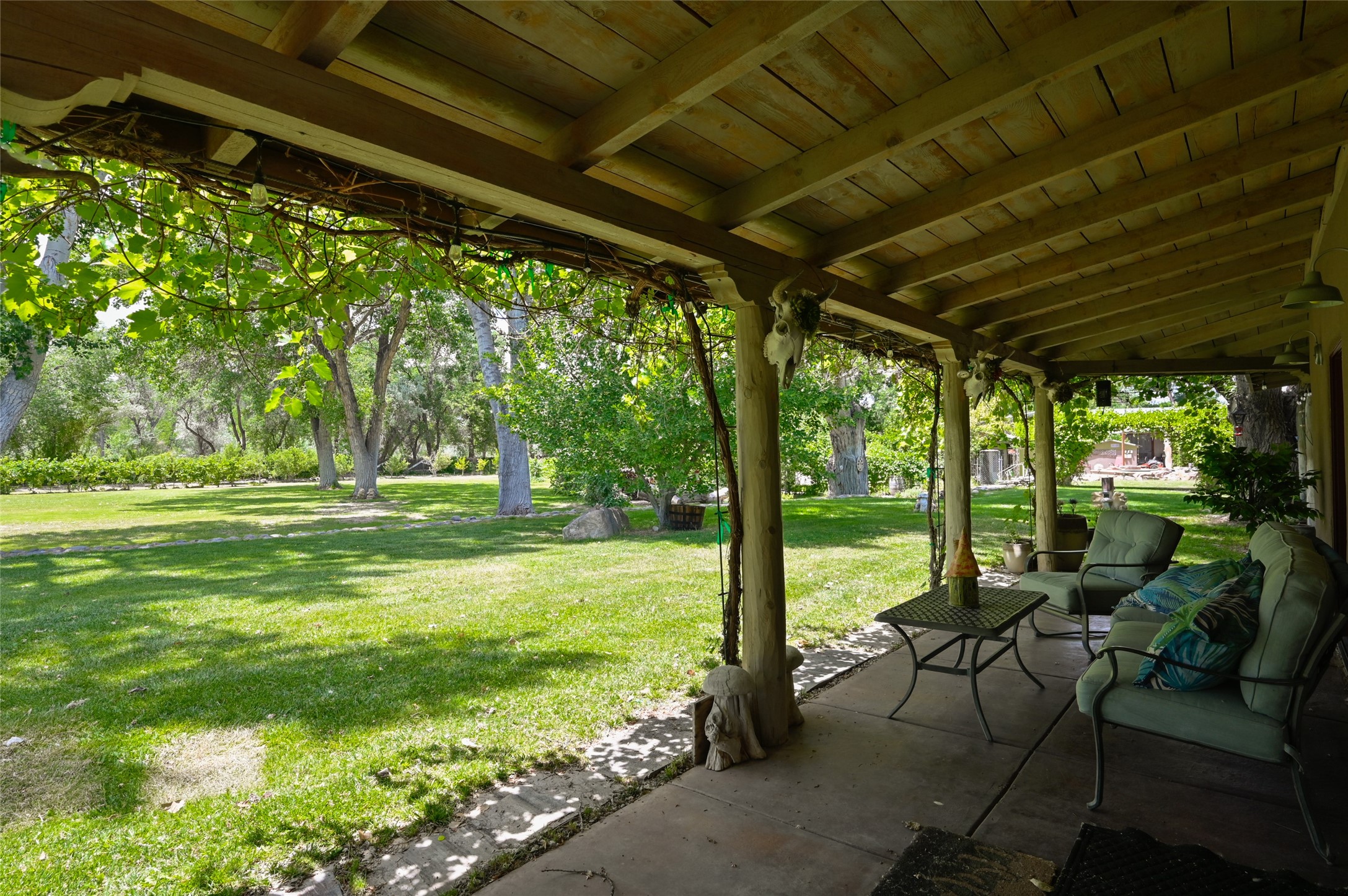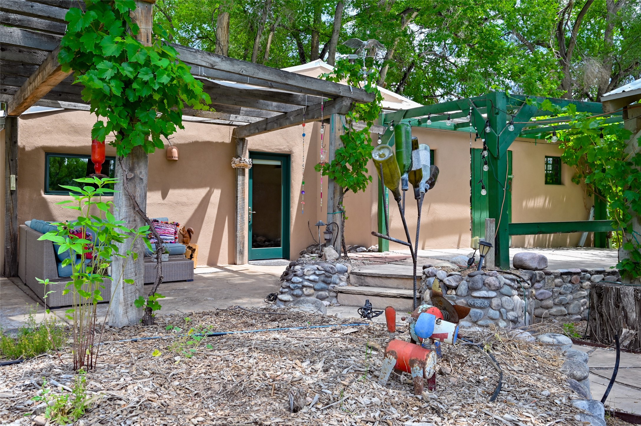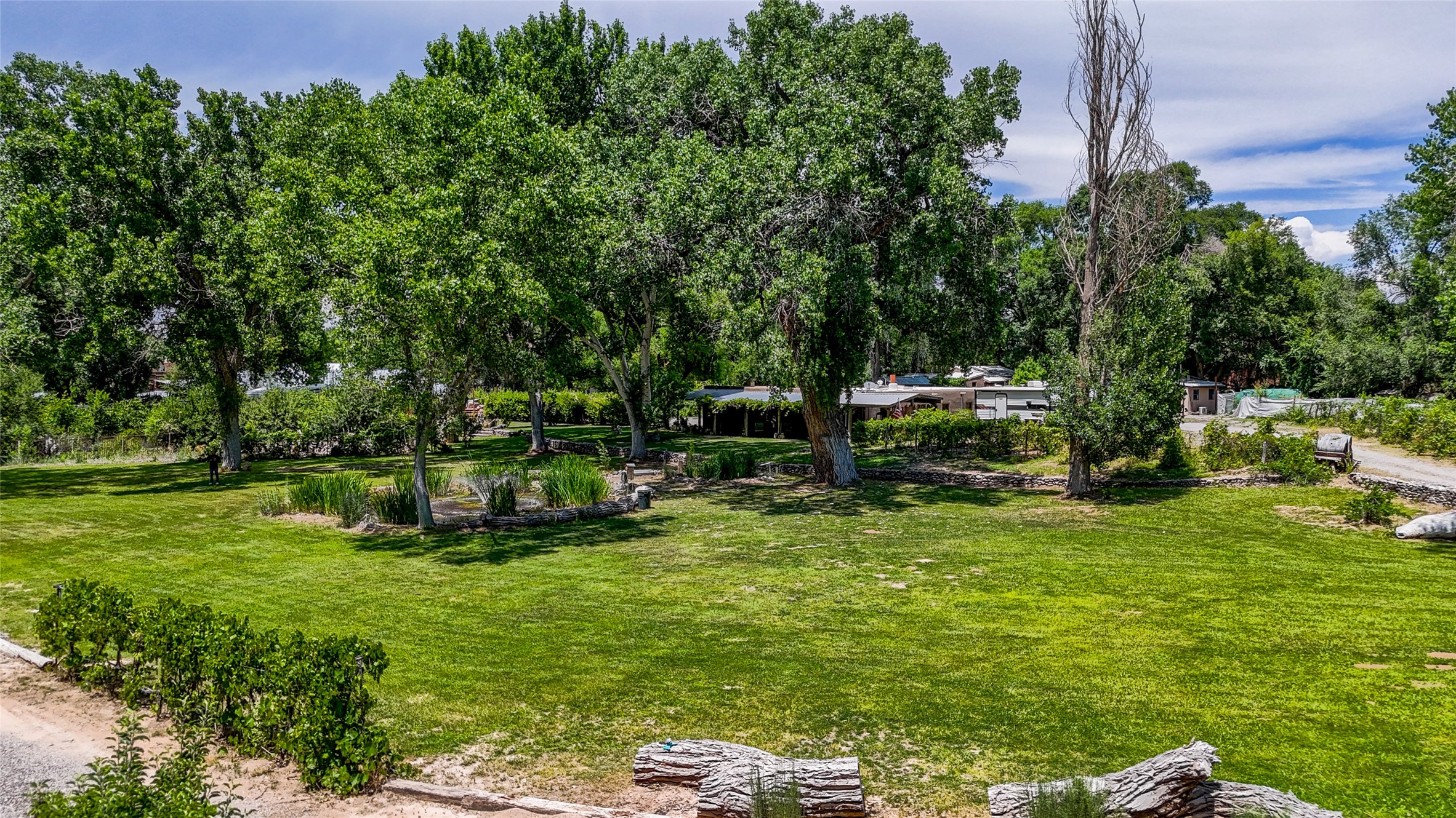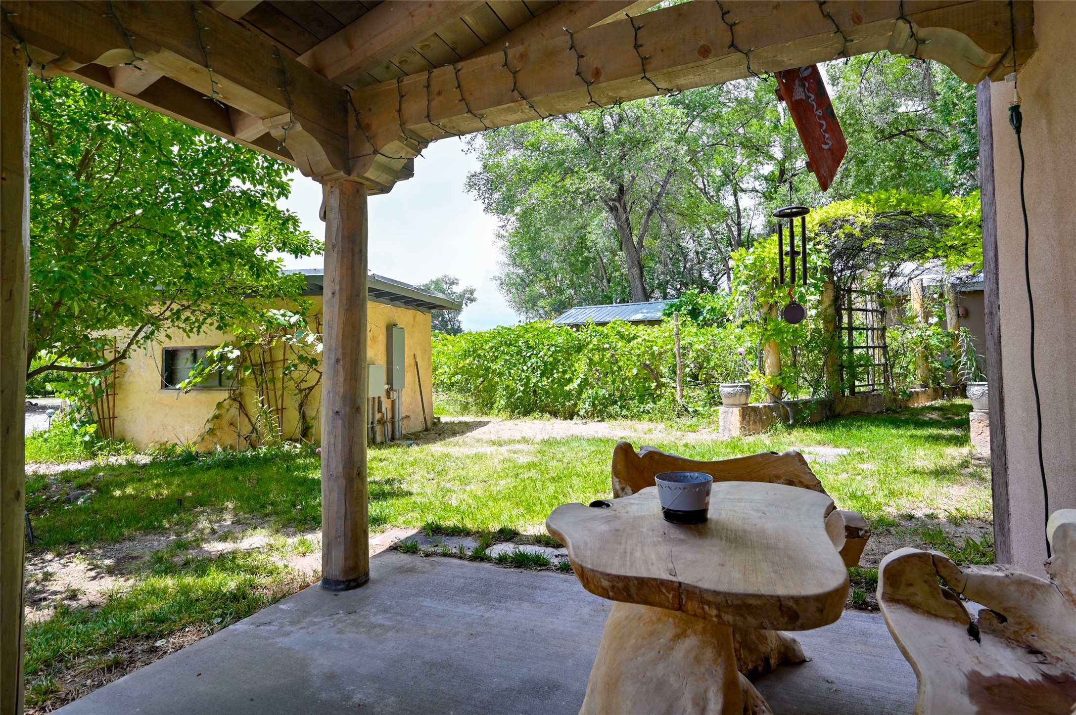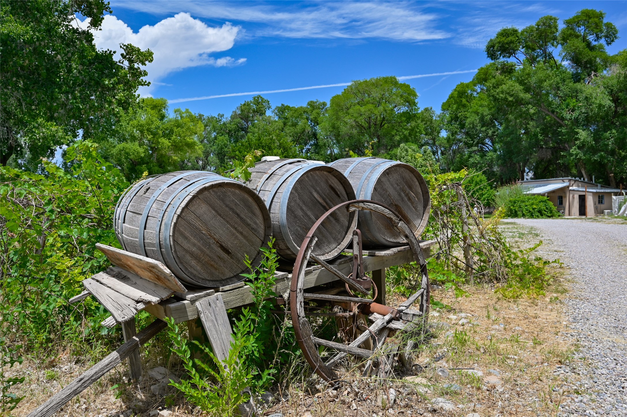Heavenly 4.5-Acre Estate in Pojoaque Valley - Vineyard, Casitas & More!Rare opportunity to own one of the most spectacular estates in the Pojoaque Valley, just minutes from downtown Santa Fe. This 4.5-acre property offers a serene retreat with 3 acre-feet of domestic water rights and 6.91 acre-feet of irrigation water rights, supporting both vineyard expansion and lush garden potential. The grounds are also home to mature apple, plum, pear, and cherry trees.The main residence is a classic adobe featuring 4 bedrooms and 2 bathrooms (ESTIMATED SQ. FT. 2300), with traditional New Mexican details including vigas, brick floors, two rock fireplaces, and a spacious portal perfect for outdoor living.Three additional casitas (ESTIMATED TOTAL 3100 SQ. FT. COMBINED) provide excellent flexibility:1BR/1BA Casita - 800 sq. ft.2BR/2BA Casita - 811 sq. ft.1BR / 1BA Casita ready for your personal touch and renovation vision - 1500 sq. ft.Ideal for short-term rentals, guest stays, or multi-generational living.Outdoor amenities offer exceptional entertainment and relaxation opportunities:25-person hot tub/poolFirepit lounge areaOutdoor bathrooms and showersBrick pizza ovensWine cellar2 RV hookupsA large metal barn offers generous storage or potential for workshop, studio, or event use.Whether you dream of running a boutique vineyard, hosting retreats, or simply living in peaceful luxury, this unique Pojoaque Valley estate delivers charm, privacy, and unlimited potential.