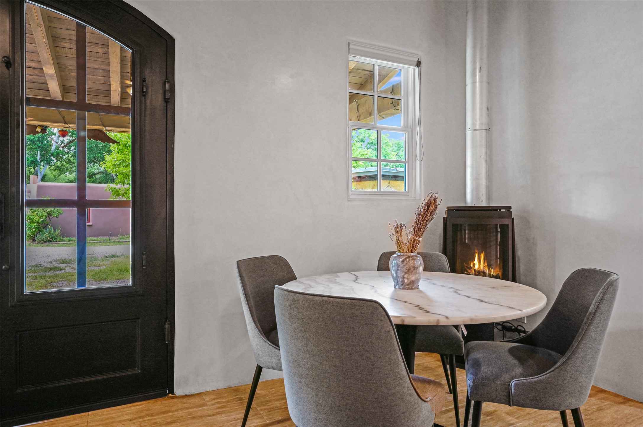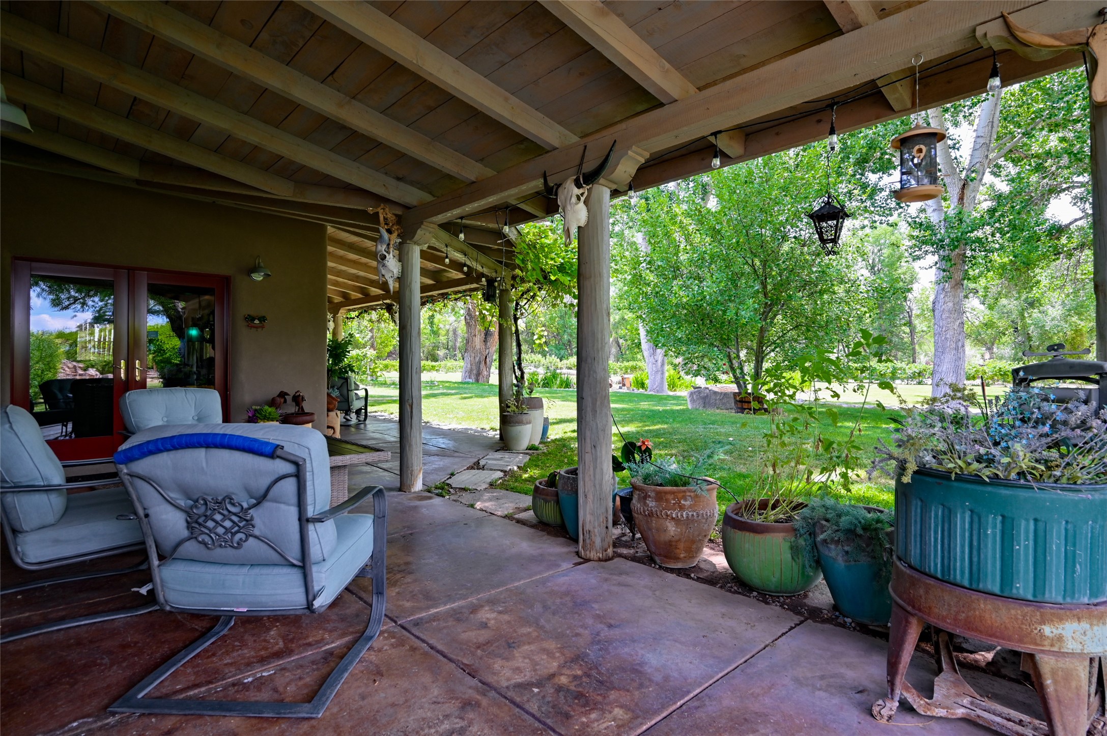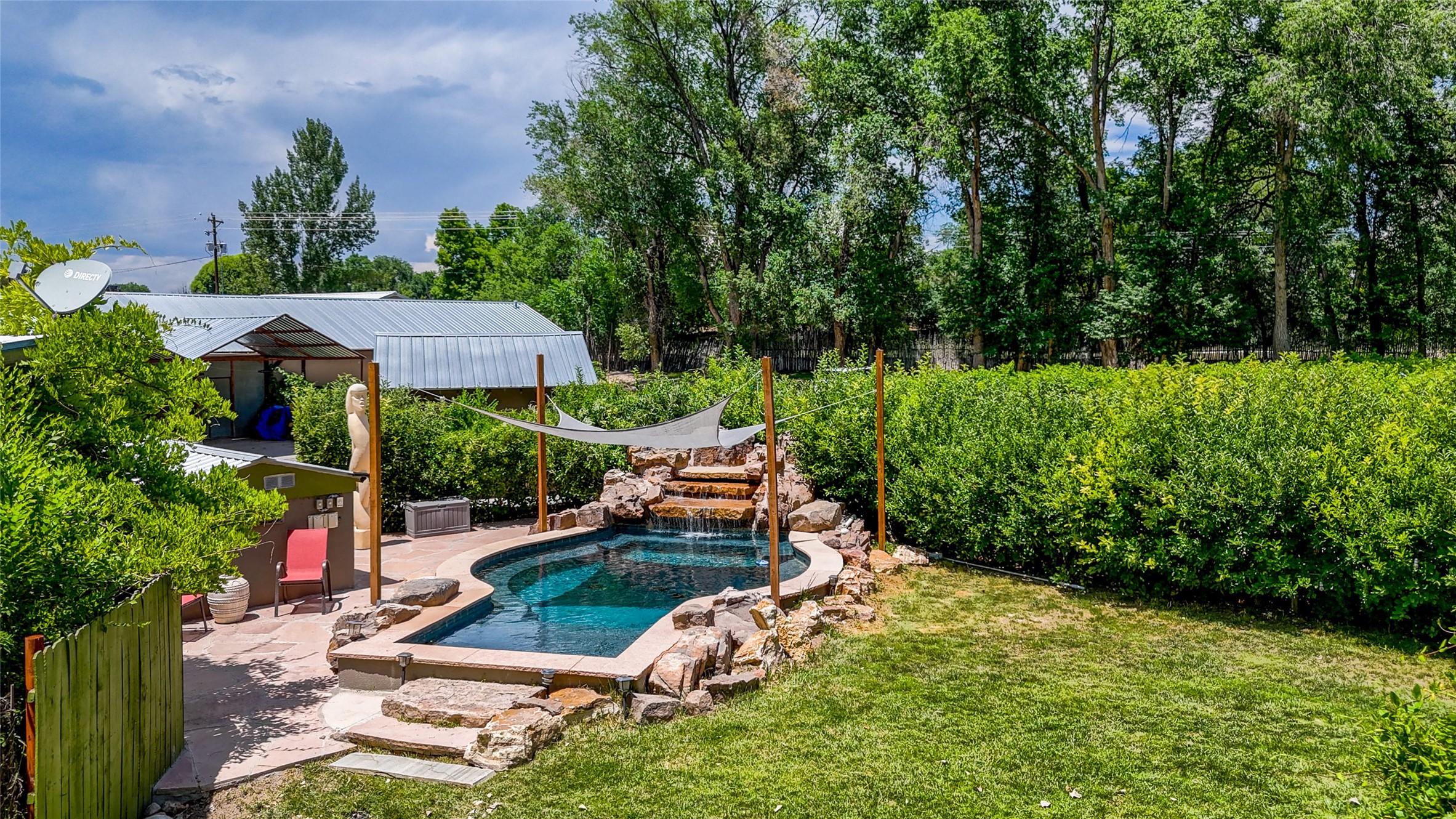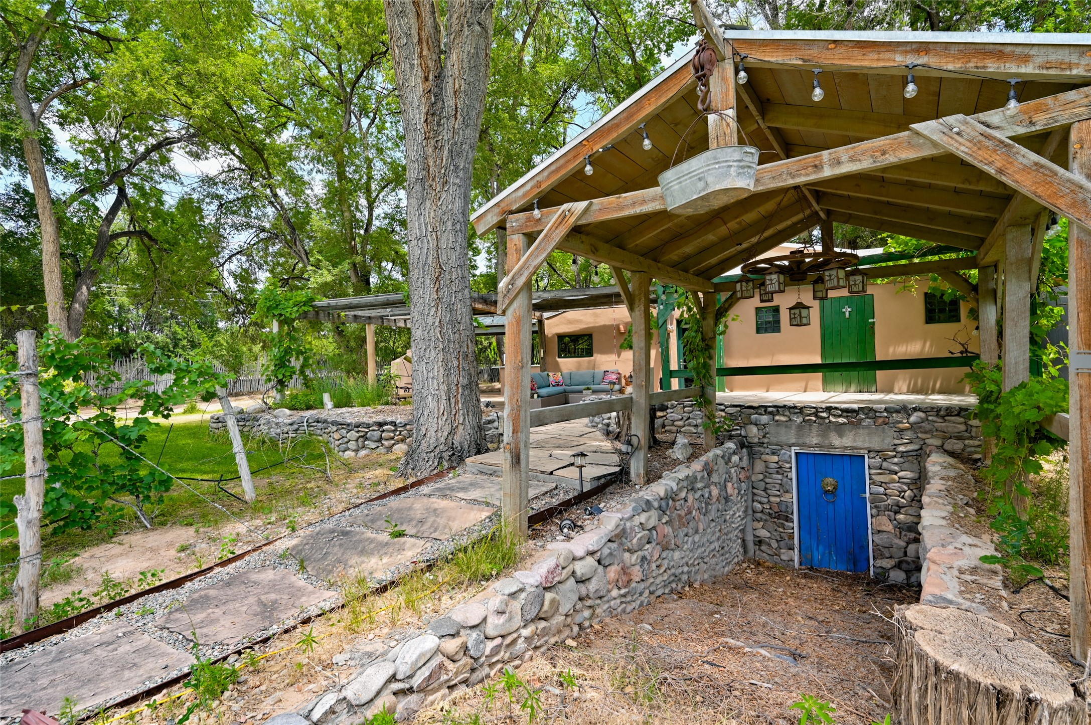 Heavenly 4.5-Acre Estate in Pojoaque Valley - Vineyard, Casitas & More!Rare opportunity to own one of the most spectacular estates in the Pojoaque Valley, just minutes from downtown Santa Fe. This 4.5-acre property offers a serene retreat with 3 acre-feet of domestic water rights and 6.91 acre-feet of irrigation water rights, supporting both vineyard expansion and lush garden potential. The grounds are also home to mature apple, plum, pear, and cherry trees.The main residence is a classic adobe featuring 4 bedrooms and 2 bathrooms (ESTIMATED SQ. FT. 2300), with traditional New Mexican details including vigas, brick floors, two rock fireplaces, and a spacious portal perfect for outdoor living.Three additional casitas (ESTIMATED TOTAL 3100 SQ. FT. COMBINED) provide excellent flexibility:1BR/1BA Casita - 800 sq. ft.2BR/2BA Casita - 811 sq. ft.1BR / 1BA Casita ready for your personal touch and renovation vision - 1500 sq. ft.Ideal for short-term rentals, guest stays, or multi-generational living.Outdoor amenities offer exceptional entertainment and relaxation opportunities:25-person hot tub/poolFirepit lounge areaOutdoor bathrooms and showersBrick pizza ovensWine cellar2 RV hookupsA large metal barn offers generous storage or potential for workshop, studio, or event use.Whether you dream of running a boutique vineyard, hosting retreats, or simply living in peaceful luxury, this unique Pojoaque Valley estate delivers charm, privacy, and unlimited potential.