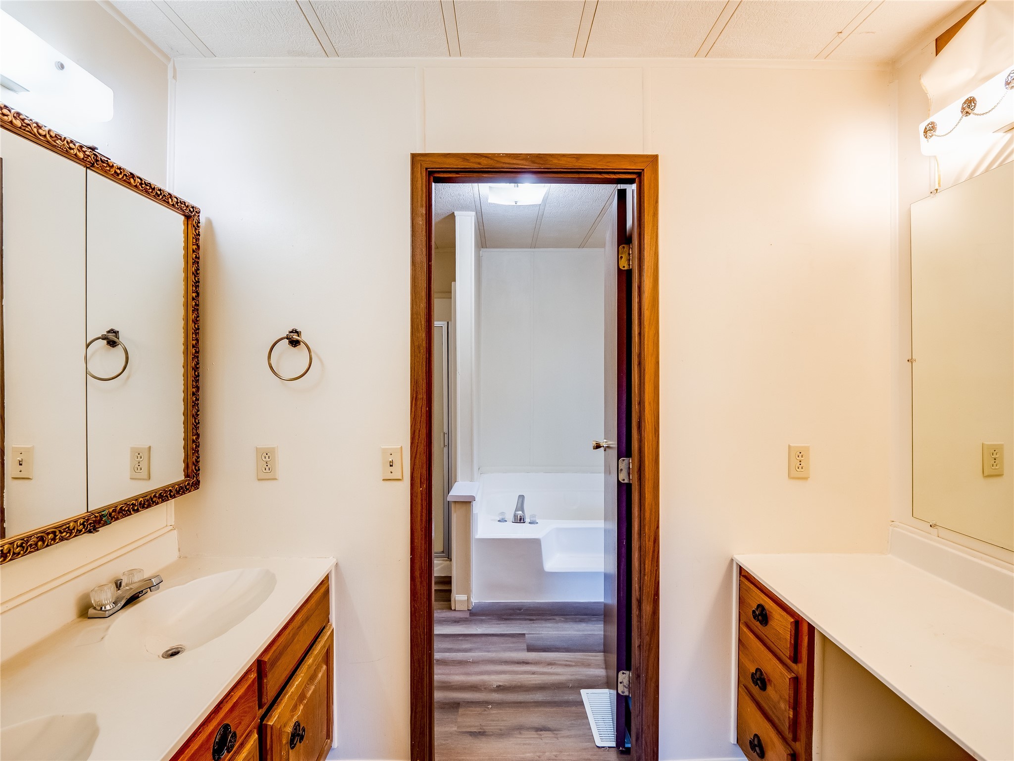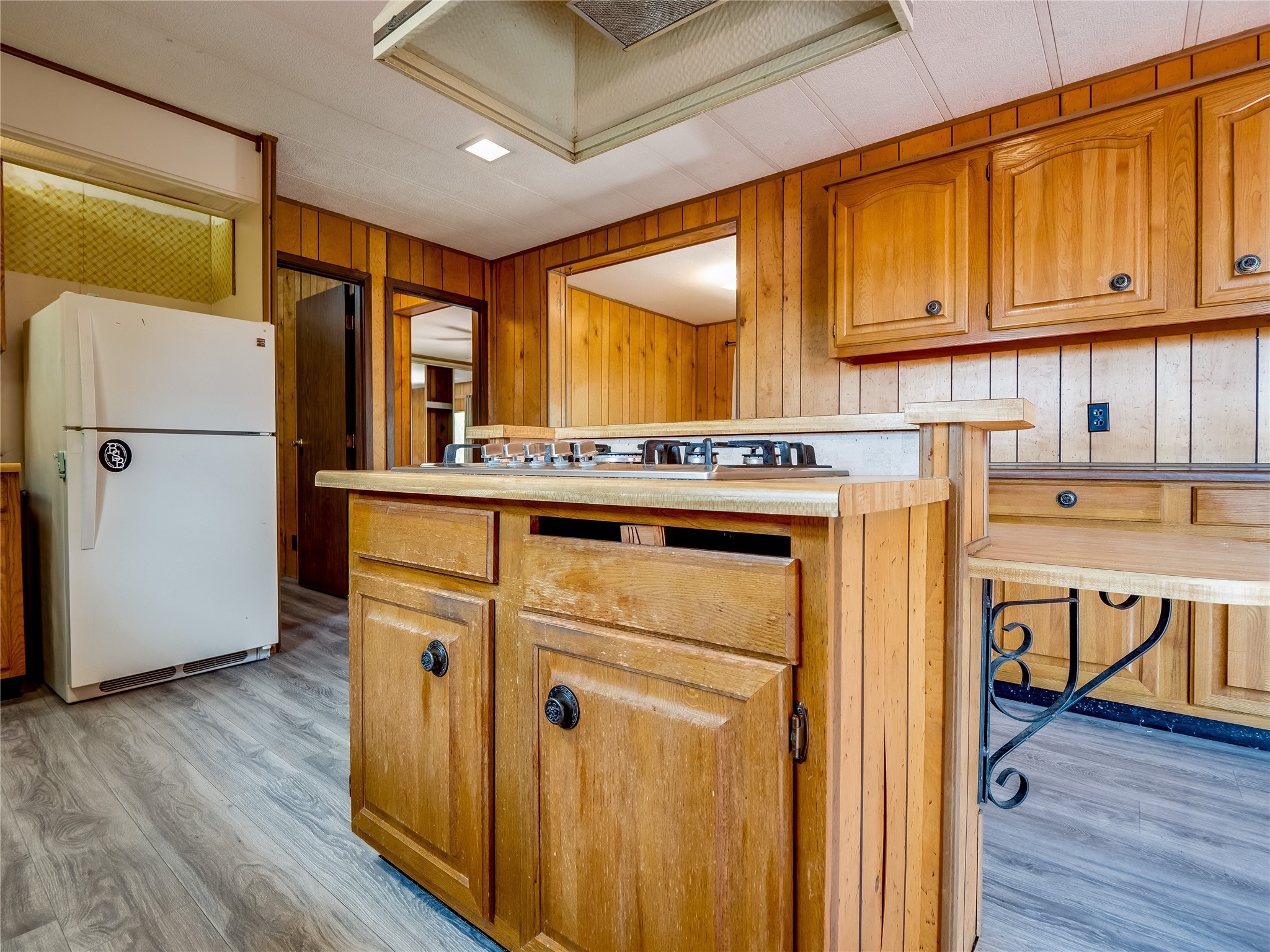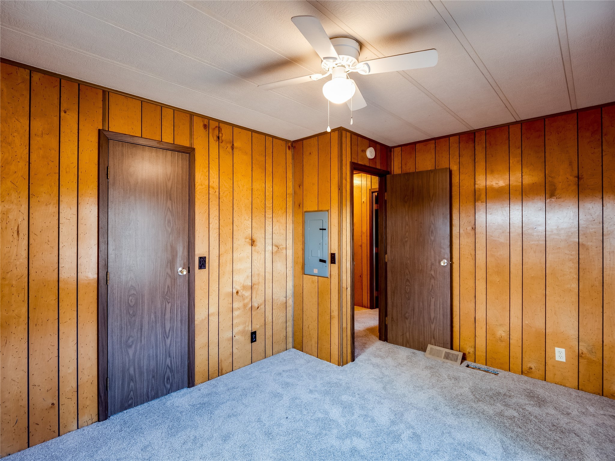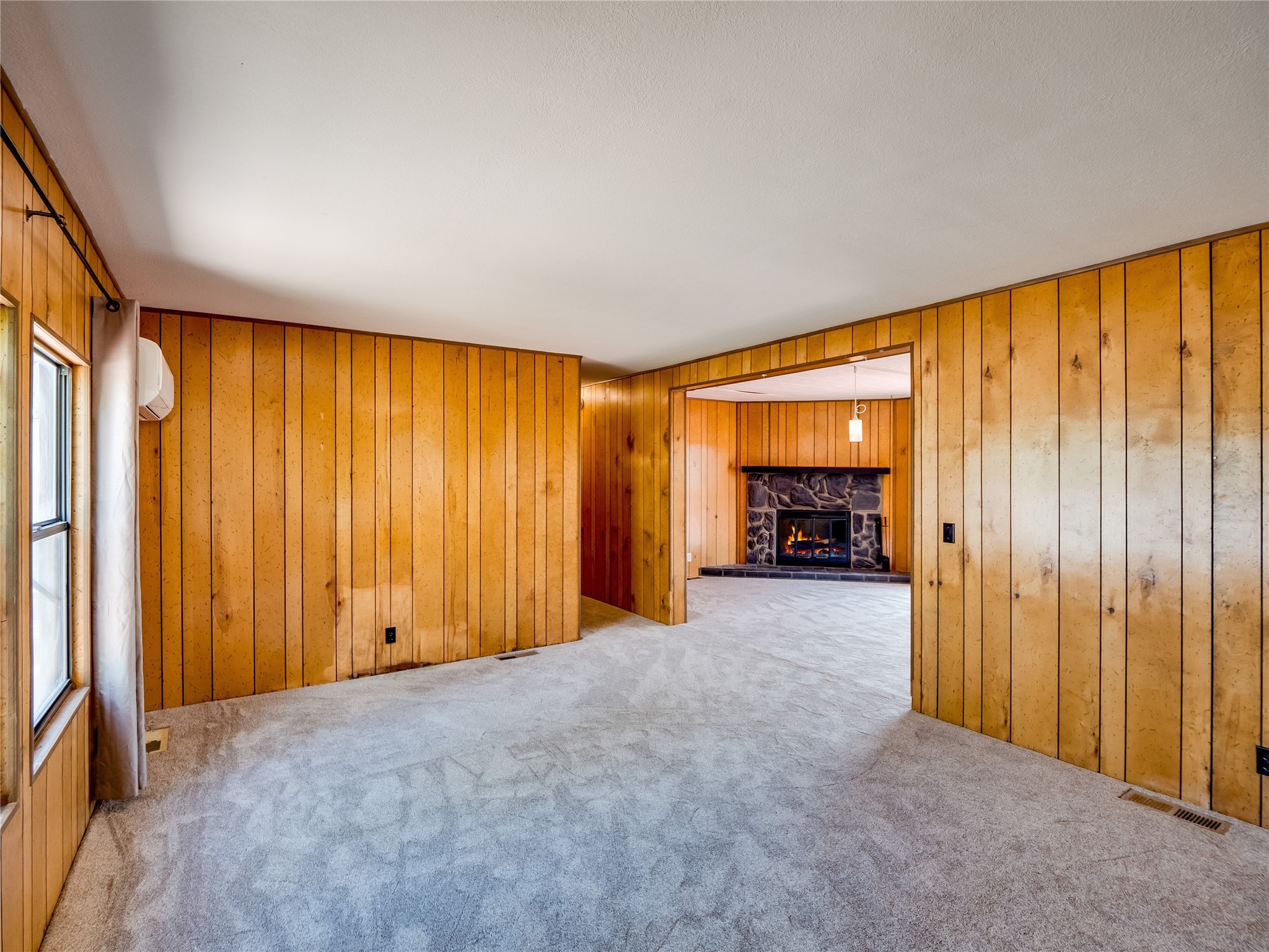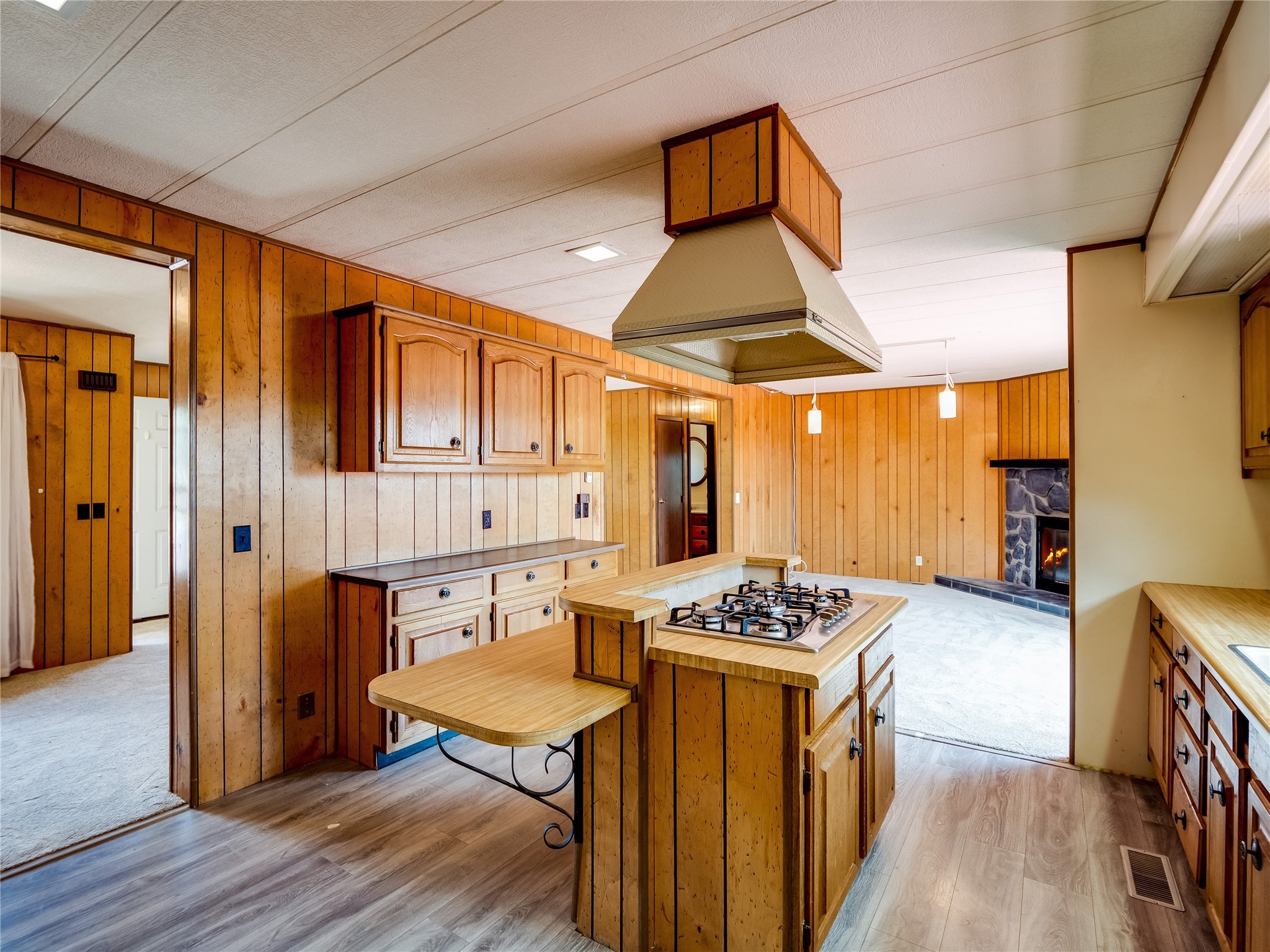 Charming Single-Story Home on the Canyon with Mountain Views in Tsikumu Village! This home offers incredible mountain views and a peaceful setting just moments from schools, trails, and stables. With a low-maintenance front yard shaded by mature trees and shrubs, this property offers curb appeal without the work. A step-up porch welcomes you into the home, where you'll find a spacious living and dining room featuring warm wood-paneled walls and newly installed lush carpet that runs throughout the interior. Adjacent to the main living area is a cozy family room with a stunning stone wood-burning fireplace, perfect for chilly nights, and sliding glass doors that lead to the expansive backyard deck. The nearby kitchen offers both charm and function with laminate wood flooring, wood cabinets with black hardware, generous counter space, and a center island with bar seating and a gas cooktop with overhead hood--ideal for both casual meals and entertaining. Off the kitchen is a laundry room complete with a utility sink, storage closets, and direct access to the back deck for convenience. The large primary en-suite bedroom features a wall of closets with elegant glass sliding doors and plenty of natural light. The attached bathroom includes a double sink vanity, a dedicated makeup vanity, a walk-in shower, and a deep soaking tub--a perfect retreat for relaxation. Down the hallway are two nice-sized guest bedrooms and a full guest bathroom with a single sink vanity and a shower/tub combo with glass door enclosures. Enjoy modern comfort with central A/C for those warm summer days. Step outside to the oversized deck that offers panoramic mountain and canyon views--an entertainer's dream and a stargazer's paradise. The backyard also includes a large storage shed for your tools and gear, and just down the street is a community playground. If you're looking for a unique home with gorgeous views, peaceful surroundings, and easy access to outdoor adventures, this gem is a must-see!
