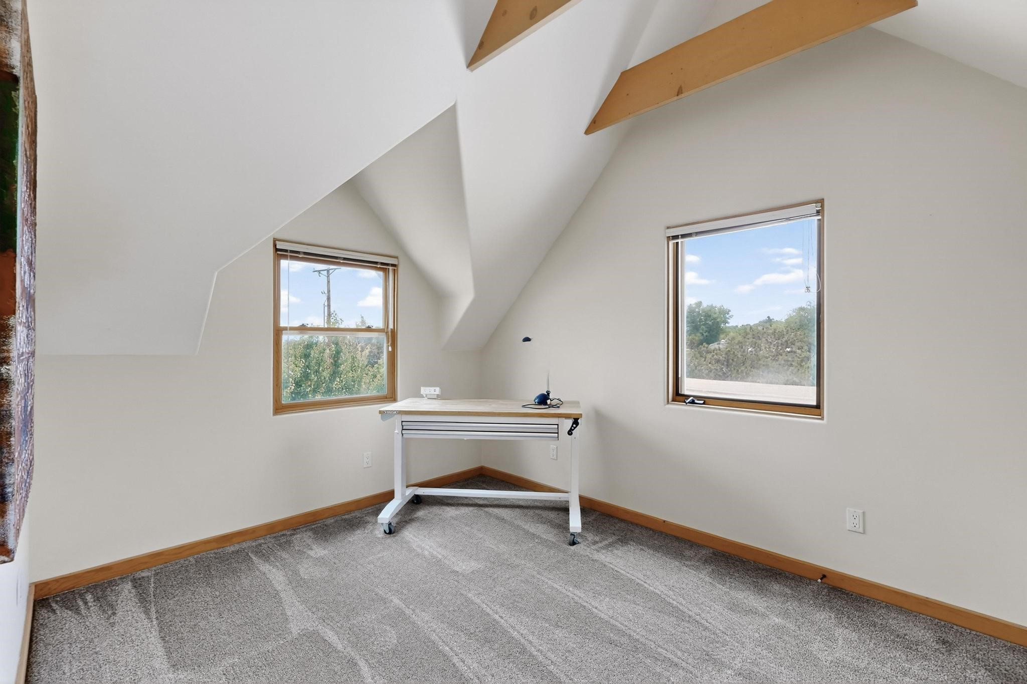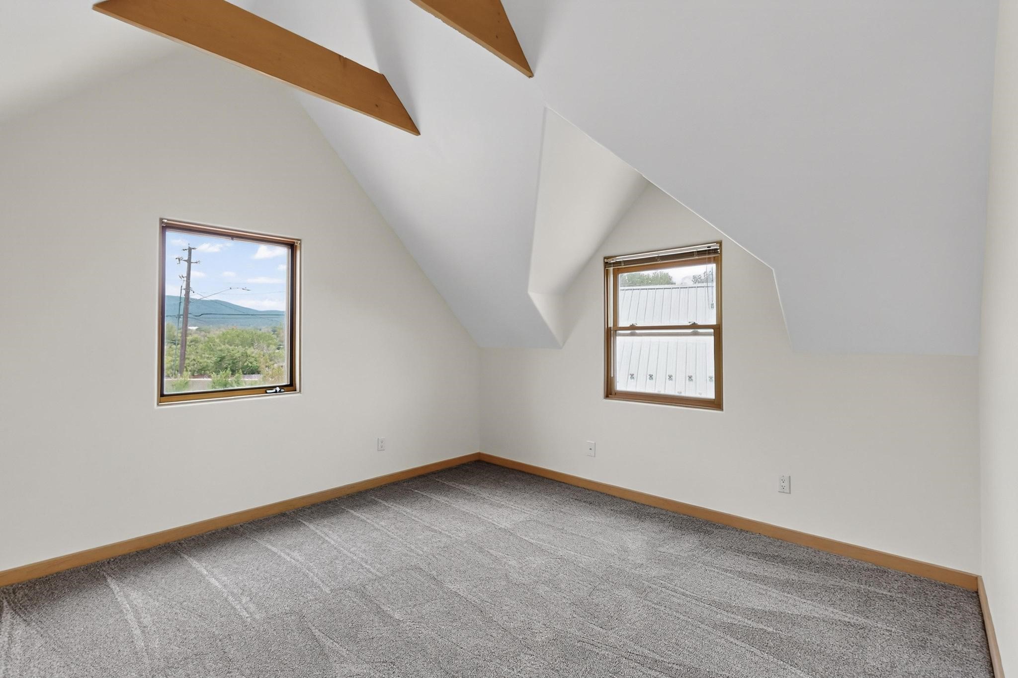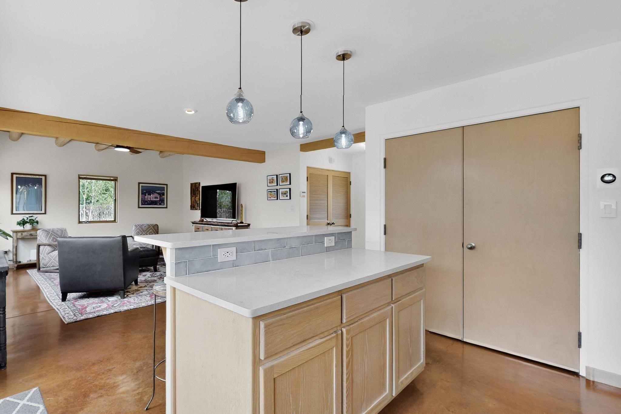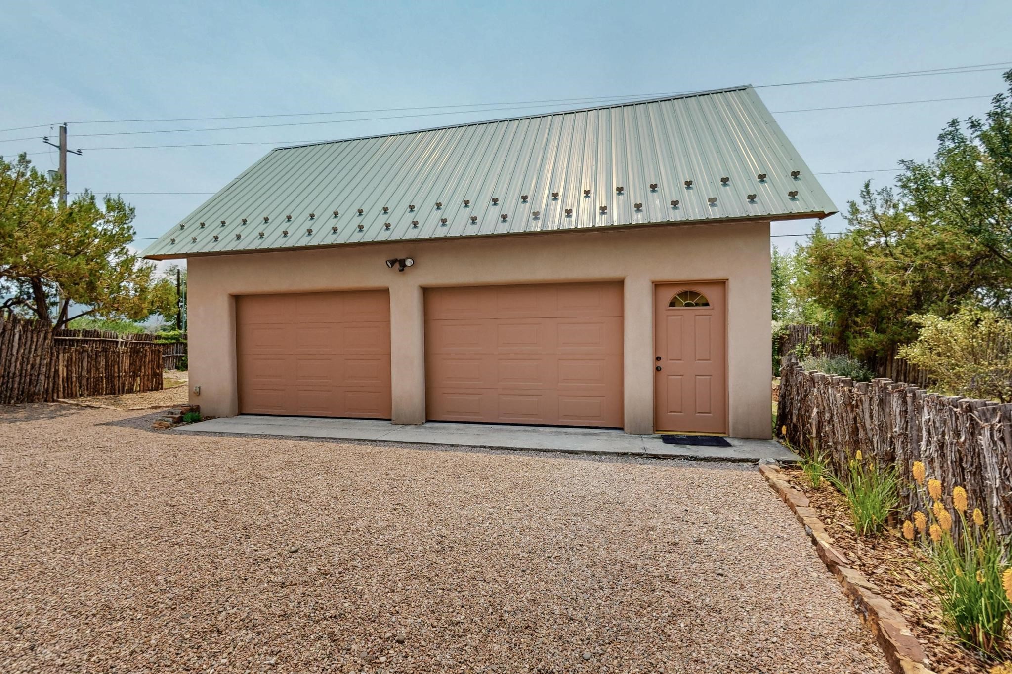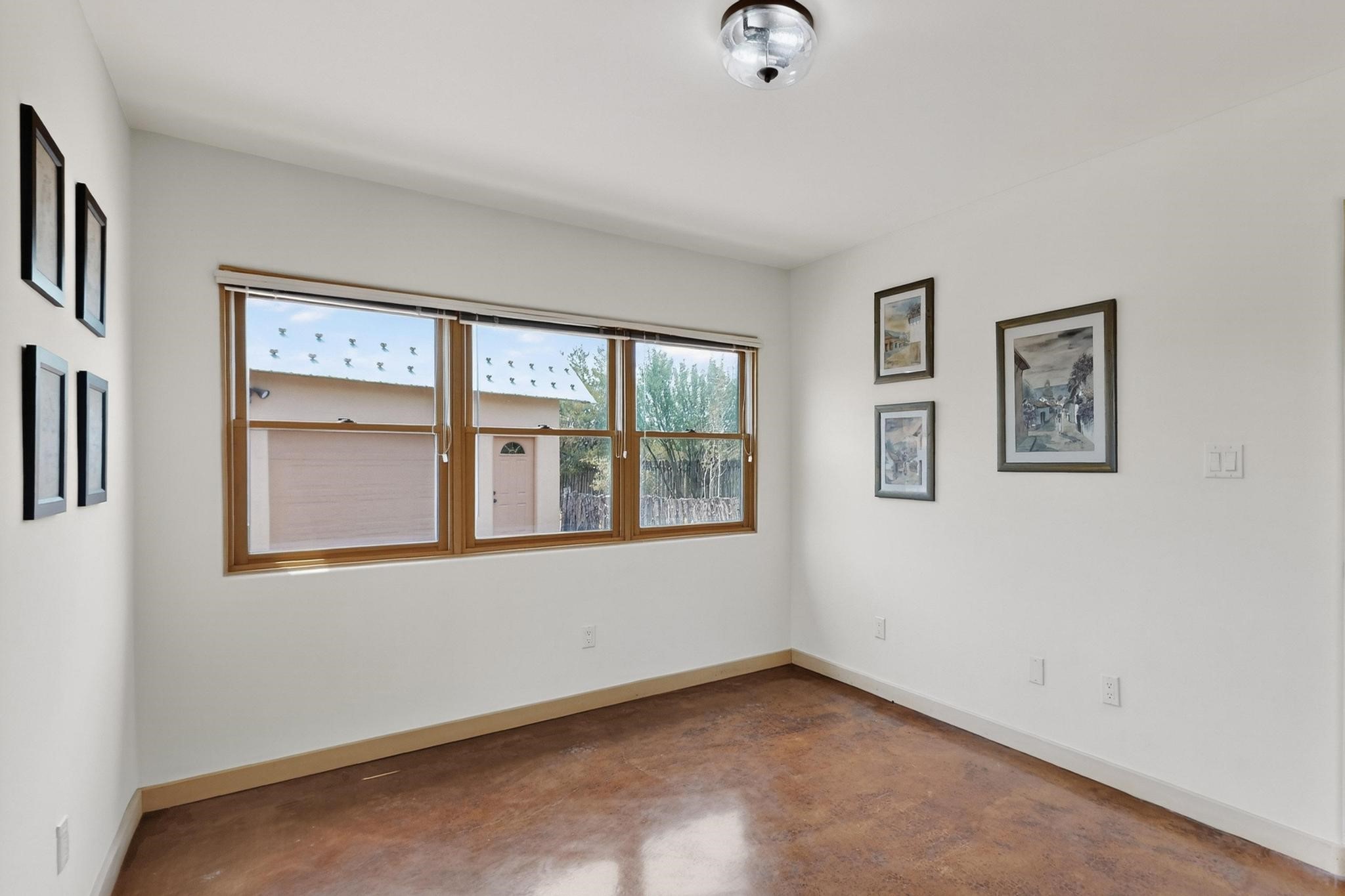 Smartly updated, Northern New Mexico Style, passive solar home. First Energy Starhome in New Mexico featuring high quality construction and outstanding efficiency!Inside you will find stained concrete radiant floors, new high-quality carpet upstairs andan abundance of beautiful natural light throughout the home. Tasteful finishes havebeen newly added to the kitchen and baths including new quartz countertops, sinks,matching faucets, lighting accents as well as brand new Wi-Fi ready Samsung StainlessSteel appliances. Other recent updates include a Lutron wireless automated lightingsystem, new smart smoke/CO detectors and thermostats, Moen Flow water leakdetection system and a filtered drinking water system. Feel at ease with brand newradiant heat boiler and control system as well as new domestic hot water heater. Thehome enjoys lovely Sangre de Cristo Mountain views from the primary upstairsbedroom with walk in closet. Outside you will find copious parking for guests and toys.The extensive low maintenance landscaping surrounding the property brings a pastoralfeeling with blue grama, Aspen trees and flowers amongst artful custom stone walls allautomatically watered with a Wi-Fi controlled irrigation and drip system. The detached580 sq/ft heated, insulated and finished garage could easily serve as an excellentworkshop, studio, or guest house. The garage also boasts a full, equally sized attic forextra storage or the option to finish. This would be a great location for the LANL commuter or someone looking for an ultra-convenient location just minutes from Plaza, the Railyard, and the Montanita Co-op. Enjoy a very short walk to the river trail, Frank Ortiz dog park and city open space trails, or a quick mountain bike ride from this hometo La Tierra trails and more. This home offers easy connection to all that Santa Fe has to offer!