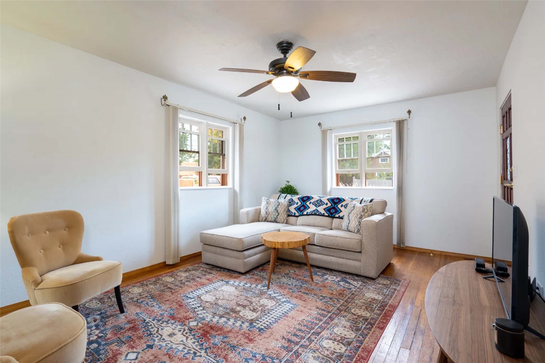 Tucked behind curved, gated walls in the heart of South Capital, this historic Spanish Pueblo Revival home offers the ideal blend of charm, location, and income potential. Built in the 1930s with iconic 15-inch adobe walls, original hardwood floors, and divided-light sash windows, this home exudes authentic Santa Fe character. Currently operating as a successful short-term rental, this property has a strong rental history, making it an excellent opportunity for investors or those looking to offset ownership costs with passive income. The thoughtful floor plan includes two private bedrooms, a spacious living area, and excellent flow for both hosting and relaxing. Step outside to enjoy the beautifully crafted flagstone patio and shaded portal, surrounded by mature trees and romantic gardens. Backing onto the historic Arroyo Tenorio Acequia, the setting is peaceful yet connected. Boasting a Walk Score of 91, you're just moments from the Plaza, River Walk, top-rated restaurants, cafes, art galleries, and Santa Fe's vibrant cultural scene. Whether you're seeking a charming residence, a part-time pied--terre, or a turn-key rental investment, this South Capital gem delivers. Imagine the Possibilities and make this beautiful home yours!
