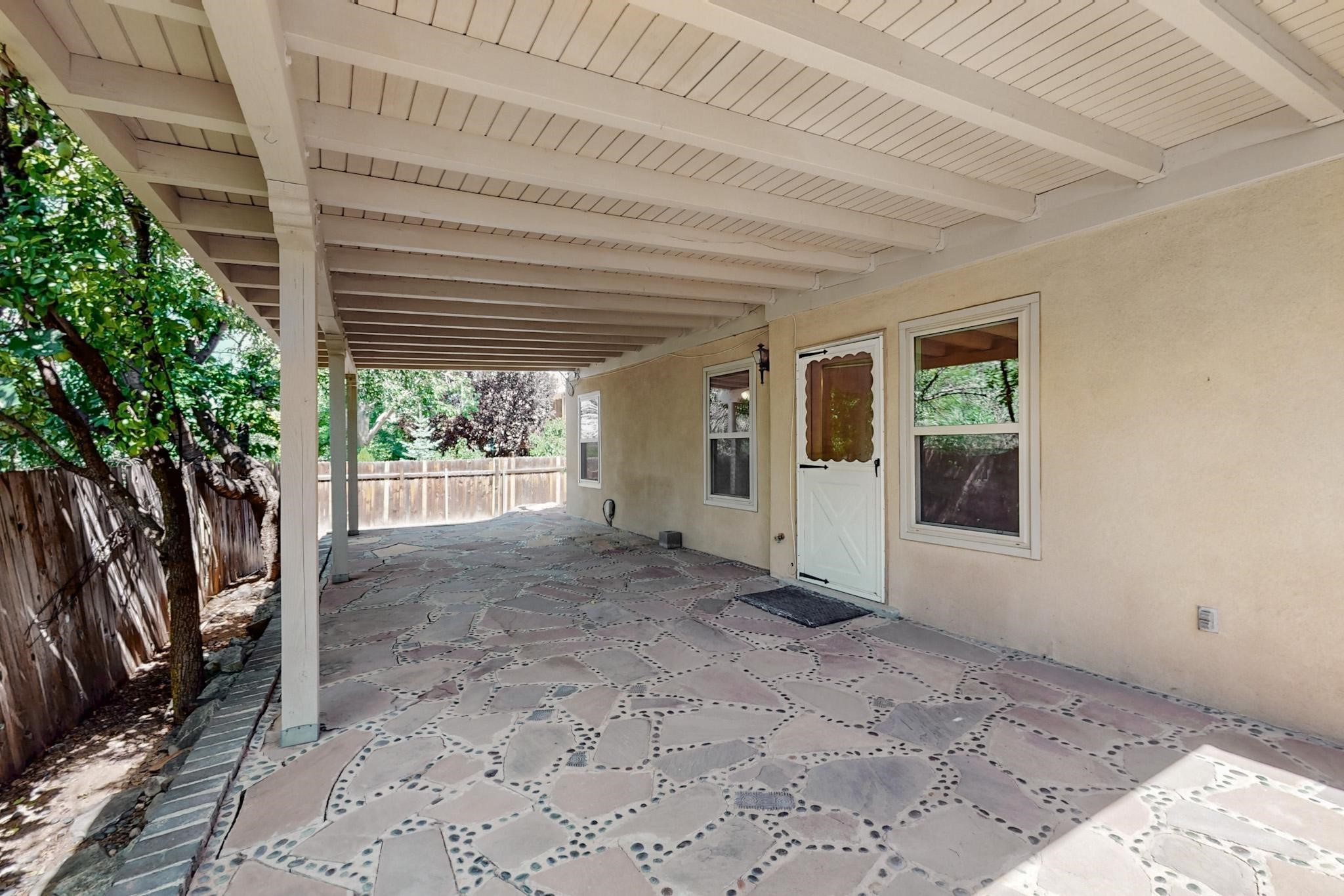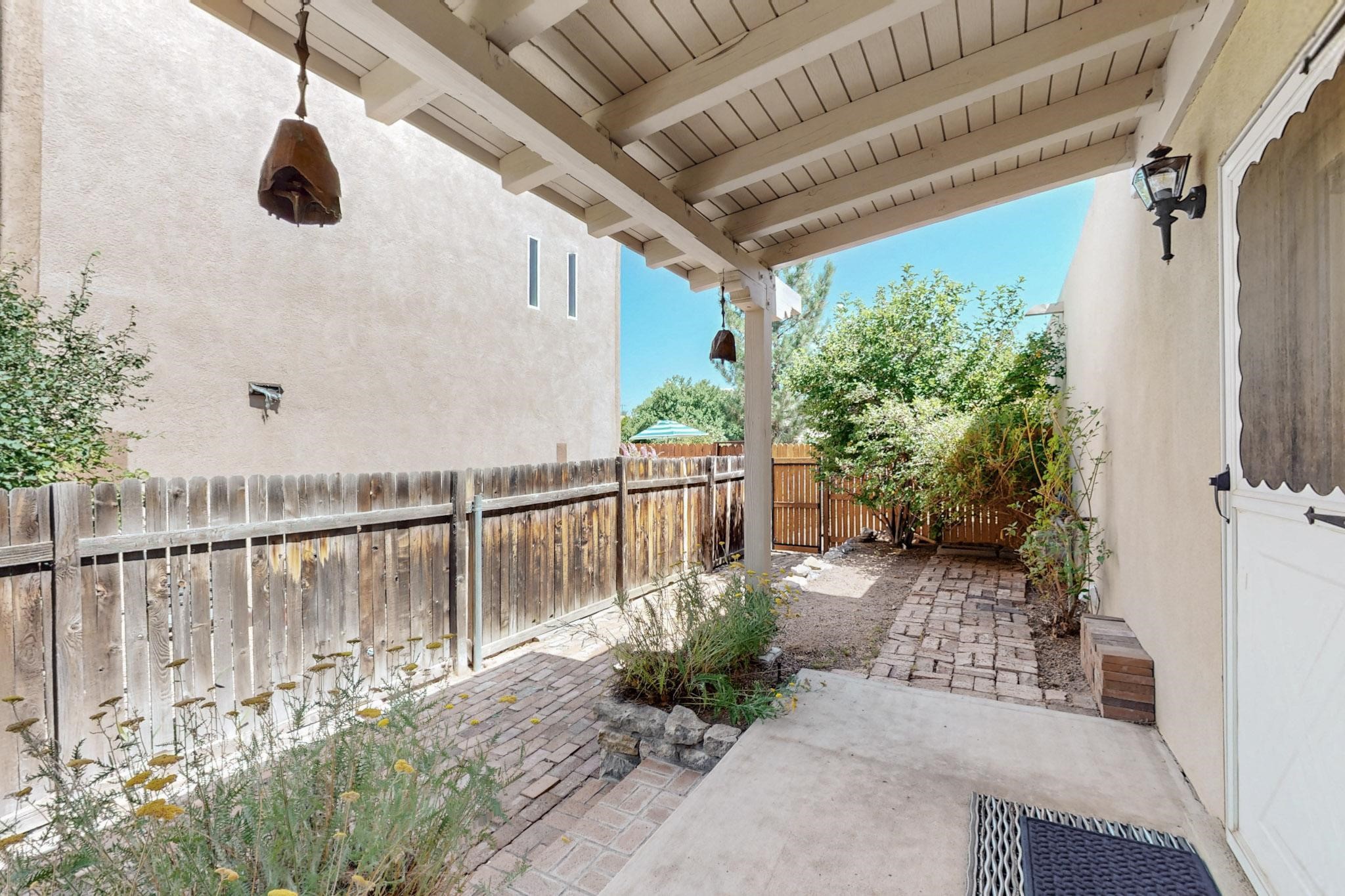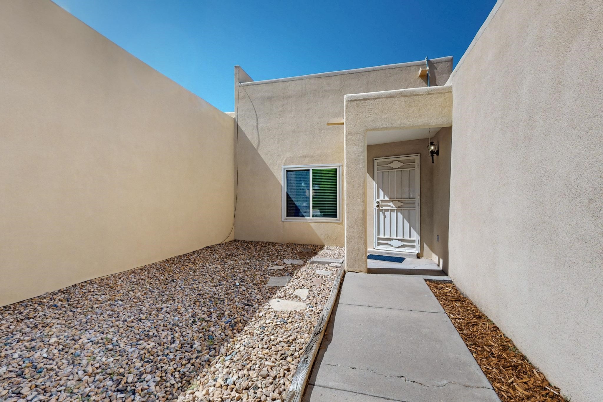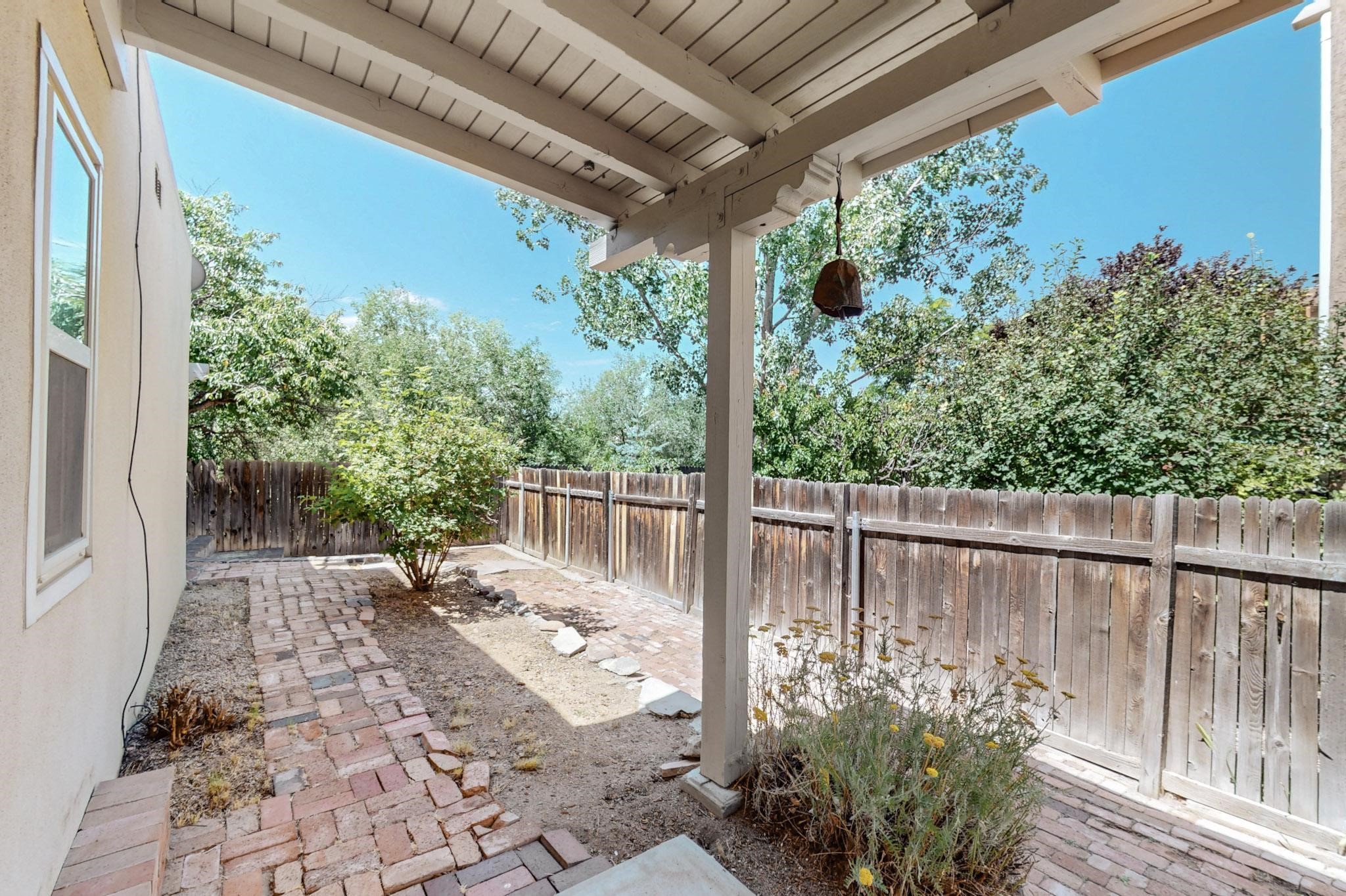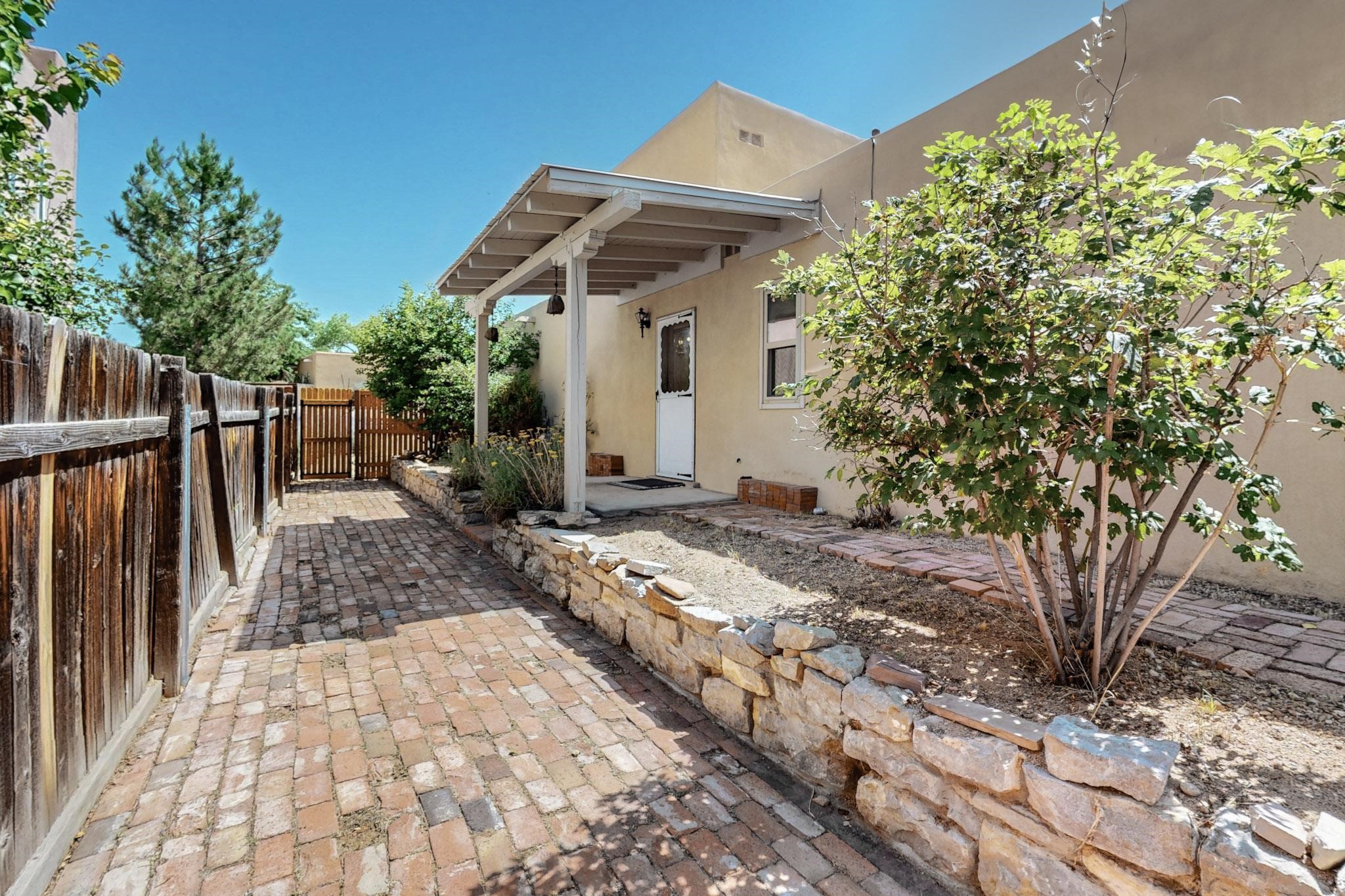 This beautifully, well-maintained single-level two-bedroom home is located near schools, shopping, a park, and a train stop. High ceilings with clearstory windows bring in much natural light, and the woodburning fireplace welcomes you with a great first impression. Two custom patios create a large entertainment area with great sunset views and a peaceful arroyo. There are cherry & pear trees as well as grape vines in the low maintenance backyard.