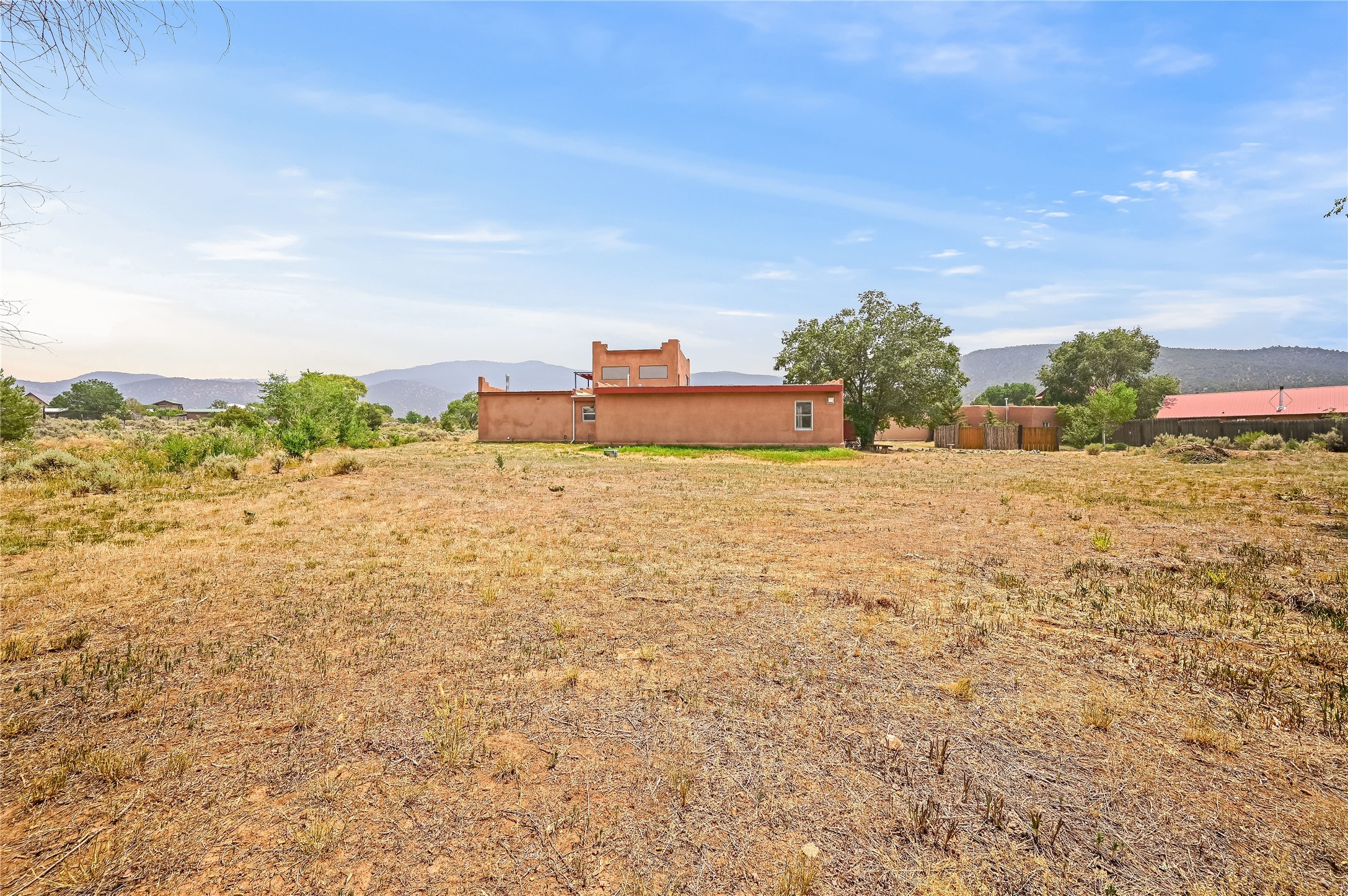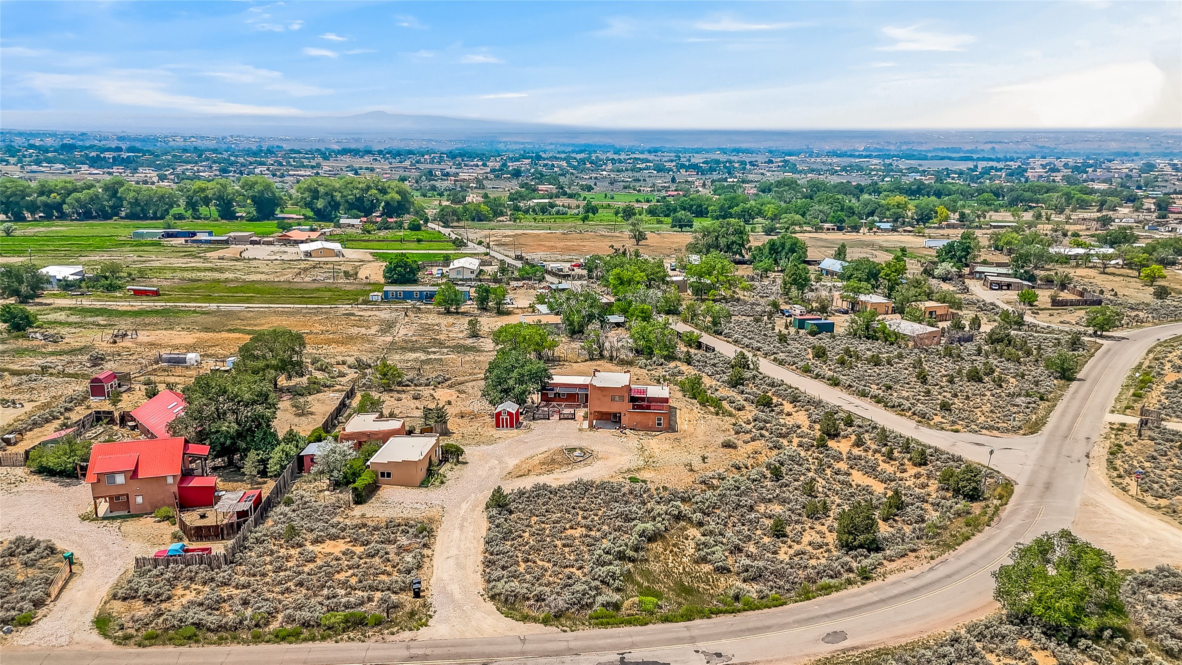 Discover a Unique Taos Living and Investment Opportunity! Nestled in Ranchos de Taos, just outside town limits, this exceptional property offers a serene lifestyle combined with a positive, steady rental income. You'll be living in a peaceful neighborhood, yet just 4 miles from Taos Plaza, a half-mile from Holy Cross Hospital, and moments from the Weimer Foothills trails. This unique offering includes four total units. The owner-occupied main home features an open living, dining, and kitchen area with clerestory windows and a loft. The cozy kiva fireplace, a two-story chimney before a sunken living area, was crafted by renowned artisan Carmen Velarde and inspired by the iconic Taos Inn. Enjoy abundant natural light and an upstairs loft/studio with a large second-story viewing deck offering breathtaking mountain views, including Taos Mountain, and stretching all the way to Colorado - perfect for watching spectacular sunsets and stargazing. The main home was beautifully remodeled in 2018 , with upgraded bathroom, kitchen flooring, and cabinets, and the outdoor area was enhanced in 2023. Beyond the main residence, you'll find an extended owner's suite that has been partitioned as a studio rental, a separate 1-bedroom, 1 bath-room guest house, and a truly special adobe studio/chapel. This studio, a replica of a church chancel, was originally built for artist Fr. William Hart McNichols by master adobe builder Trini Velarde. Constructed with traditional adobes, mud floors, and vigas painted with natural plant dyes, this studio remains cool in summer and remarkably warm in winter. This is more than just a home; it's an incredible investment opportunity to own a piece of Taos's rich artistic and building heritage with established rental income.