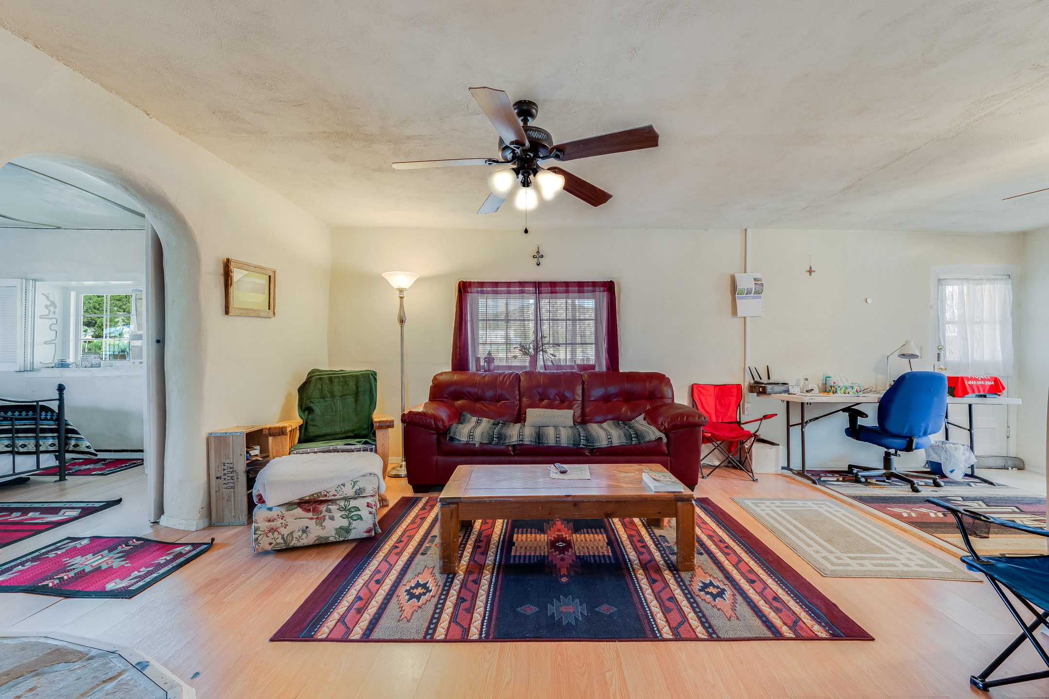 This sprawling ranch sits on 24 acres with an underground irrigation system throughout and the Tusas River winding through the estate. It consist of an 2600 Sq/Ft adobe (mud block) two-story main house built in the early 1940s. The thick, earthen walls, offers a unique and comforting warmth during the colder months and are cool during the hot summer days are also a glimpse into the rich historic past of New Mexico. Within a short walking distance from the main home, is the 320 Sq/Ft casita dating early circa 1830's. The allure of adobe-style home building, often referred to as Pueblo style, lies in its romantic visual appeal that resonates with many seeking a traditional Southwestern aesthetic. The influence of Moorish architecture on adobe homes is notable, reflecting centuries of cultural exchange between North Africa and Spain, which subsequently impacted the architectural landscape of New Mexico. This historical connection adds a layer of depth to the architectural heritage of the area. The property additionally features a 24'x28' two-car garage; a 36'x 40' workshop and a 36' x36' metal barn. Traditional farming in the area included harvesting alfalfa, vegetables and other farming, largely organic. The community of La Madera population is about 150 people, which offers a great deal of privacy. The mountains surrounding the property are a "high-elevation desert landscape" are characterized by dramatic mountains, broad valleys, high elevation, alkaline soil, and an abundance of diverse plant and animal life. Also offered is the potential of purchasing the farm equipment at a reduced rate. Property is ideal for horses, sheep, cattle, goats, pets and other livestock.