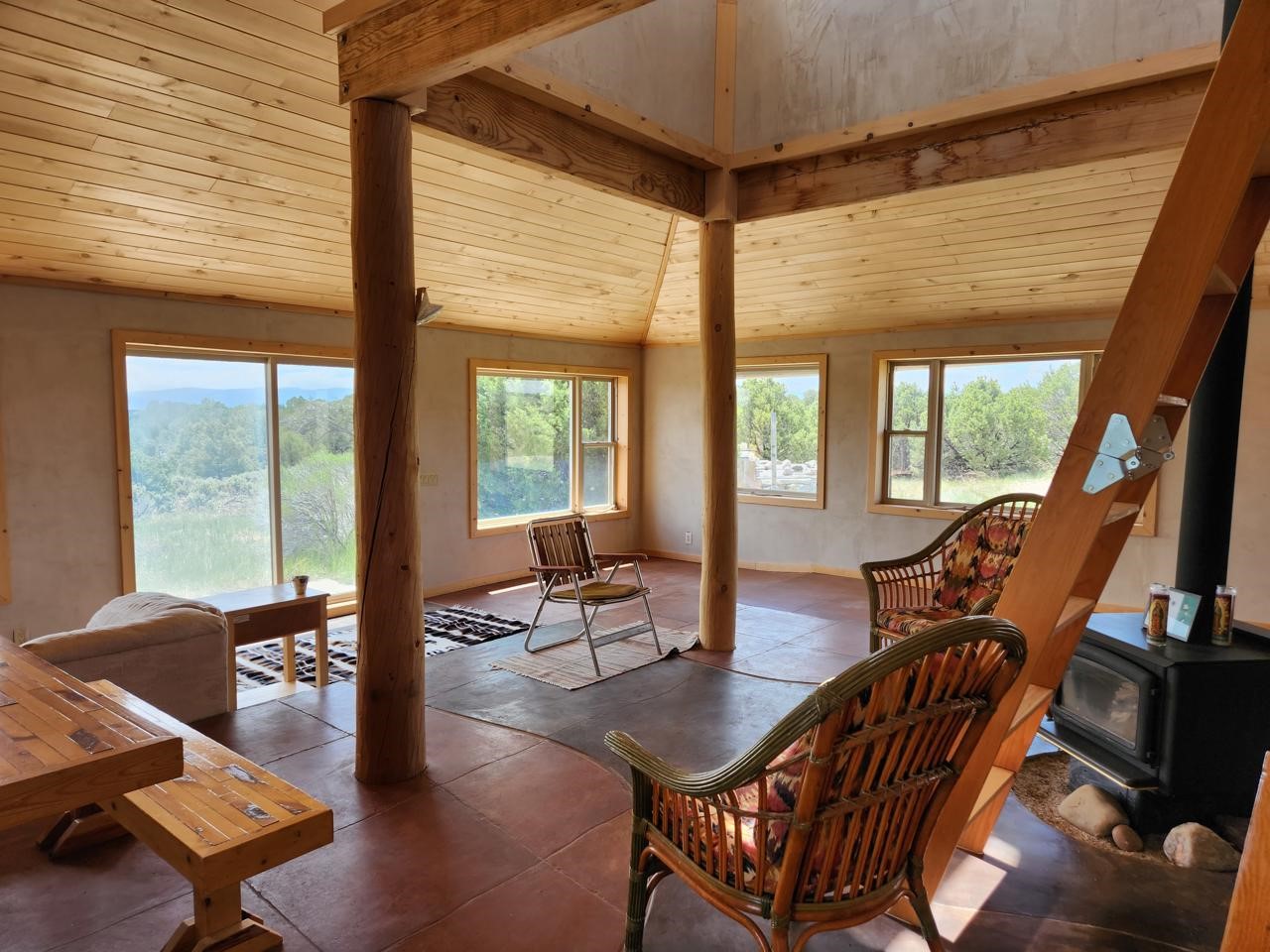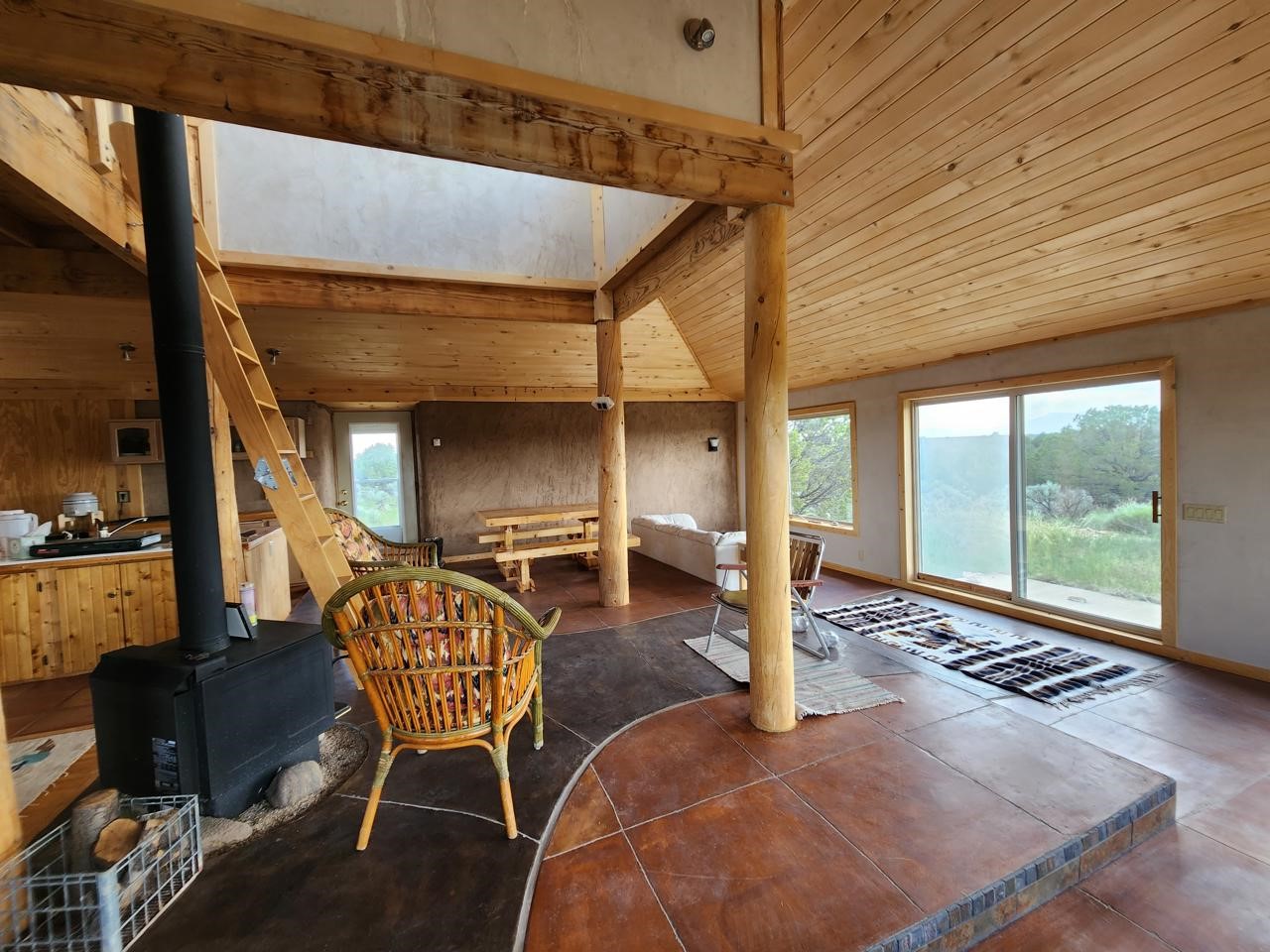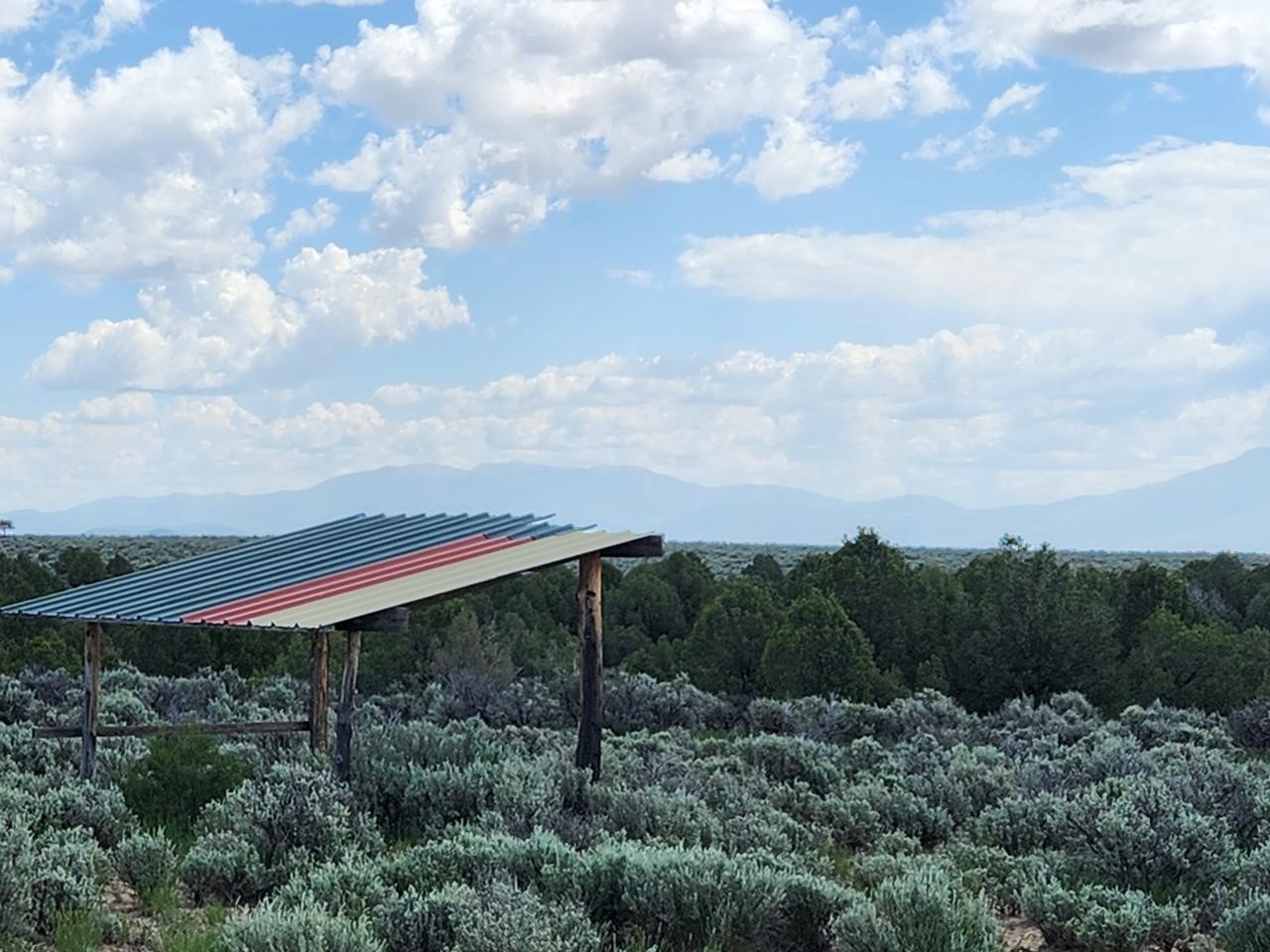 This efficient custom designed solar home will offer room to roam along with inspiring sunrises, sunsets and starry night skies. Enjoy spacious, secluded, off-grid living near Taos, NM. Straw bale/frame/stucco constructed home is on 38.9 acres that borders Carson National Forest in a private gated community. Stunning pinon framed views of the Sangre de Cristo Range extend from Santa Fe to Colorado. The home is cozy and inviting, featuring an open floor plan for ease of movement and views. Stylish earth and artisanal natural plaster walls along with attention to wooden design create an earthy and grounded environment in this passive and active solar-powered home. Green utilities include a self-supplied water catchment/cistern system and an efficient solar energy system. Make this a permanent home, artist's or writer's retreat just enough off the beaten path, yet an easy scenic ride will take you to colorful Taos for entertainment, skiing and great food. Abundant hiking, biking, scenery and wildlife are at your front door awaiting your adventures. Rio Grande del Norte National Monument, Wheeler Peak Wilderness and Carson Nation Forest are only a partial list of nearby public lands to enjoy.