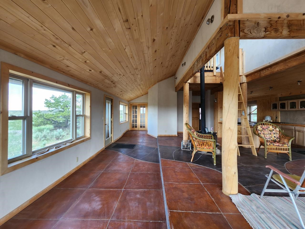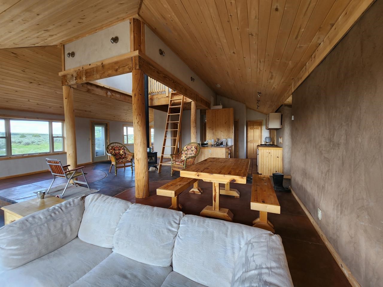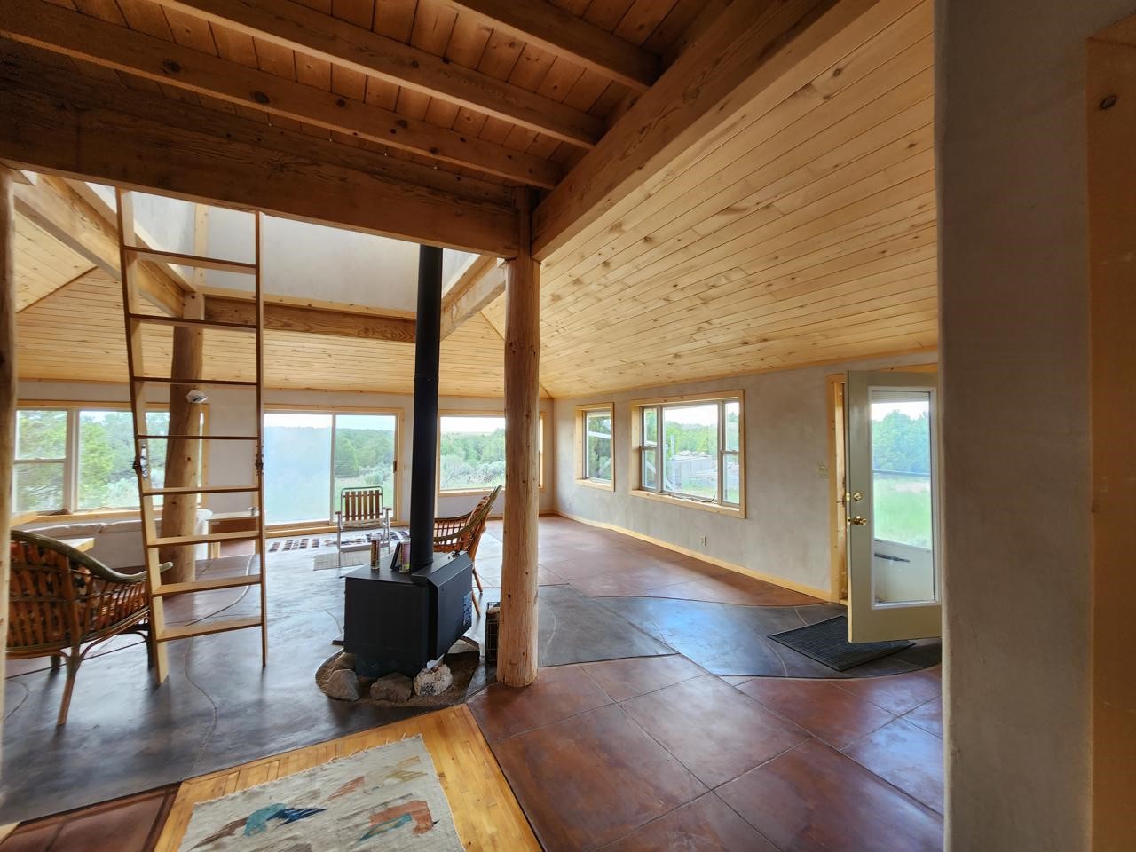 This efficient custom designed solar home will offer room to roam along with inspiring sunrises, sunsets and starry night skies. Enjoy spacious, secluded, off-grid living near Taos, NM. Straw bale/frame/stucco constructed home is on 38.9 acres that borders Carson National Forest in a private gated community. Stunning pinon framed views of the Sangre de Cristo Range extend from Santa Fe to Colorado. The home is cozy and inviting, featuring an open floor plan for ease of movement and views. Stylish earth and artisanal natural plaster walls along with attention to wooden design create an earthy and grounded environment in this passive and active solar-powered home. Green utilities include a self-supplied water catchment/cistern system and an efficient solar energy system. Make this a permanent home, artist's or writer's retreat just enough off the beaten path, yet an easy scenic ride will take you to colorful Taos for entertainment, skiing and great food. Abundant hiking, biking, scenery and wildlife are at your front door awaiting your adventures. Rio Grande del Norte National Monument, Wheeler Peak Wilderness and Carson Nation Forest are only a partial list of nearby public lands to enjoy.