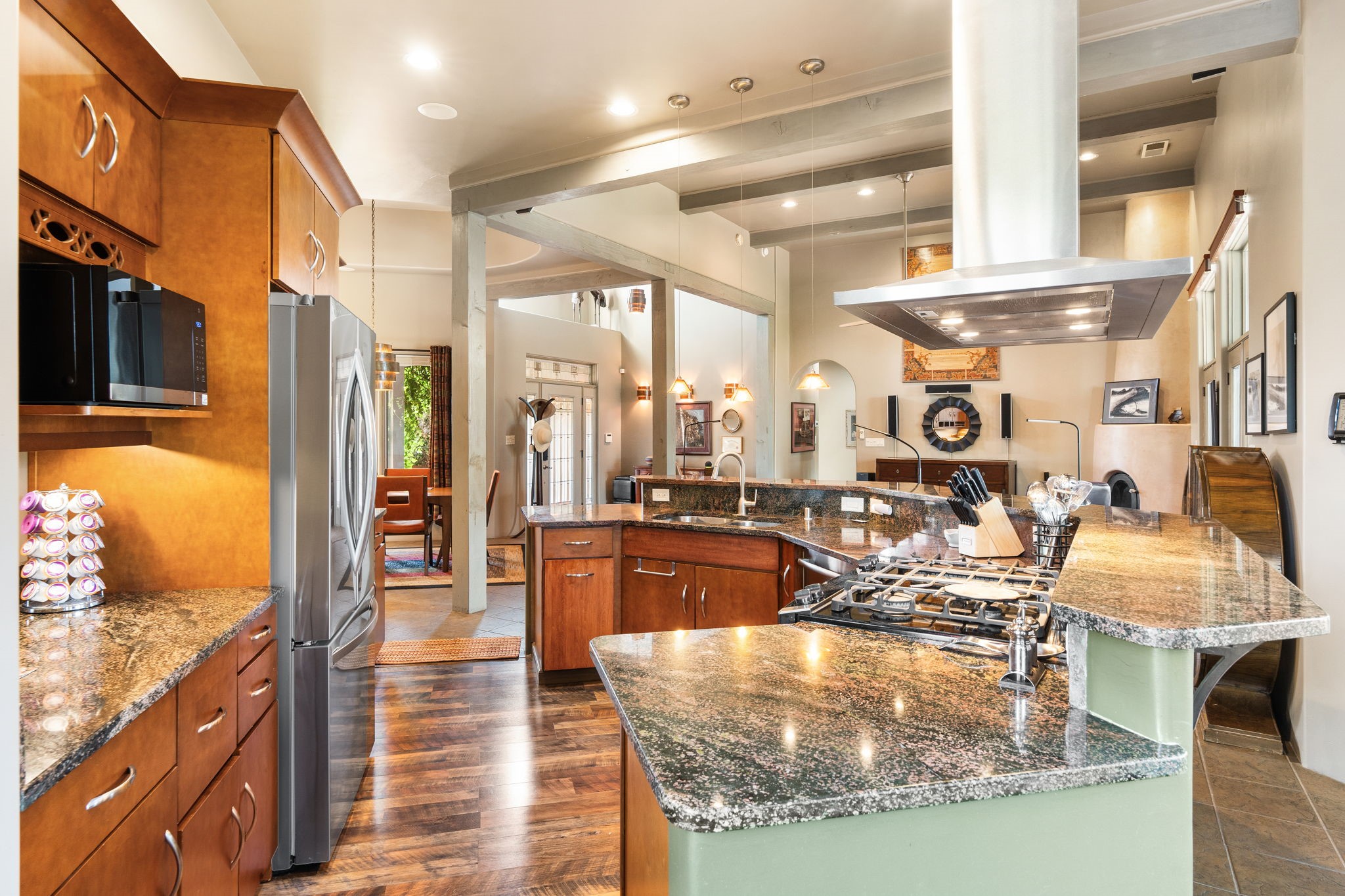 Perched Above It All | 53 Private Drive, Medanales, NMSet atop a quiet mesa with nearly 360 views of Northern New Mexico's iconic landscape, this soulful 3-bedroom, 2-bath Southwestern retreat rests on just under 9 acres of open sky and timeless beauty.Inside, the home blends rustic charm with clean comfort--Santa Fe-style smooth plaster walls, exposed wood beams, classic tile floors, and warm light moving through every space. With 2,295 square feet, the layout feels open and thoughtful, and a detached studio offers the perfect setup for remote work, a creative retreat, or private guest quarters. High-speed internet and refrigerated air ensure you're both off the grid and on the grid.From the front portal, the views stretch endlessly--from the Rio Chama Valley to the jagged outline of Cerro Pedernal, the mountain Georgia O'Keeffe painted again and again. There's a reason artists, writers, and seekers have long been drawn to this land--it stirs something deep.Whether you're sipping coffee at sunrise under your gazebo, sketching the shifting light, or heading out for a day trip to Abiquiu Lake, Ghost Ranch, or Ojo Caliente, life here moves slower, feels fuller, and breathes easier. Santa Fe is just 55 minutes away, Los Alamos about 45, and Taos a scenic 75-minute drive--putting world-class art, culture, and dining within easy reach.This isn't just a home--it's a place to live inspired.