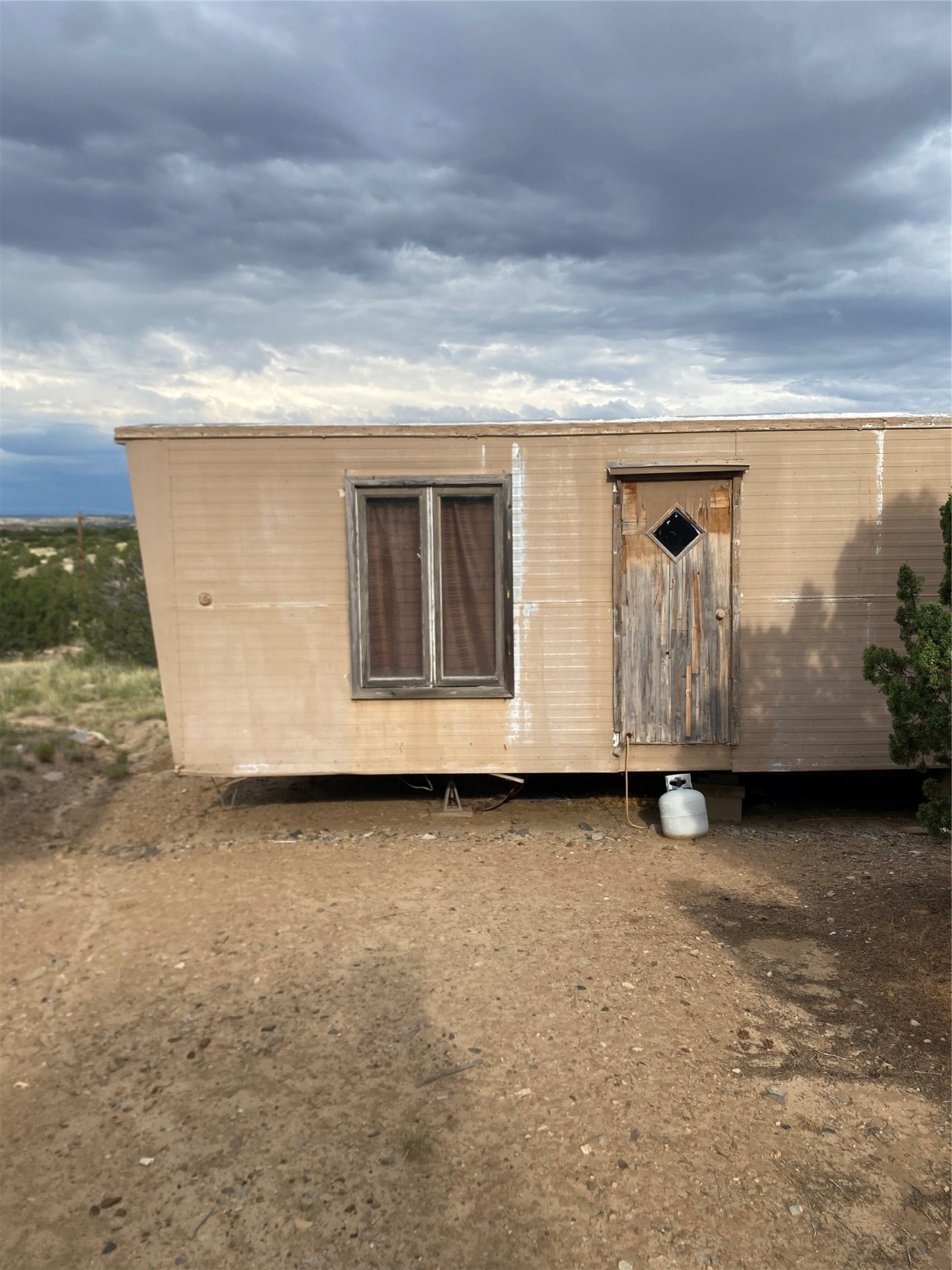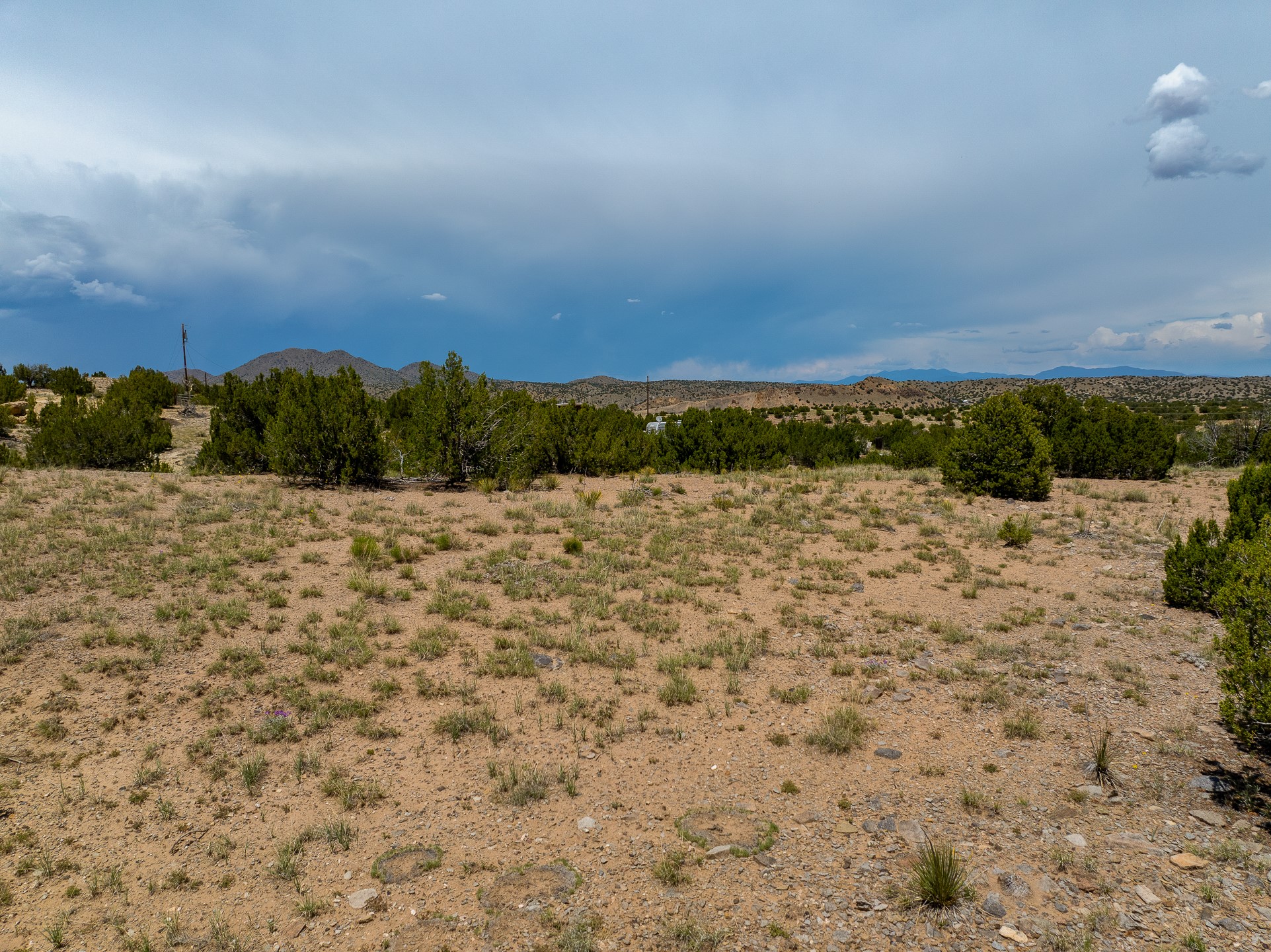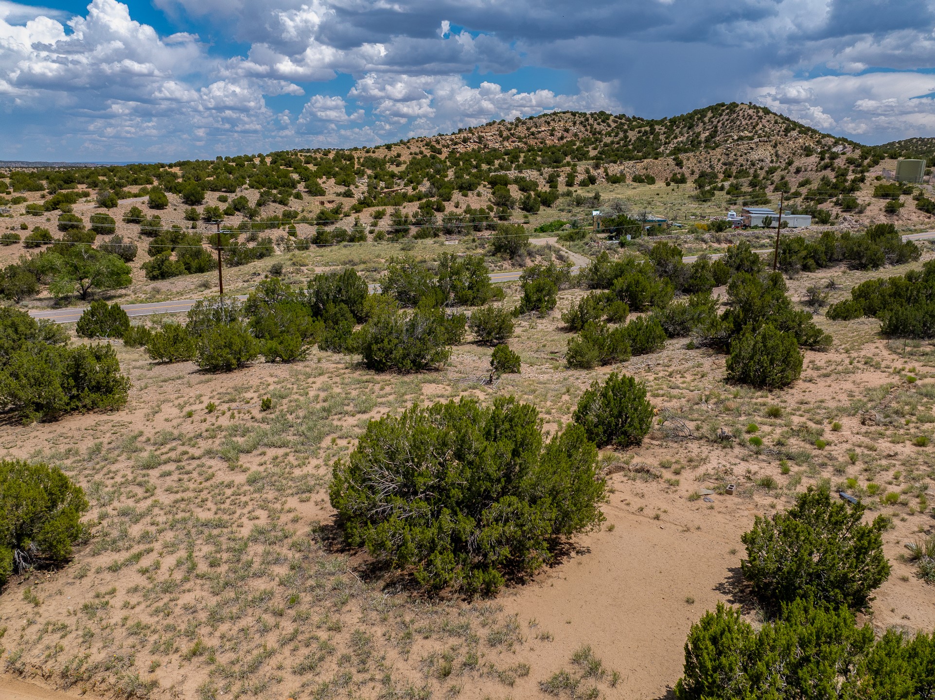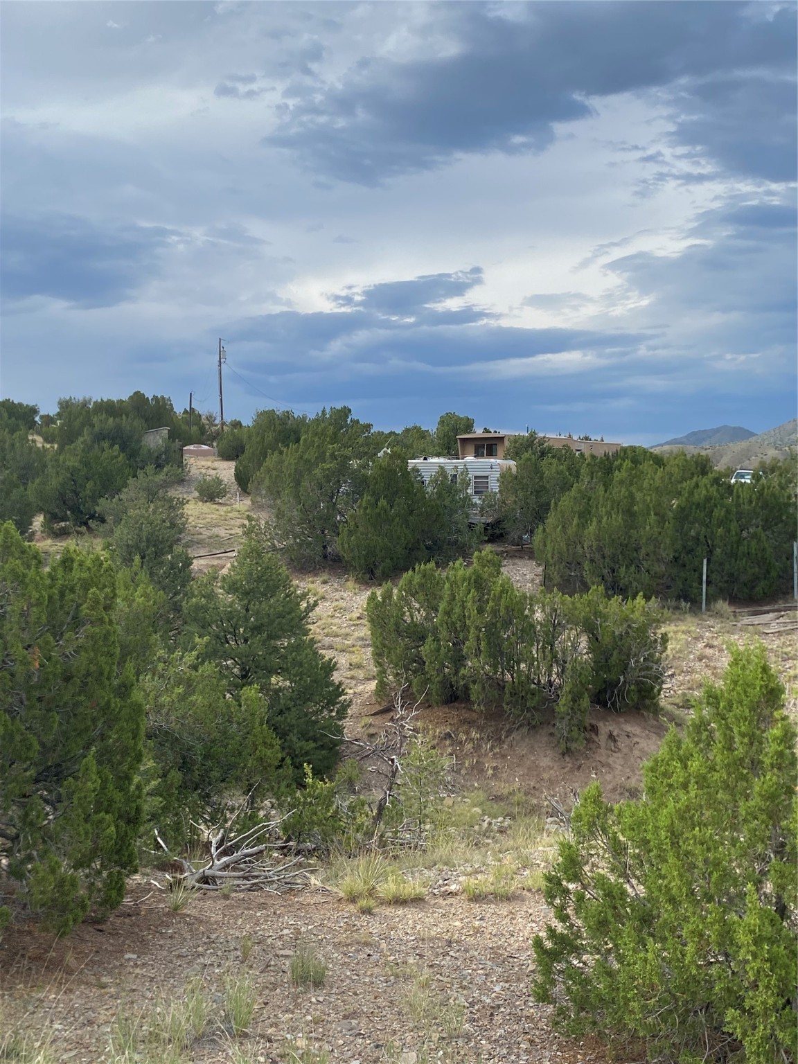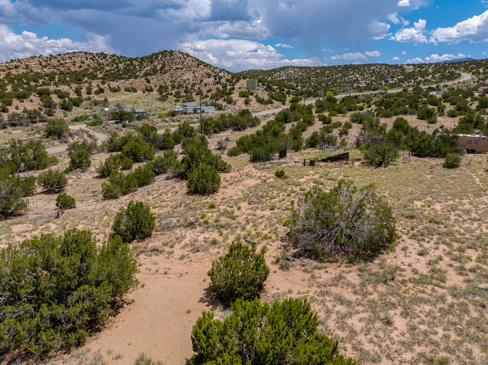 5.5 acres with water and power, adjacent to pavement on Goldmine Road. This acreage, just outside of Cerrillos, offers rolling topography with a number of potential building sites, excellent views, and country quiet. Located minutes from Cerrillos and Madrid, and just seventeen mostly highway miles from the south side of Santa Fe, the property provides room to stretch out without sacrificing convenience. Electric meter and community water on the property. Single wide, travel trailer, shed, and outhouse convey without value.