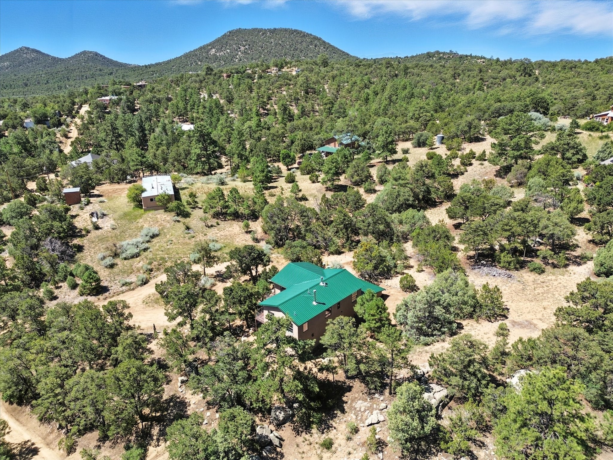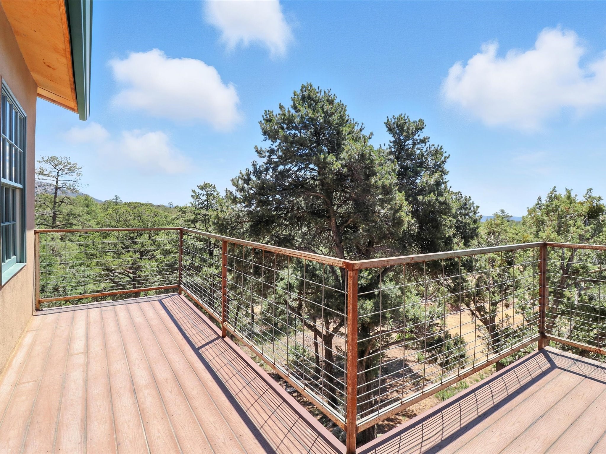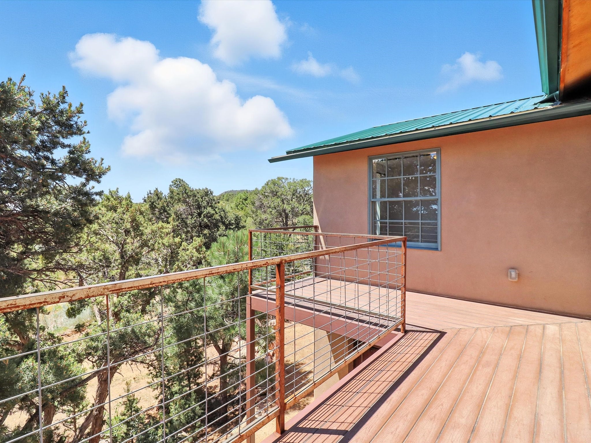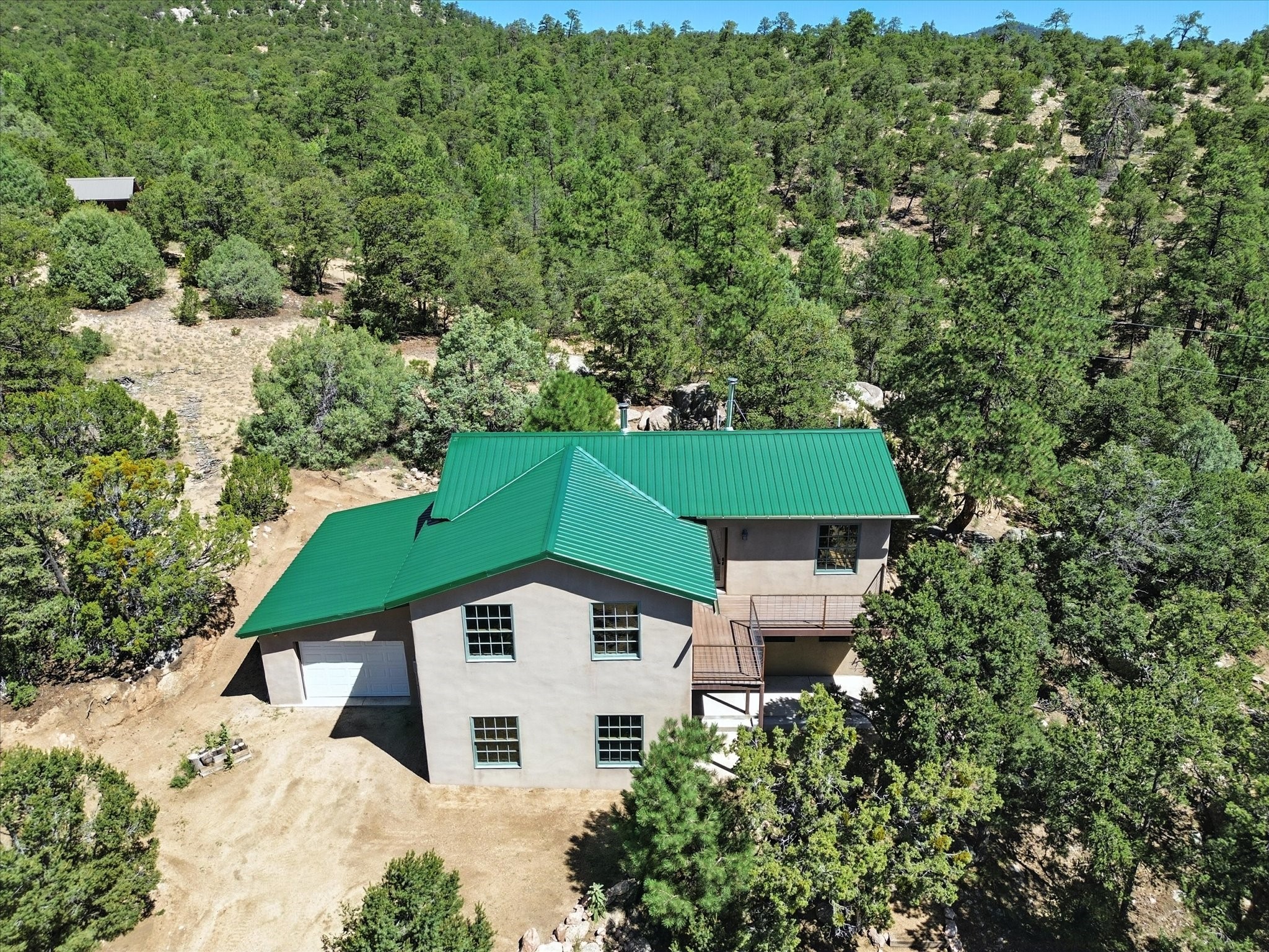 Modern Mountain Retreat Just off of Old Santa Fe Trail. A serene sanctuary nestled into the mountainside and surrounded with pines. This beautiful home offers breathtaking views of the green valley, the Shaggy Peaks and Pecos Mountains beyond--an ideal setting for those seeking peace, space, and connection with nature.With 3 spacious bedrooms and 2 full bathrooms, this home has a spacious living area perfect for relaxing, entertaining, and creating. The open-concept layout seamlessly blends the dining and kitchen spaces; all bathed in natural light from large windows that frame the stunning landscape. The kitchen is crafted for both functionality and style, making it the true heart of the home.Enjoy the comfort of a stone-tiled en-suite bath with a soaking tub and a cozy fireplace, a spacious walk-in closet, and private access to a balcony where morning coffee comes with inspiring Forest views.Each bedroom is graced with large windows that invite sunlight and forest views, while a separate laundry room upstairs adds everyday convenience. The attached garage adds to the practicality of this quiet haven, blending comfort and utility.Set in a peaceful, rural-feeling location, yet with easy access to town, 25 Calle Marisol offers the best of both worlds--tranquility and convenience. If you're seeking a lifestyle surrounded by nature, with room to breathe and views to inspire, this is your perfect place to call home.