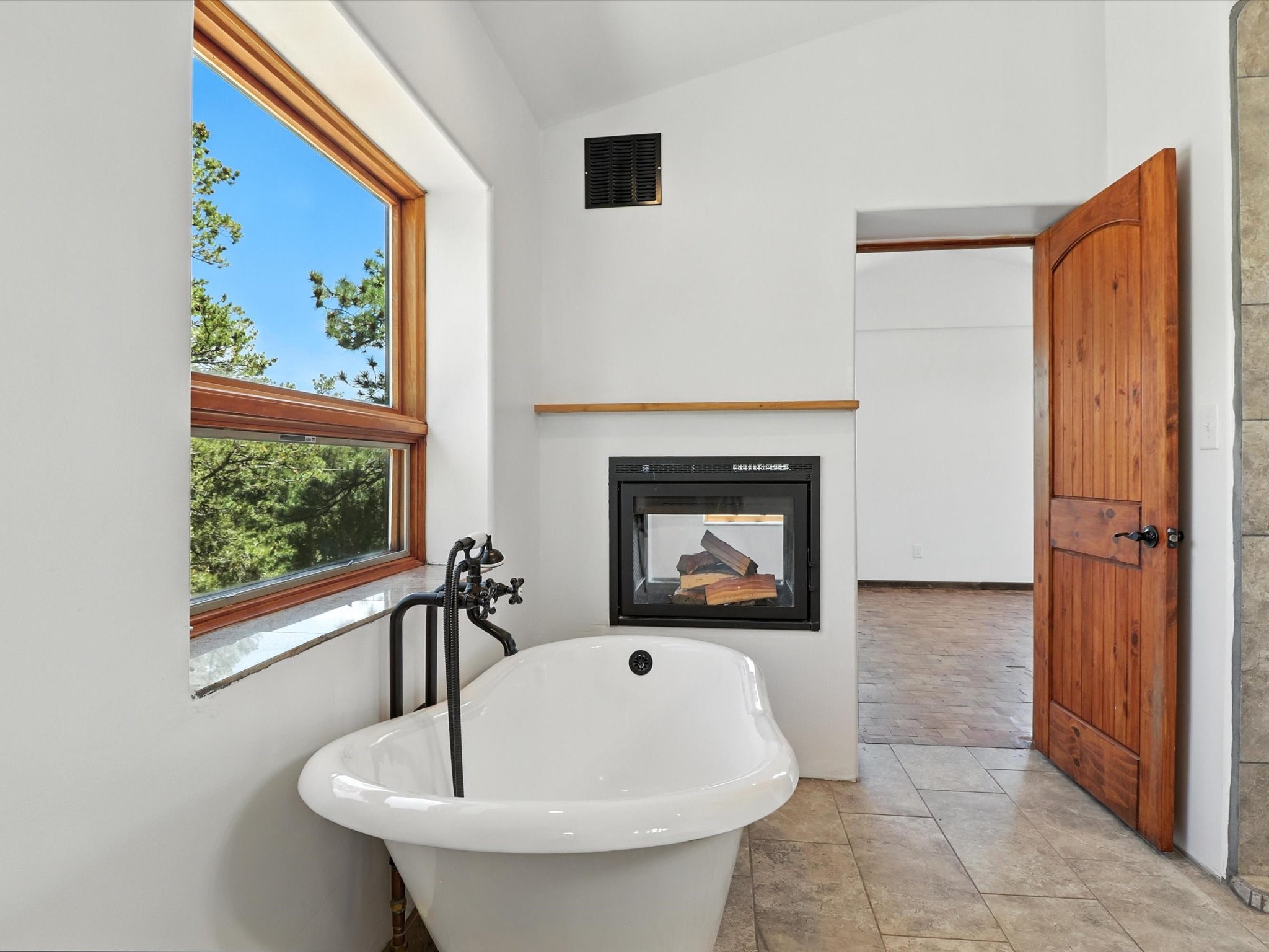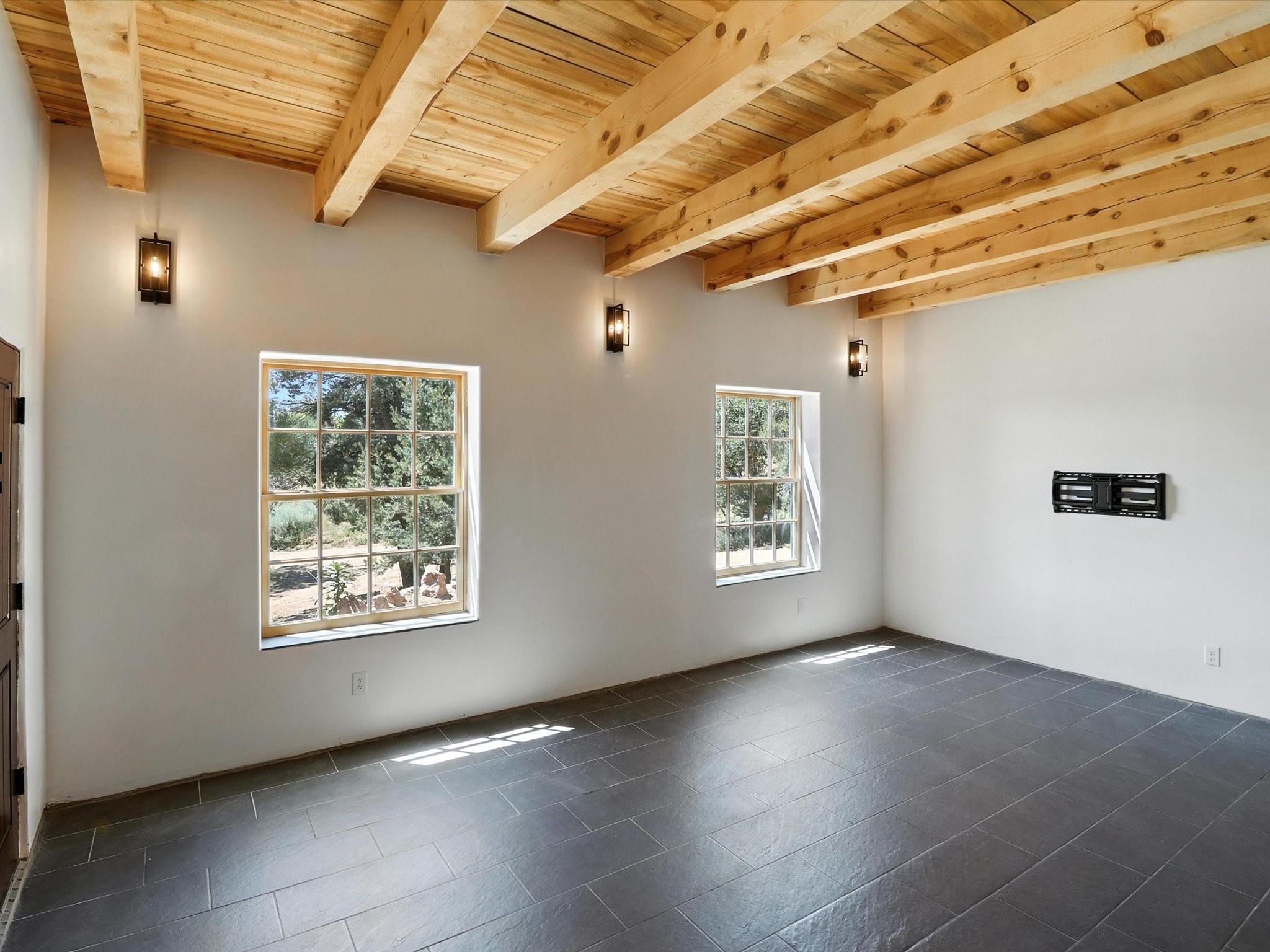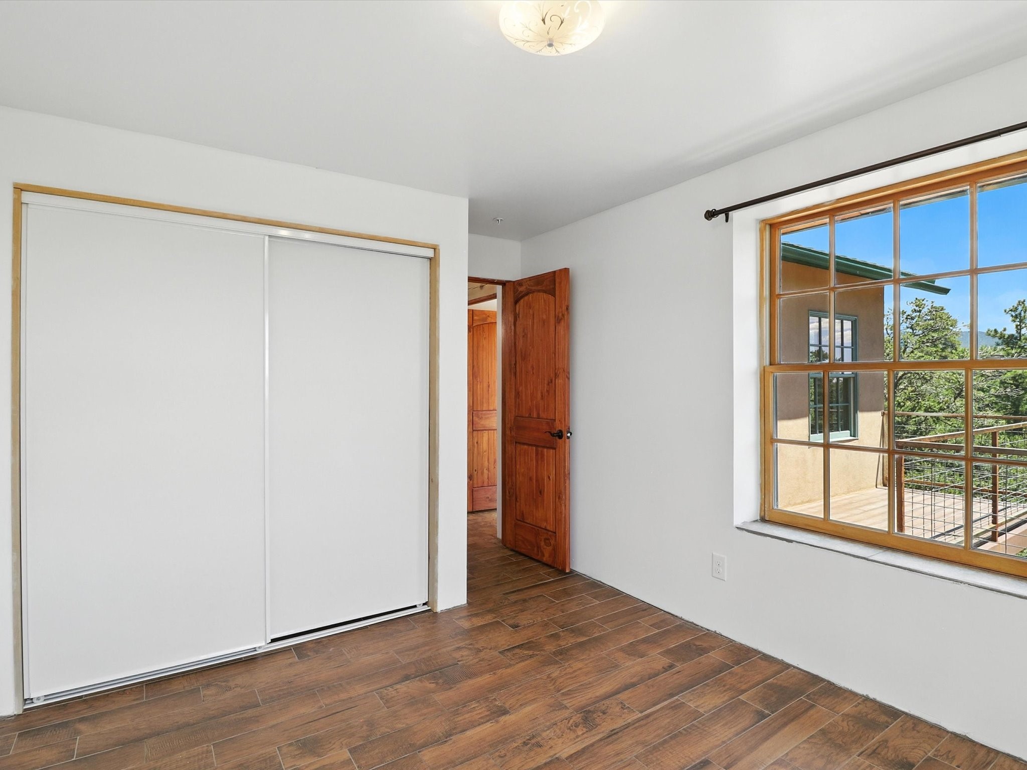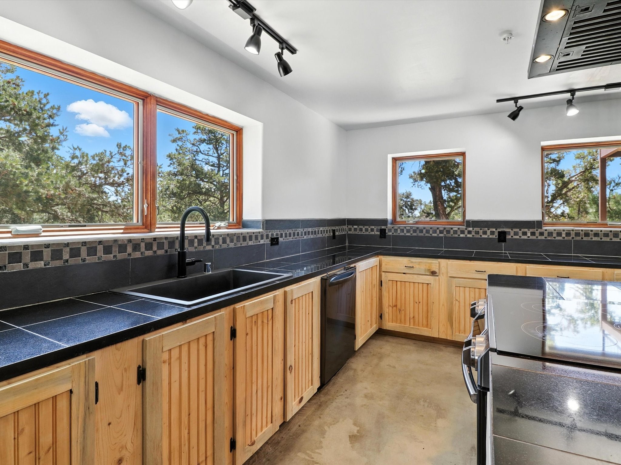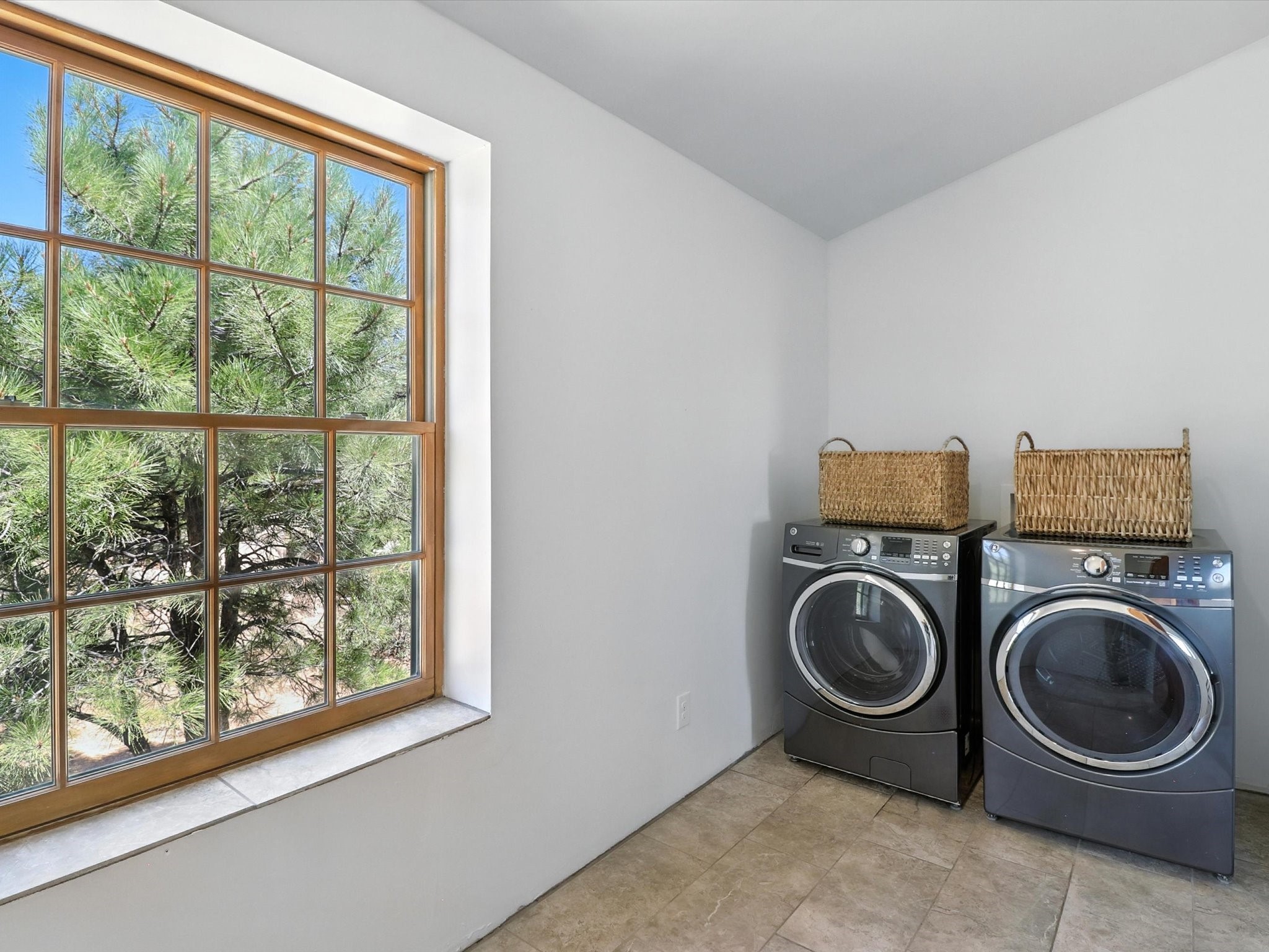 Modern Mountain Retreat Just off of Old Santa Fe Trail. A serene sanctuary nestled into the mountainside and surrounded with pines. This beautiful home offers breathtaking views of the green valley, the Shaggy Peaks and Pecos Mountains beyond--an ideal setting for those seeking peace, space, and connection with nature.With 3 spacious bedrooms and 2 full bathrooms, this home has a spacious living area perfect for relaxing, entertaining, and creating. The open-concept layout seamlessly blends the dining and kitchen spaces; all bathed in natural light from large windows that frame the stunning landscape. The kitchen is crafted for both functionality and style, making it the true heart of the home.Enjoy the comfort of a stone-tiled en-suite bath with a soaking tub and a cozy fireplace, a spacious walk-in closet, and private access to a balcony where morning coffee comes with inspiring Forest views.Each bedroom is graced with large windows that invite sunlight and forest views, while a separate laundry room upstairs adds everyday convenience. The attached garage adds to the practicality of this quiet haven, blending comfort and utility.Set in a peaceful, rural-feeling location, yet with easy access to town, 25 Calle Marisol offers the best of both worlds--tranquility and convenience. If you're seeking a lifestyle surrounded by nature, with room to breathe and views to inspire, this is your perfect place to call home.