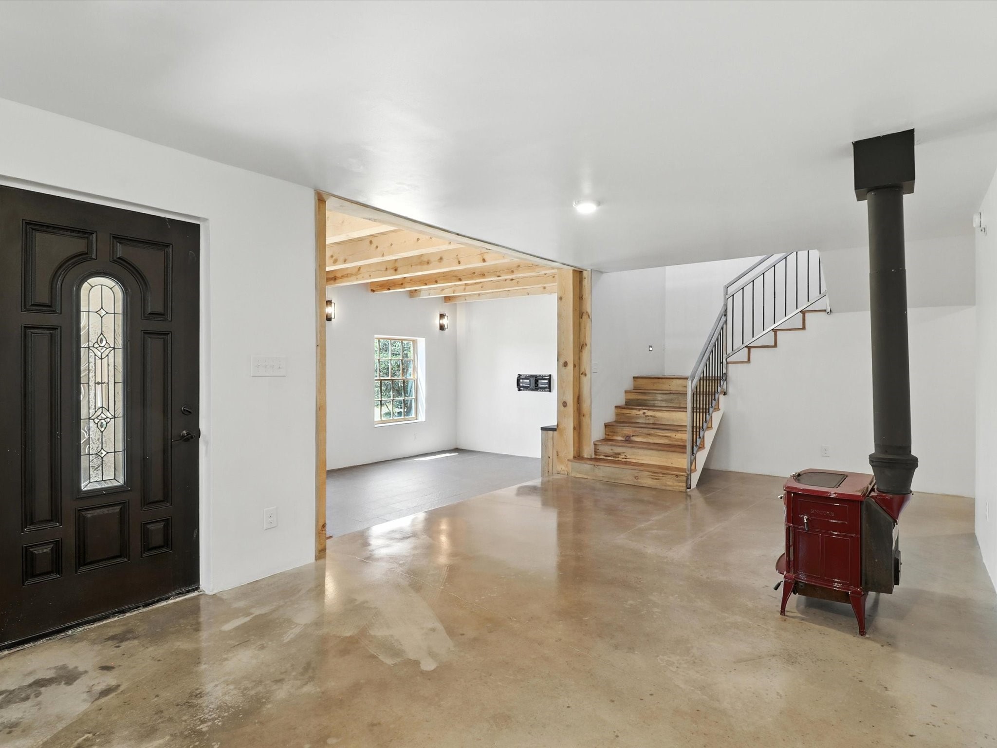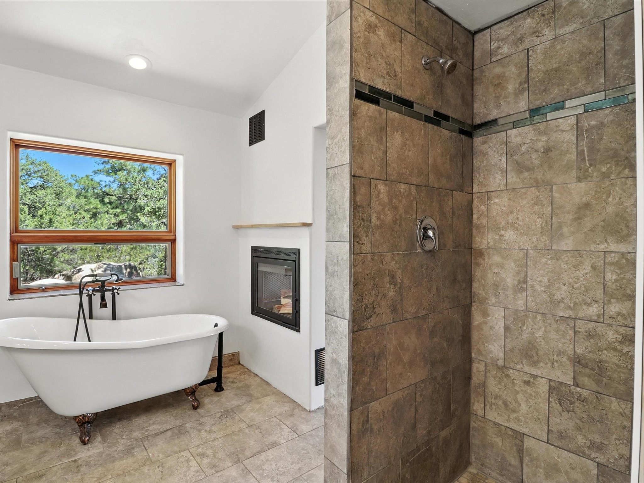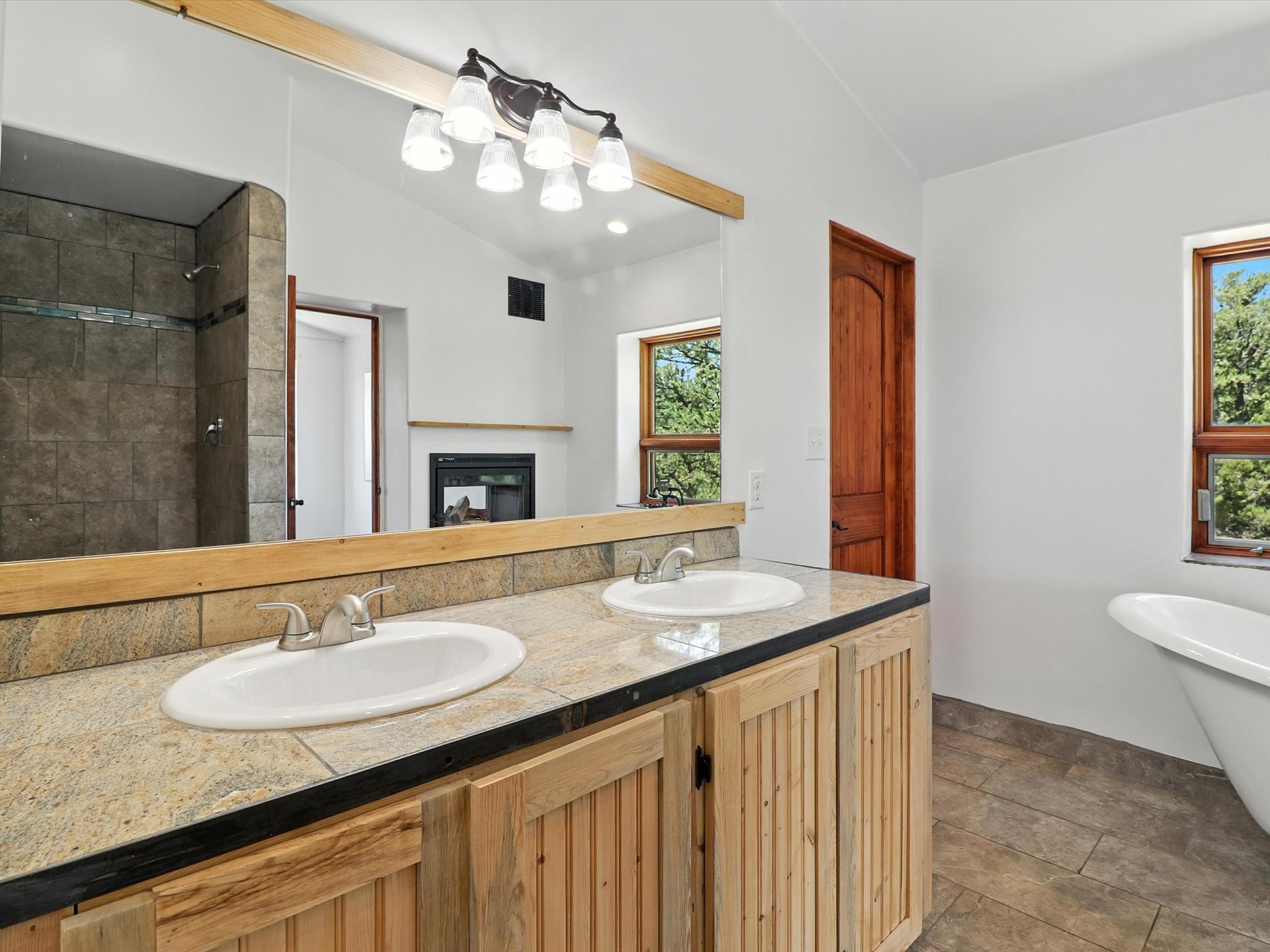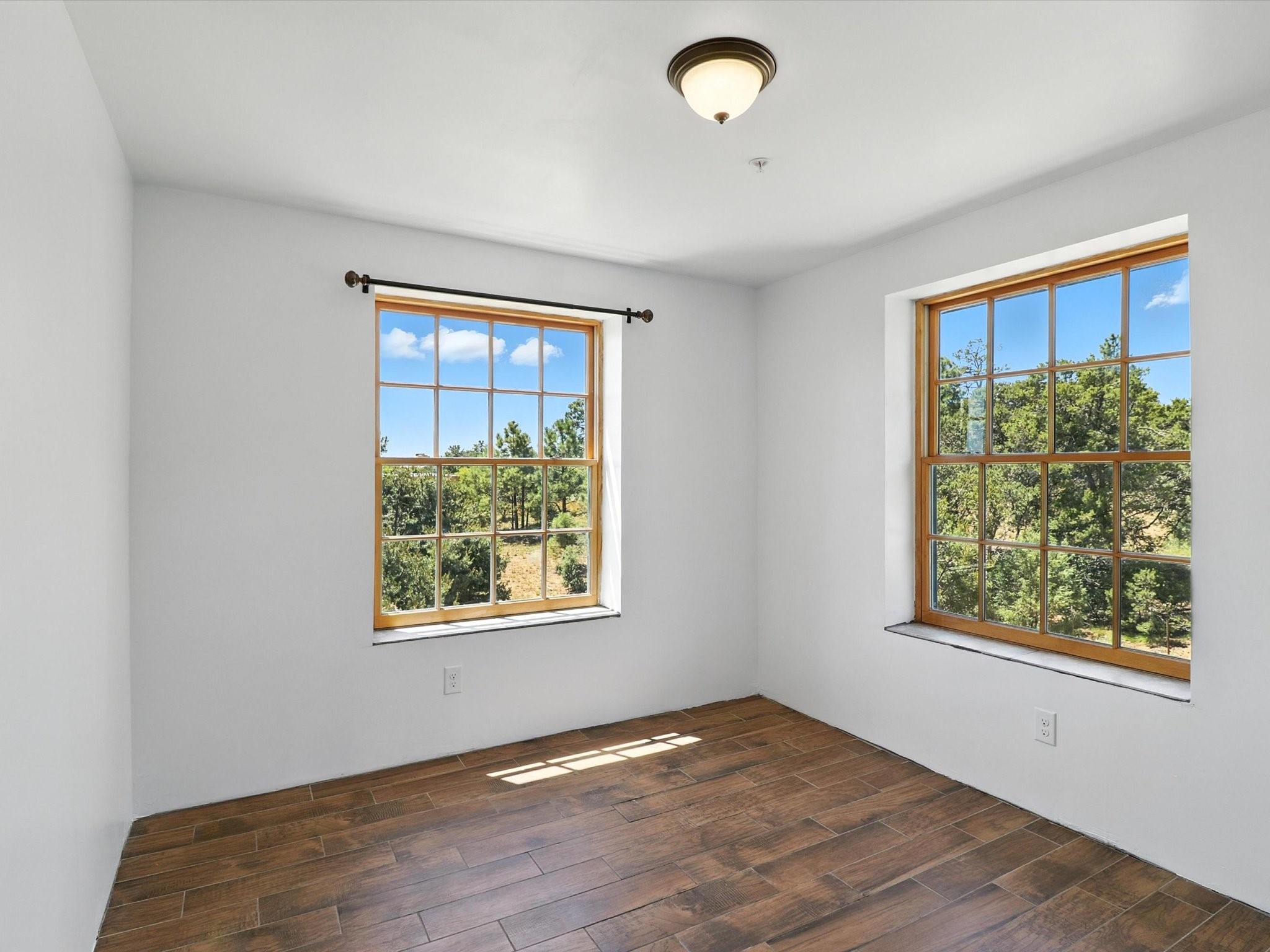 Modern Mountain Retreat Just off of Old Santa Fe Trail. A serene sanctuary nestled into the mountainside and surrounded with pines. This beautiful home offers breathtaking views of the green valley, the Shaggy Peaks and Pecos Mountains beyond--an ideal setting for those seeking peace, space, and connection with nature.With 3 spacious bedrooms and 2 full bathrooms, this home has a spacious living area perfect for relaxing, entertaining, and creating. The open-concept layout seamlessly blends the dining and kitchen spaces; all bathed in natural light from large windows that frame the stunning landscape. The kitchen is crafted for both functionality and style, making it the true heart of the home.Enjoy the comfort of a stone-tiled en-suite bath with a soaking tub and a cozy fireplace, a spacious walk-in closet, and private access to a balcony where morning coffee comes with inspiring Forest views.Each bedroom is graced with large windows that invite sunlight and forest views, while a separate laundry room upstairs adds everyday convenience. The attached garage adds to the practicality of this quiet haven, blending comfort and utility.Set in a peaceful, rural-feeling location, yet with easy access to town, 25 Calle Marisol offers the best of both worlds--tranquility and convenience. If you're seeking a lifestyle surrounded by nature, with room to breathe and views to inspire, this is your perfect place to call home.