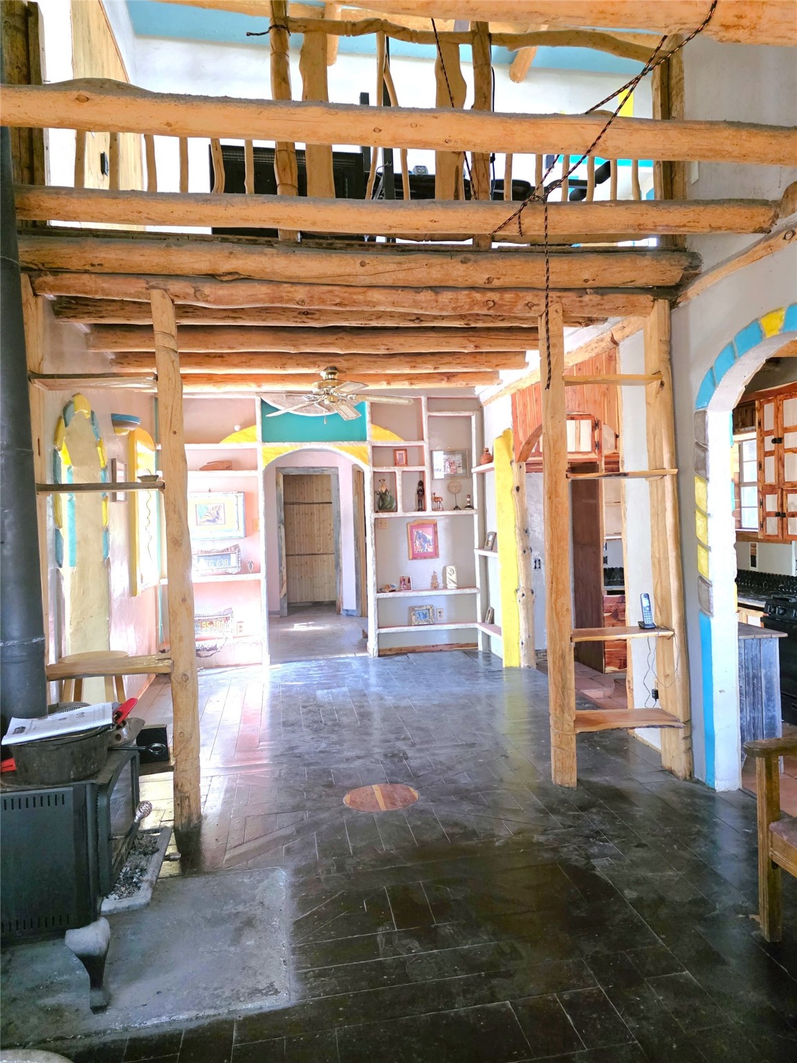 Experience the lush Sherwood Forest Subdivision in Torreon, NM! This carefully crafted 2-Bedroom 1-Bath home sits on nearly half an acre surrounded by tranquil forest. This property is ideal as a mountain getaway / retreat or as a primary residence! Enjoy the warmth of the kiva fireplace downstairs, a large primary bedroom and landing / loft upstairs. This home is spacious with a living area and den. Enjoy the detached carport coupled with two attached spaces for additional storage. An open deck overlooks the spacious backyard with a large pond. This home has mountains of potential, come and make it yours today!