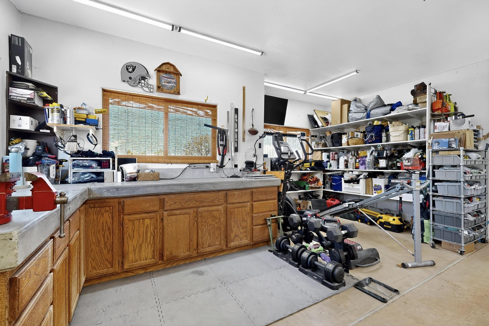 Priced to Sell! Wonderful passive solar trilevel design nestled on a hilltop with decks and a lighted gazebo enjoy the sweeping Sangre's and Pecos mountain views. A flexible floorpan with the owners suite, kitchen, dining and living areas on the main level. A TV / family room, and an office upstairs with a view deck. A walk out lower level includesl 2 guest bedrooms, a full bath and laundry. The 36' x 29' heated garage also has a workshop and storage room. In 2023 the stucco and roof were replaced, 3 Bosch mini splits added, a new tankless hot water heater, plus new windows and storm doors. 2 trex/wood decks, rain downspouts and the kitchen appliances. In 2024 the well pump was replaced, and there is a 1500 gallon underground cistern. The underground 500 gallon propane tank is owned, the hot tub is ready with fabulous views. All this on 5 acres, No HOA, horses and chickens welcome, only minutes to Eldorado area local shopping and services, or into historic Santa Fe.