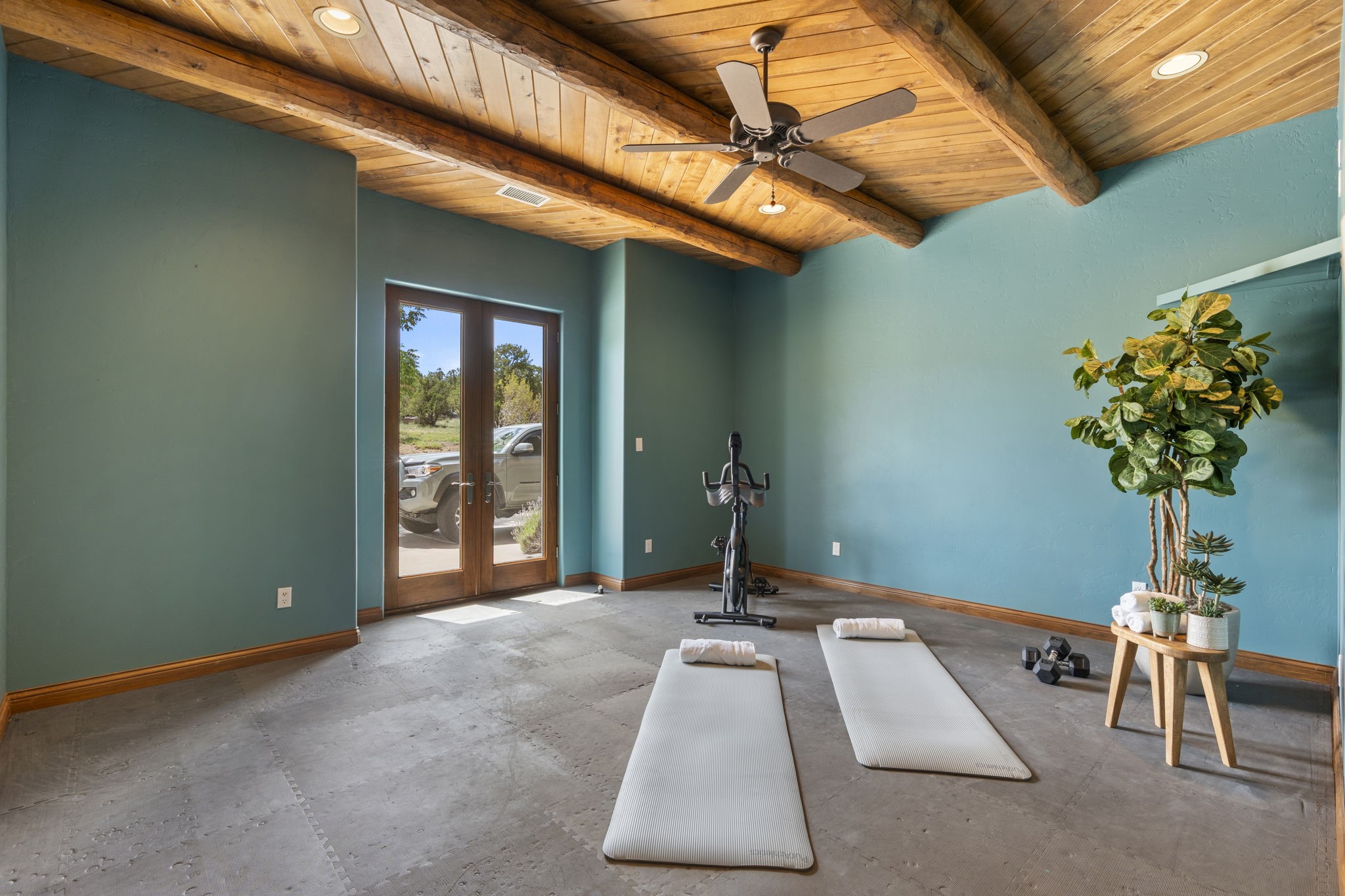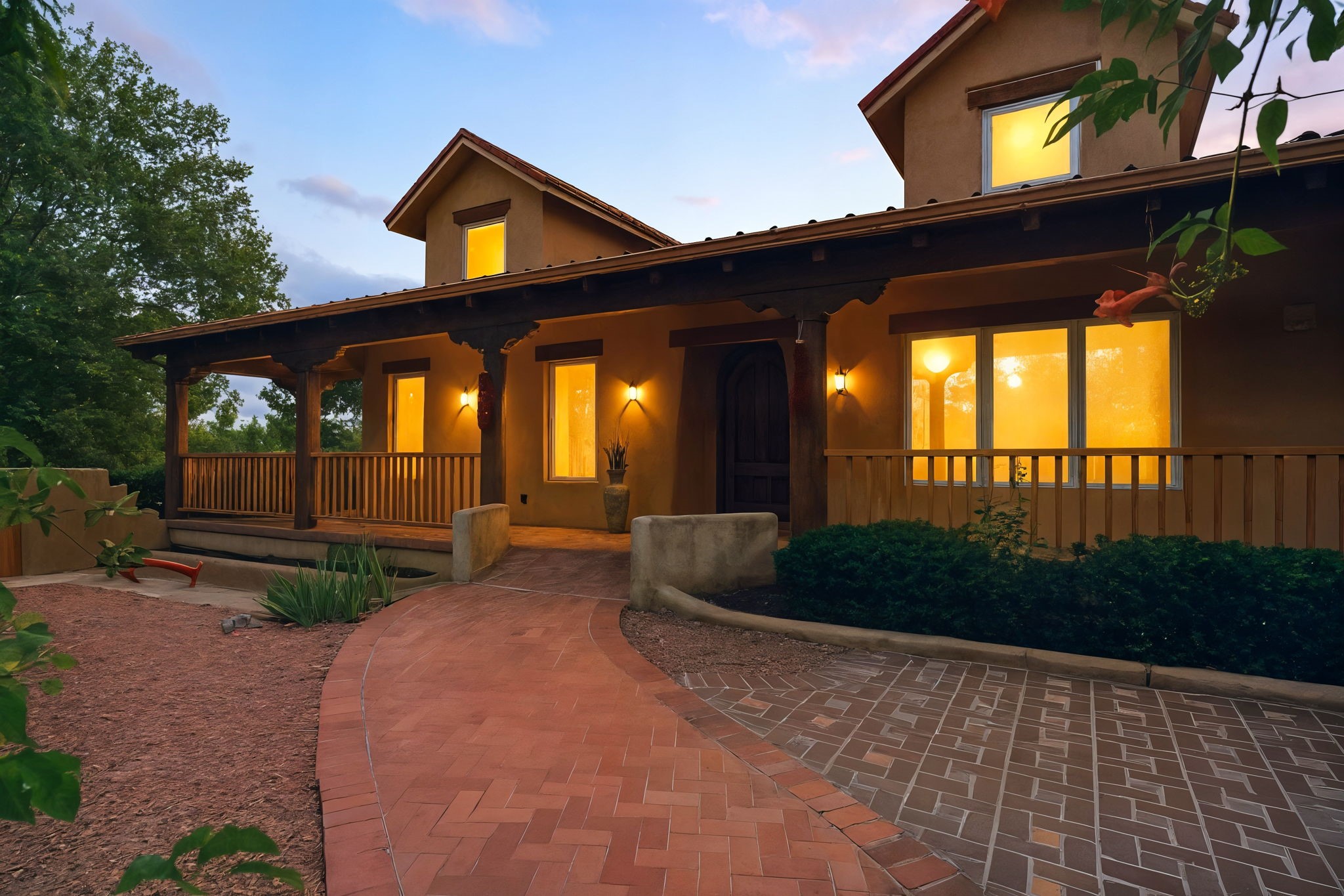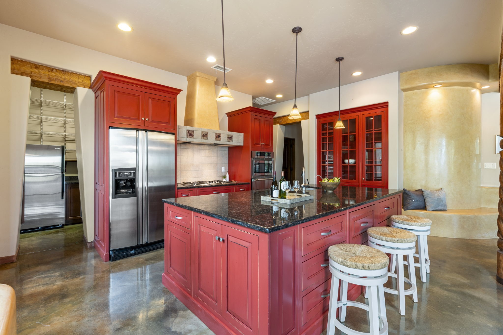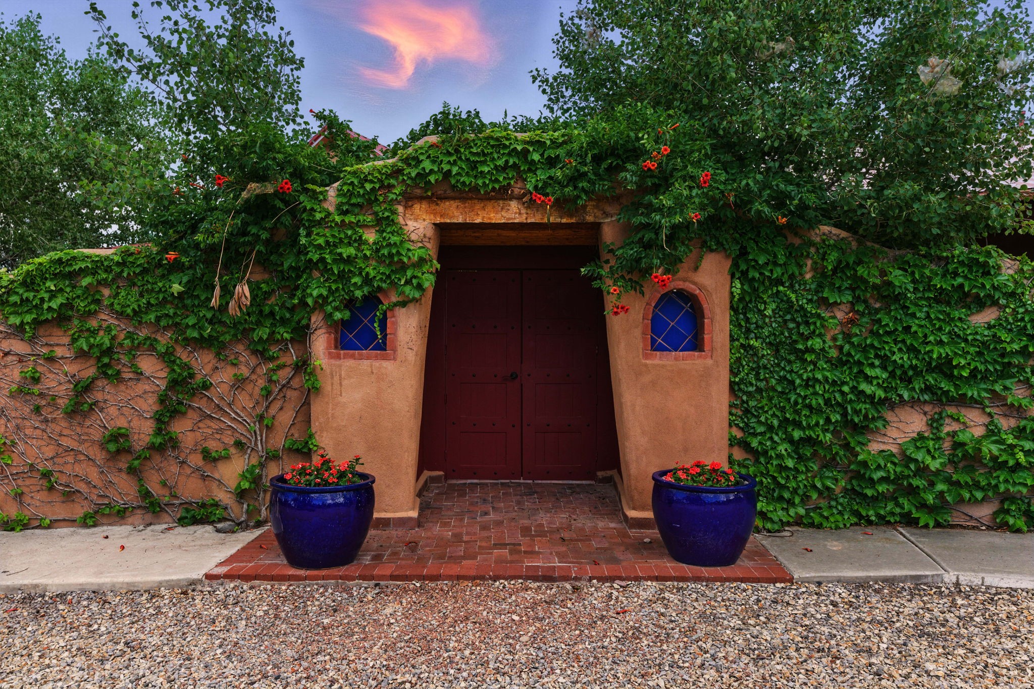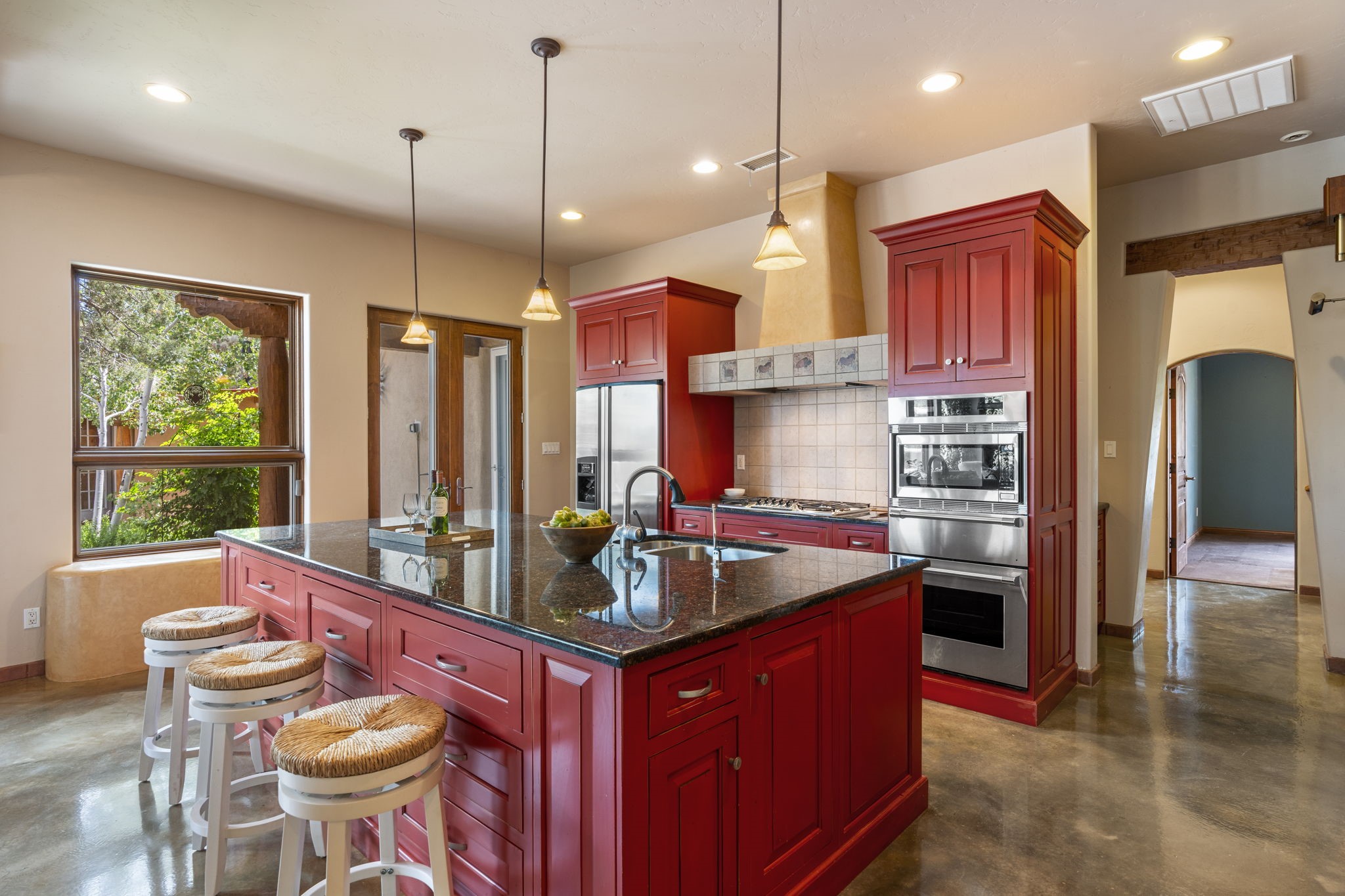 Artistic Mountain Home set on 10.14 private acres in San Pedro Creek, this distinctive 4 bedroom, 4 bath home is a true work of art- blending traditional Northern New Mexican design with creative, custom craftsmanship throughout. Built to inspire, the residence features expansive open-concept living with polished concrete floors, a dual-sided fireplace connecting the living and library areas, and large windows that frame panoramic views of ridges and endless skies. The kitchen is warm and welcoming, with artisanal cabinetry, handcrafted tile, and a layout that encourages gathering and creativity. The home features two separate bathrooms and walk-in closets within the primary bedroom making this space truly one of a kind! As you walk through, you'll be surrounded by beauty from thehand-painted murals, handmade tiles, and natural materials create a rich, organic feel throughout- tied with sleek modern touches in the tankless, wall-hung toilets and the zero entry showers. The office and a separate library offer quiet spaces for work or reading, while the light-filled attic studio is ideal for artists, writers, or anyone seeking a peaceful retreat above the trees. Outdoor living is just as intentional as the interior with all rooms having their own entrance to the exterior- leading to multiple patios and seating areas including an outdoor fireplace and a separate firepit, perfect for stargazing, storytelling, and cool desert evenings. A charming potting shed supports gardening and outdoor projects. The land offers room to roam, with space for gardens, or simply quiet observation of the surrounding wildlife and native flora. Schedule your private showing today!