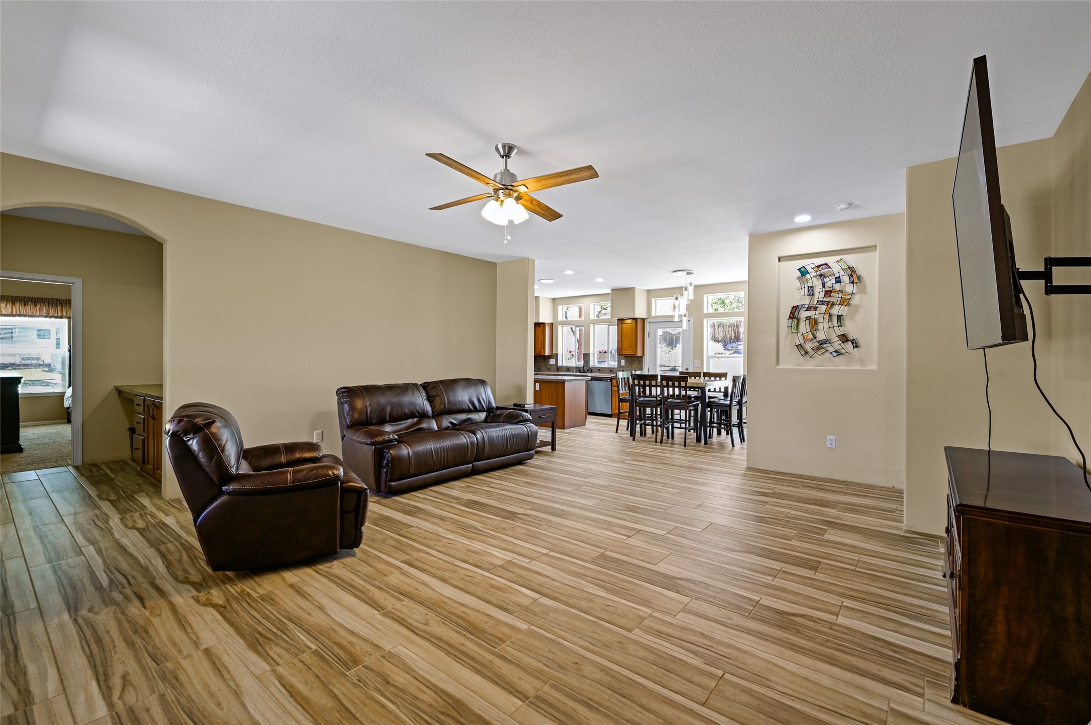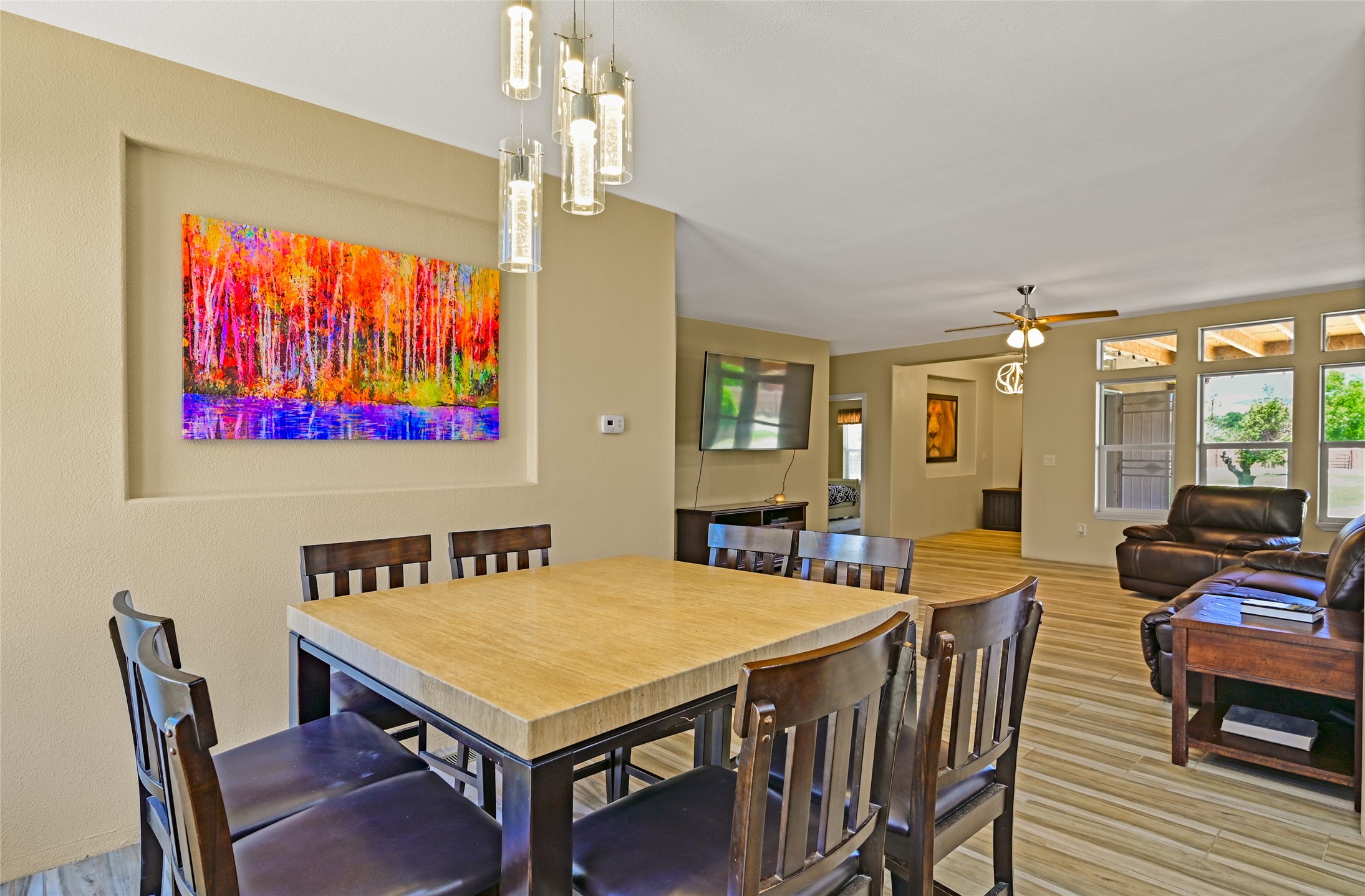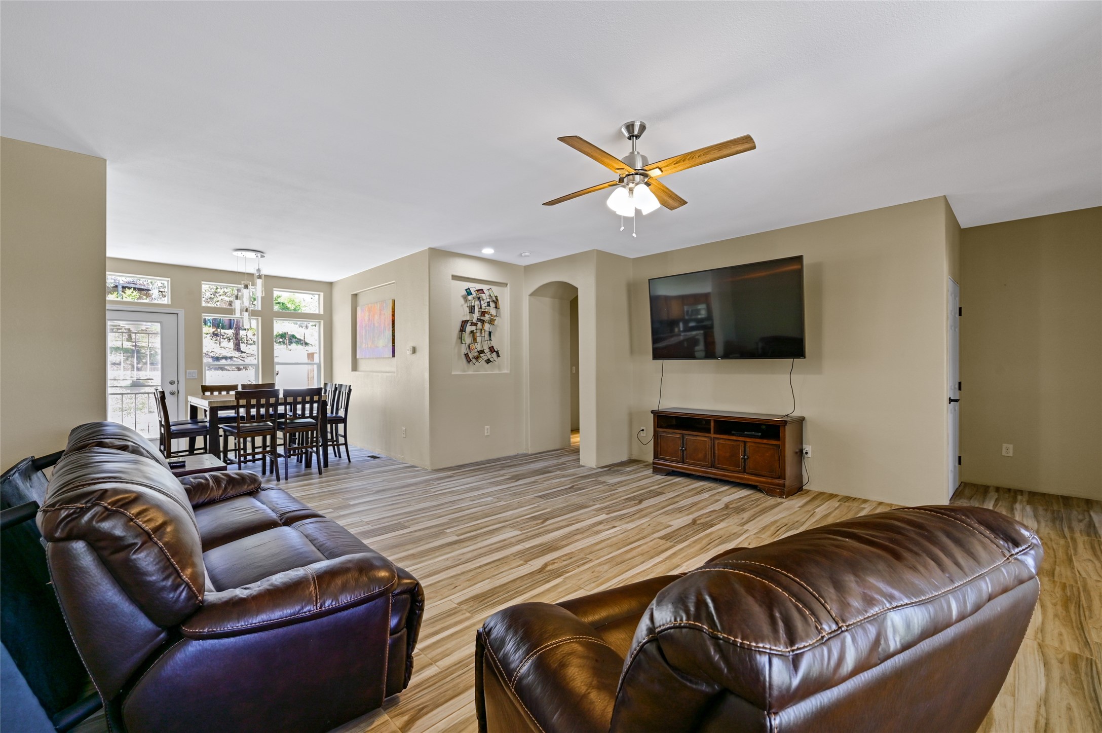 This beautifully maintained home is PRICED BELOW APPRAISED VALUE. Single-level home in a great location. Quiet neighborhood with wide-open views that capture the serenity of Northern New Mexico, filled with natural light, creating a bright and airy feel throughout. The open-concept living and dining areas feature modern finishes--perfect for everyday comfort and entertaining. At the heart of the home is a thoughtfully designed kitchen, complete with stainless steel appliances, rich wood cabinetry, an island, and windows that frame the tranquil landscape. The generous lot offers endless potential. Embrace the stunning skies and natural beauty that define Northern New Mexico living. WILLING TO ACCEPT REASONABLE OFFERS
