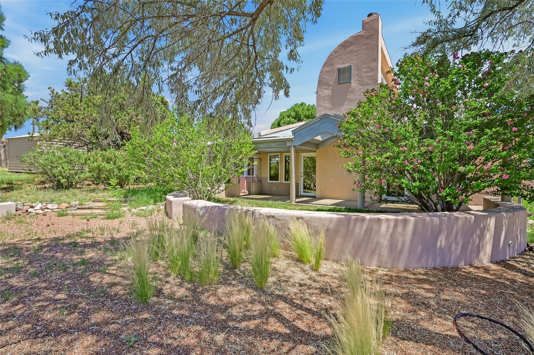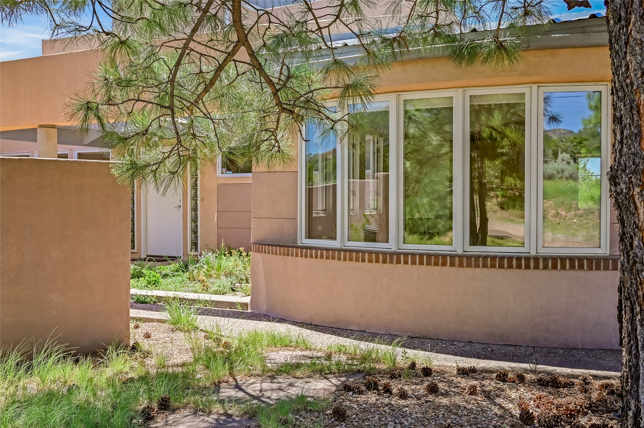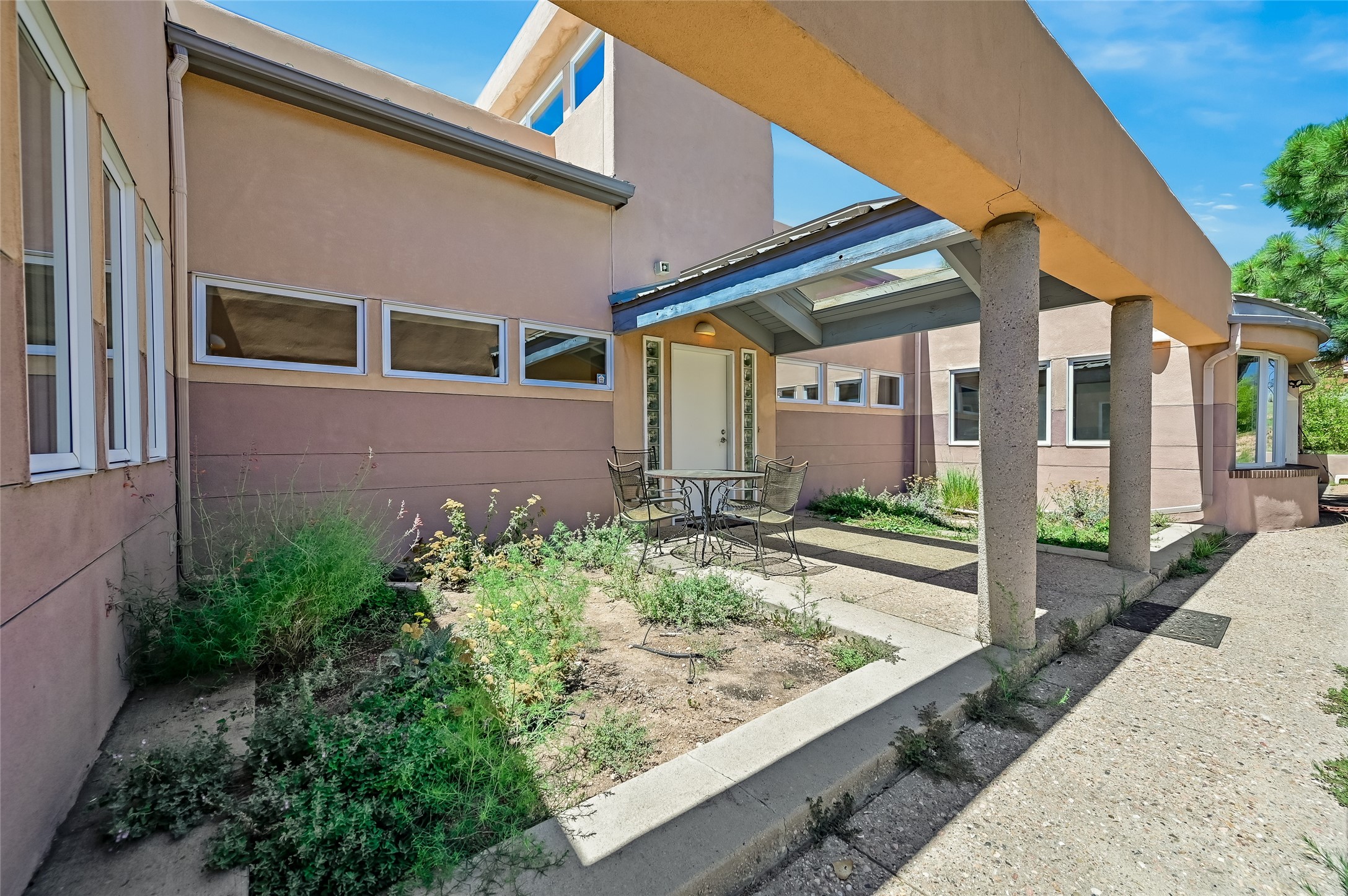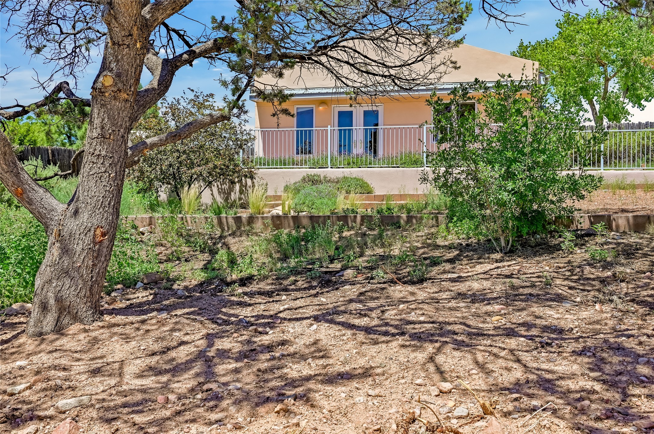 Income-producing property just 15 minutes from Downtown Santa Fe (3 mins. to St. Vincent's, close to shopping and the Rail Runner). Situated on a private 1-acre lot, this unique compound features a 3-bedroom main house designed with passive solar principles. The fully detached 2-bedroom guest house has its own entrance, kitchen, and bath-ideal for rentals, a guest suite, studio, or private office. Mature trees surround both homes, providing peace, privacy, and scenic beauty. The sustainability, and potential. Perfect for investors or multigenerational living