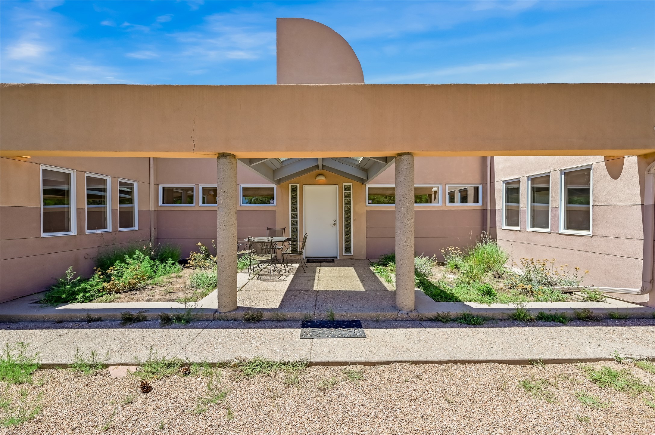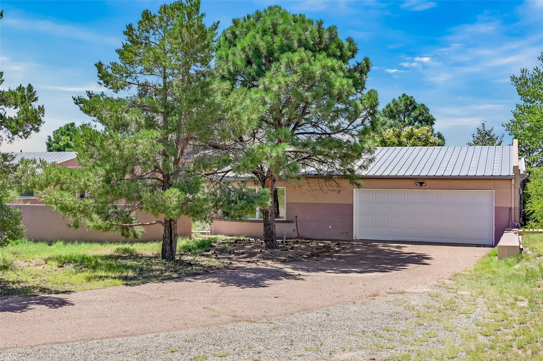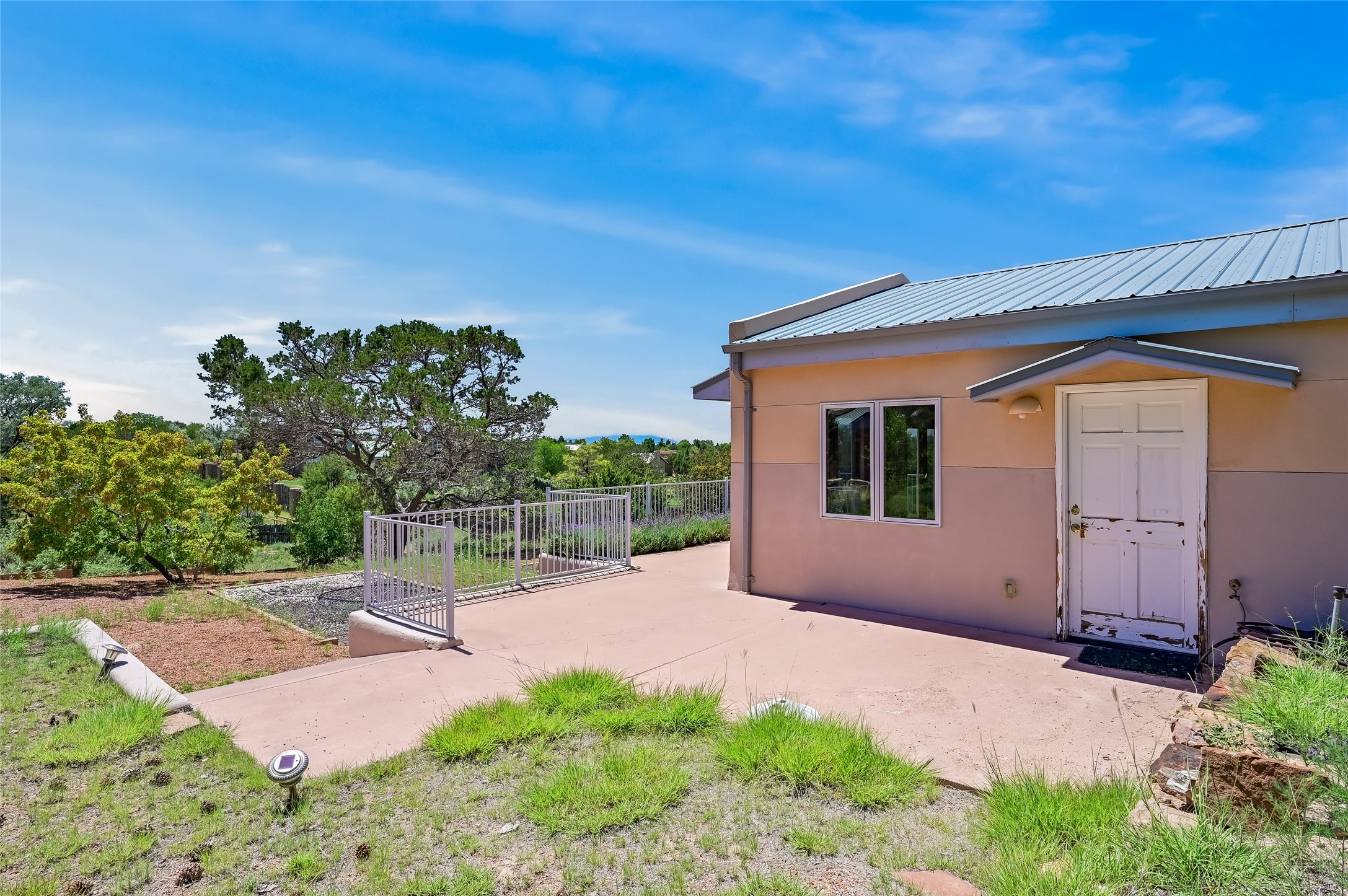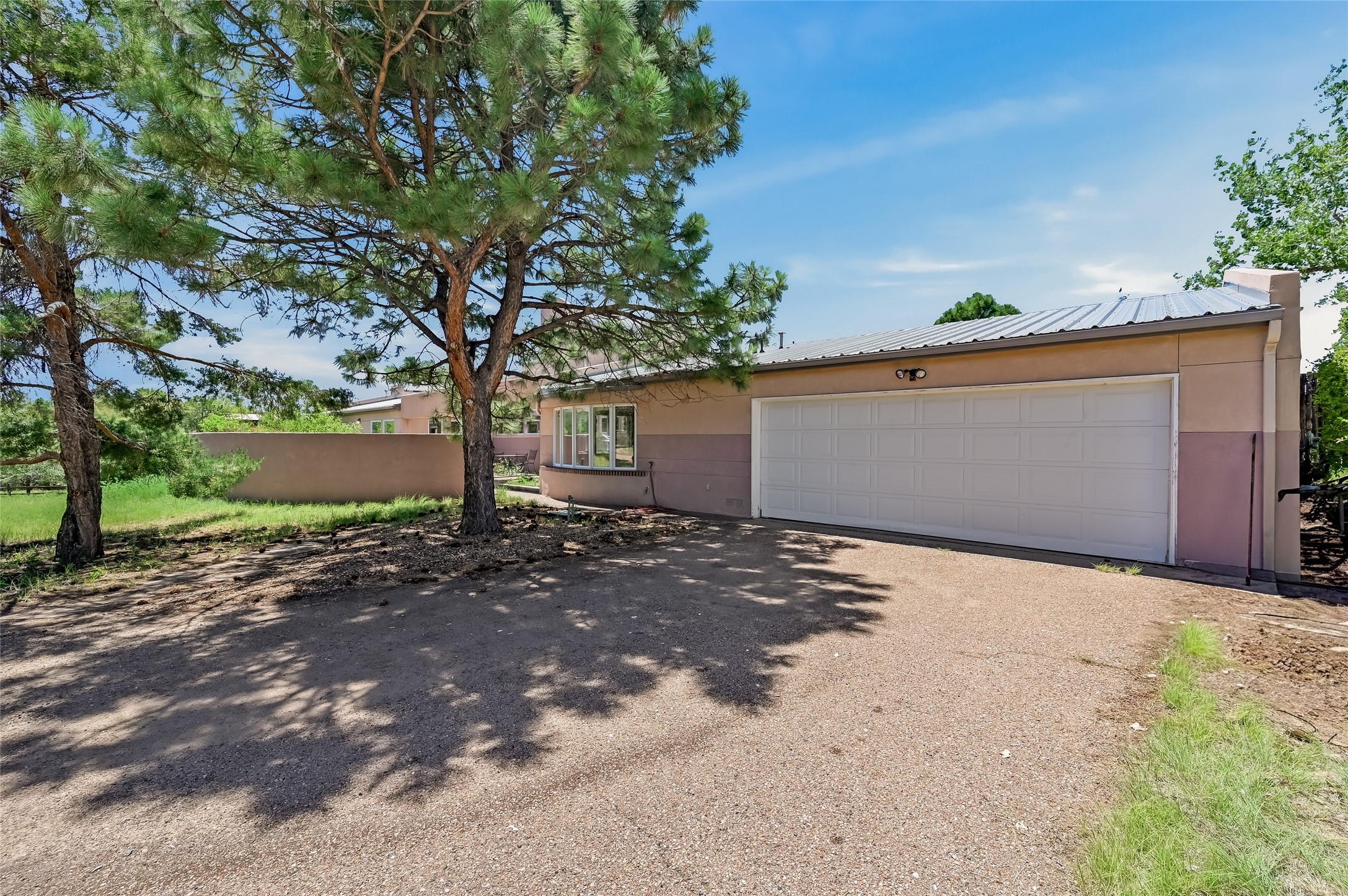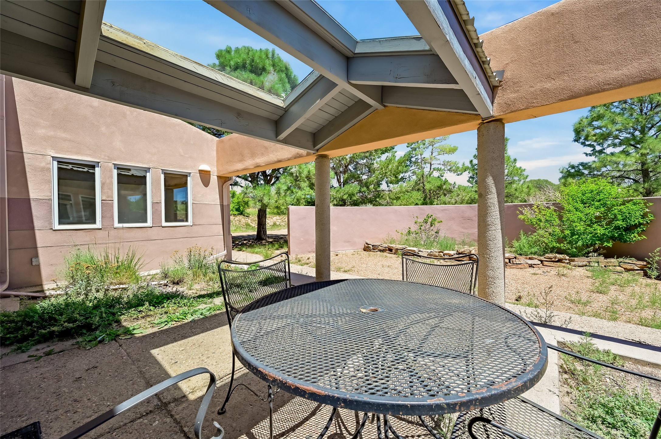 Income-producing property just 15 minutes from Downtown Santa Fe (3 mins. to St. Vincent's, close to shopping and the Rail Runner). Situated on a private 1-acre lot, this unique compound features a 3-bedroom main house designed with passive solar principles. The fully detached 2-bedroom guest house has its own entrance, kitchen, and bath-ideal for rentals, a guest suite, studio, or private office. Mature trees surround both homes, providing peace, privacy, and scenic beauty. The sustainability, and potential. Perfect for investors or multigenerational living