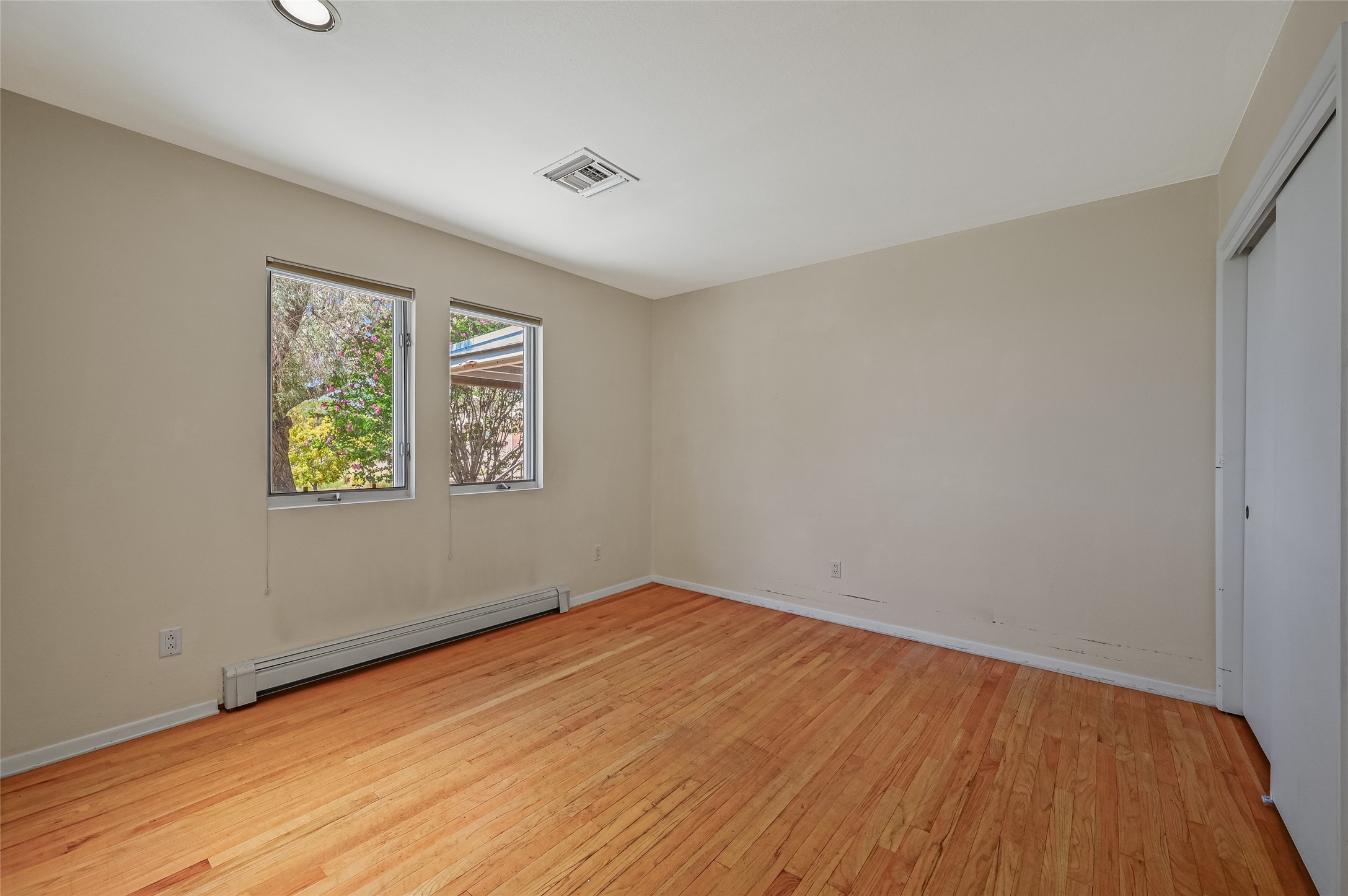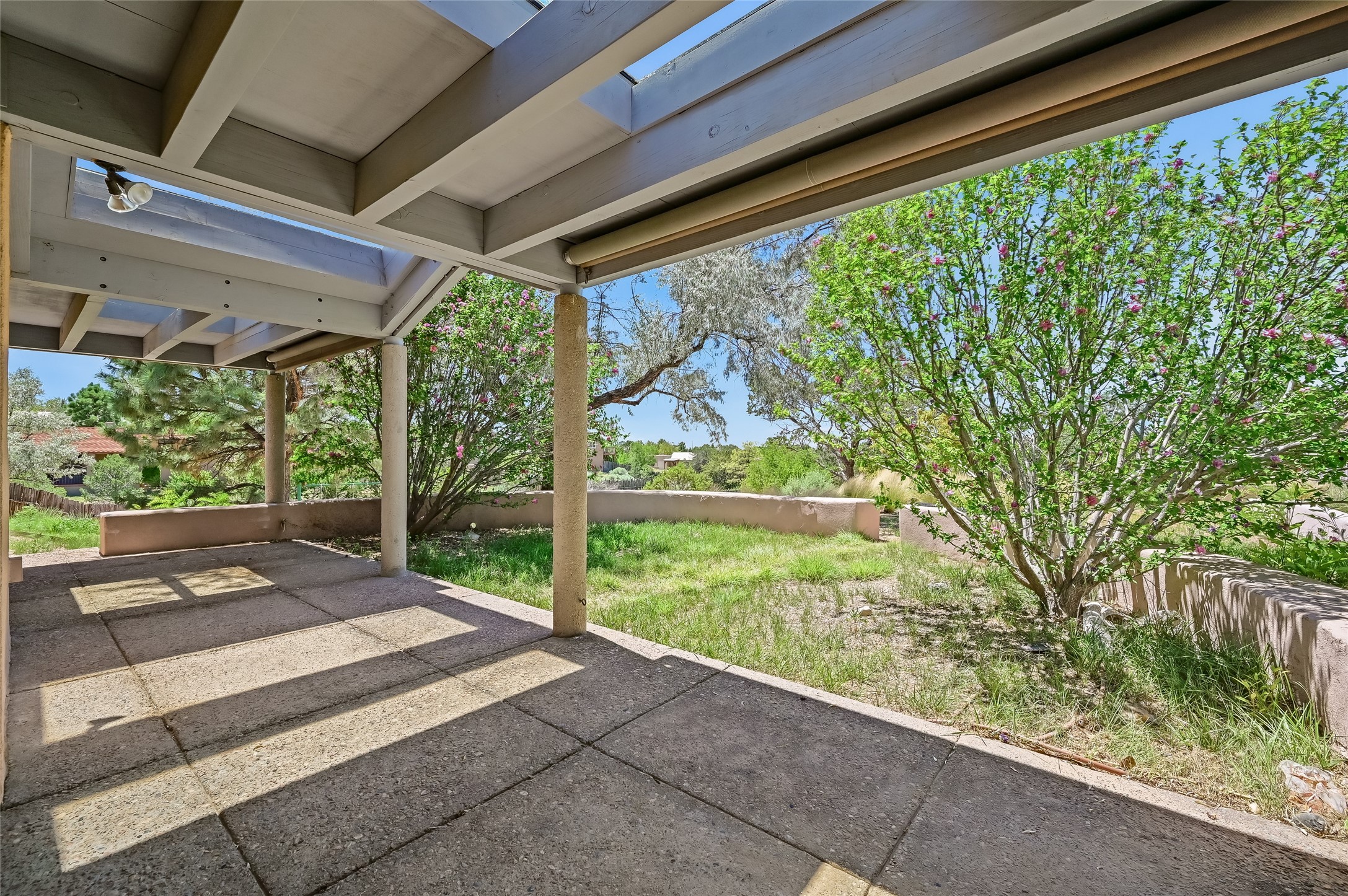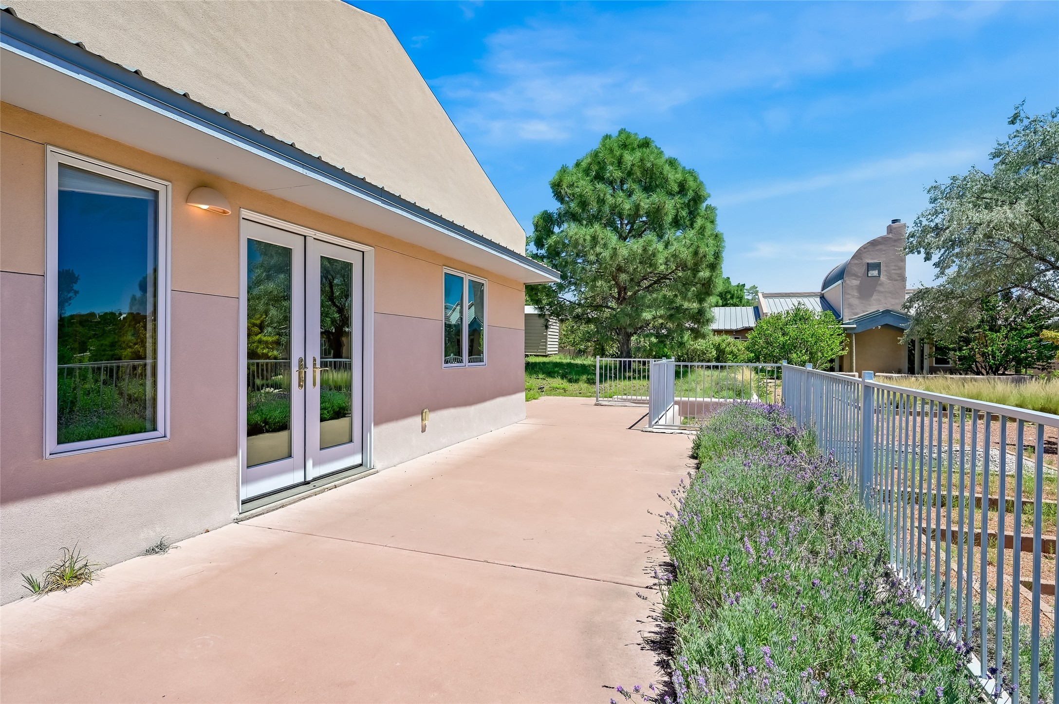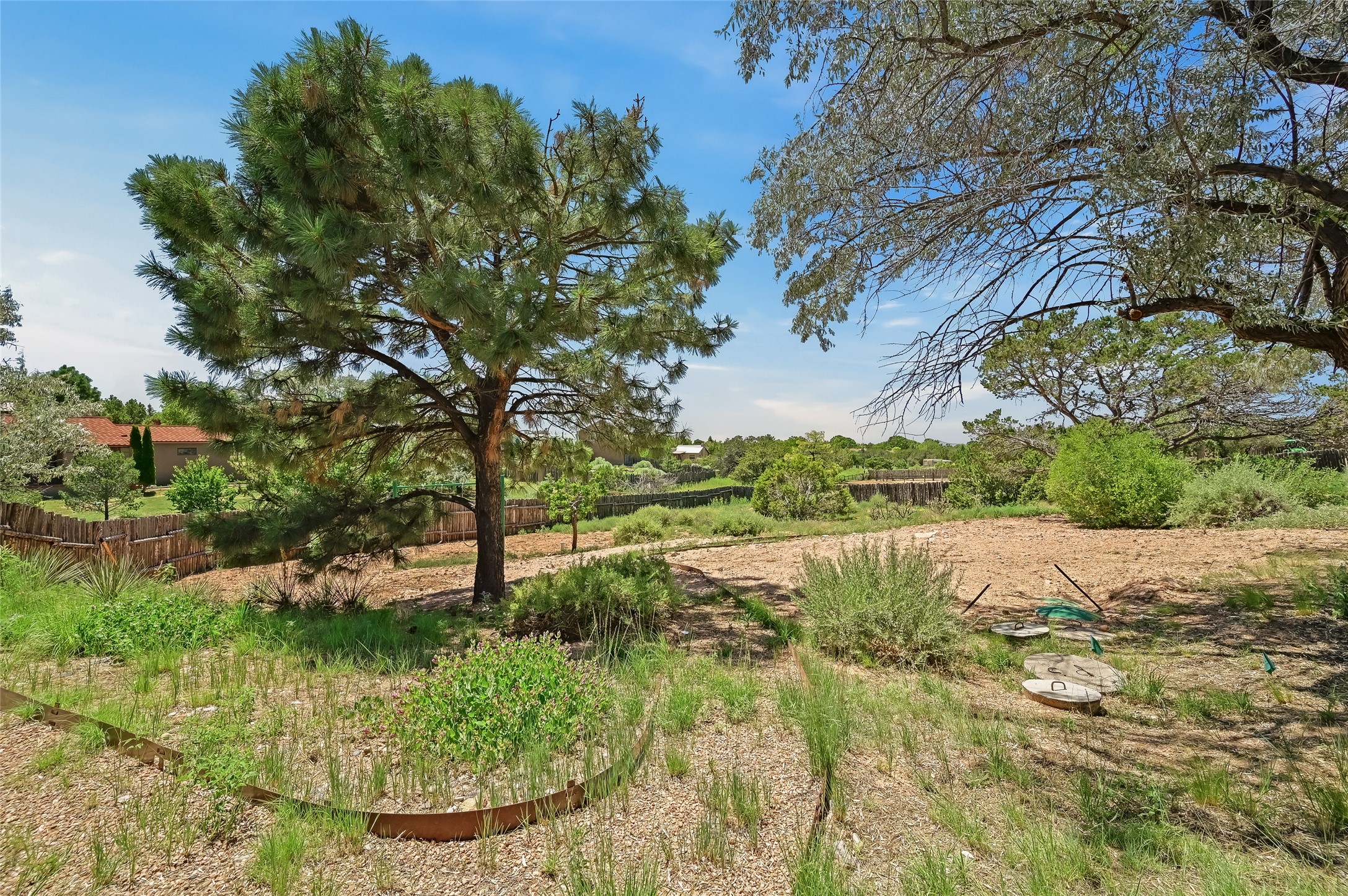 Income-producing property just 15 minutes from Downtown Santa Fe (3 mins. to St. Vincent's, close to shopping and the Rail Runner). Situated on a private 1-acre lot, this unique compound features a 3-bedroom main house designed with passive solar principles. The fully detached 2-bedroom guest house has its own entrance, kitchen, and bath-ideal for rentals, a guest suite, studio, or private office. Mature trees surround both homes, providing peace, privacy, and scenic beauty. The sustainability, and potential. Perfect for investors or multigenerational living