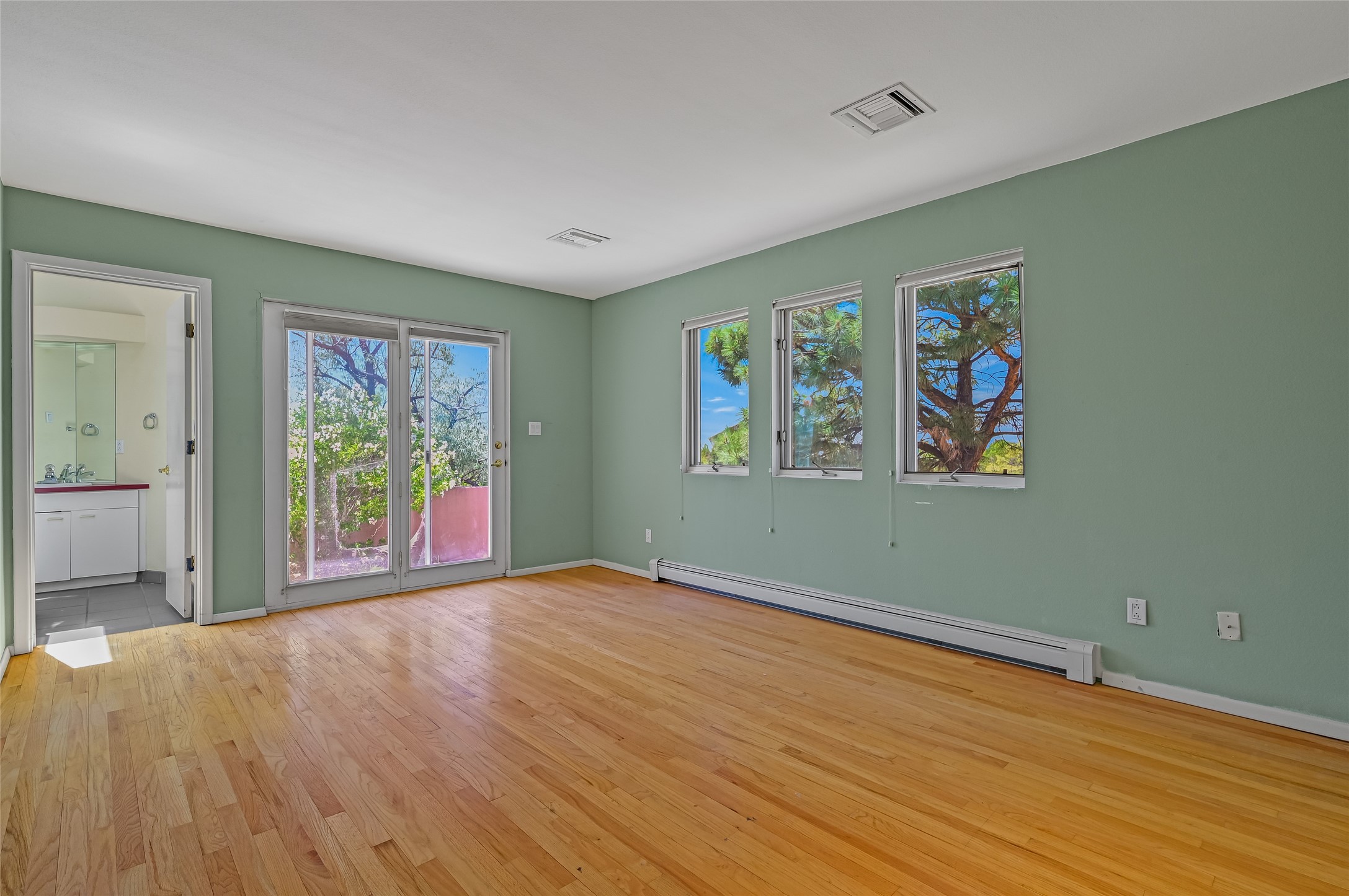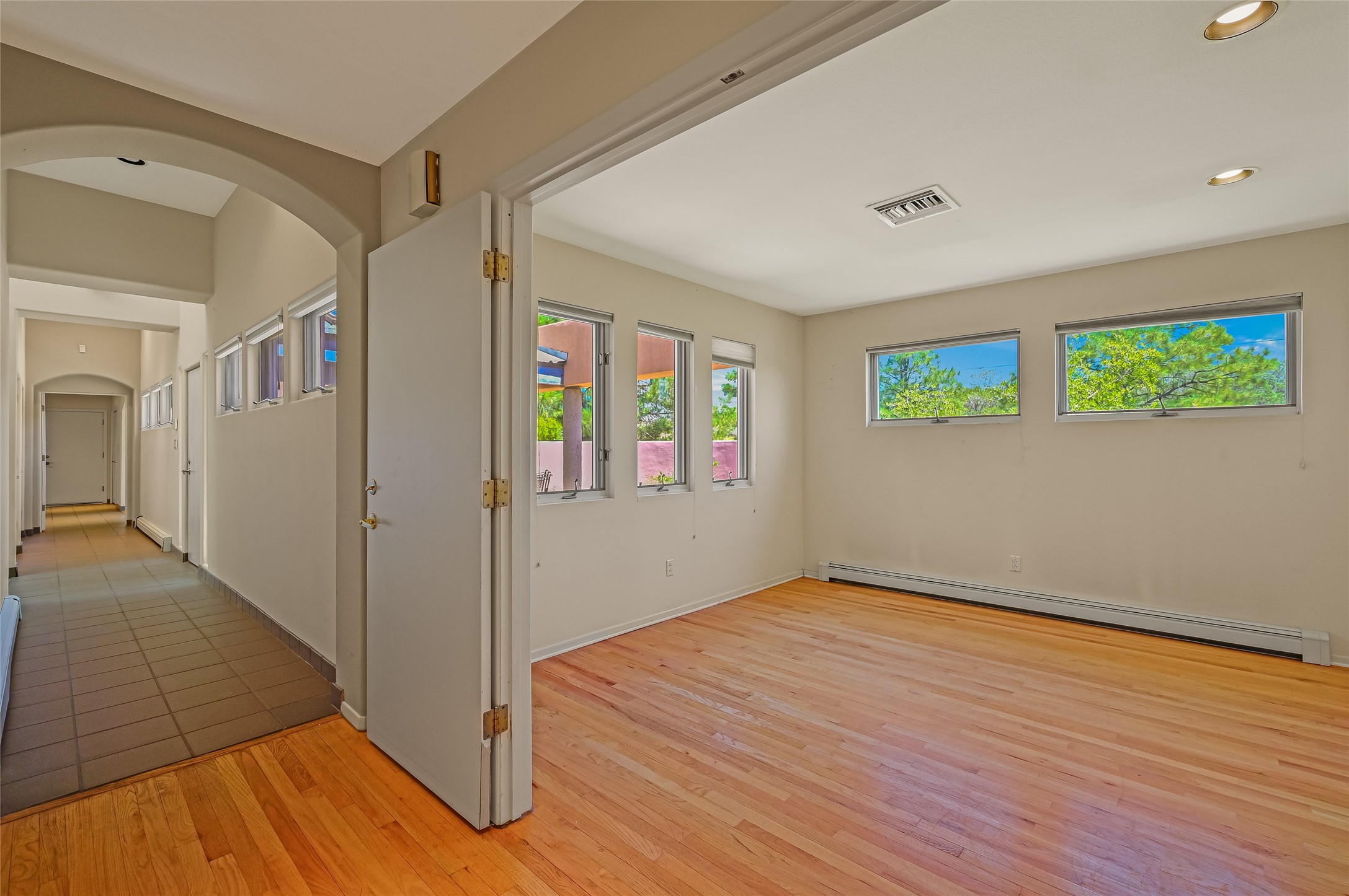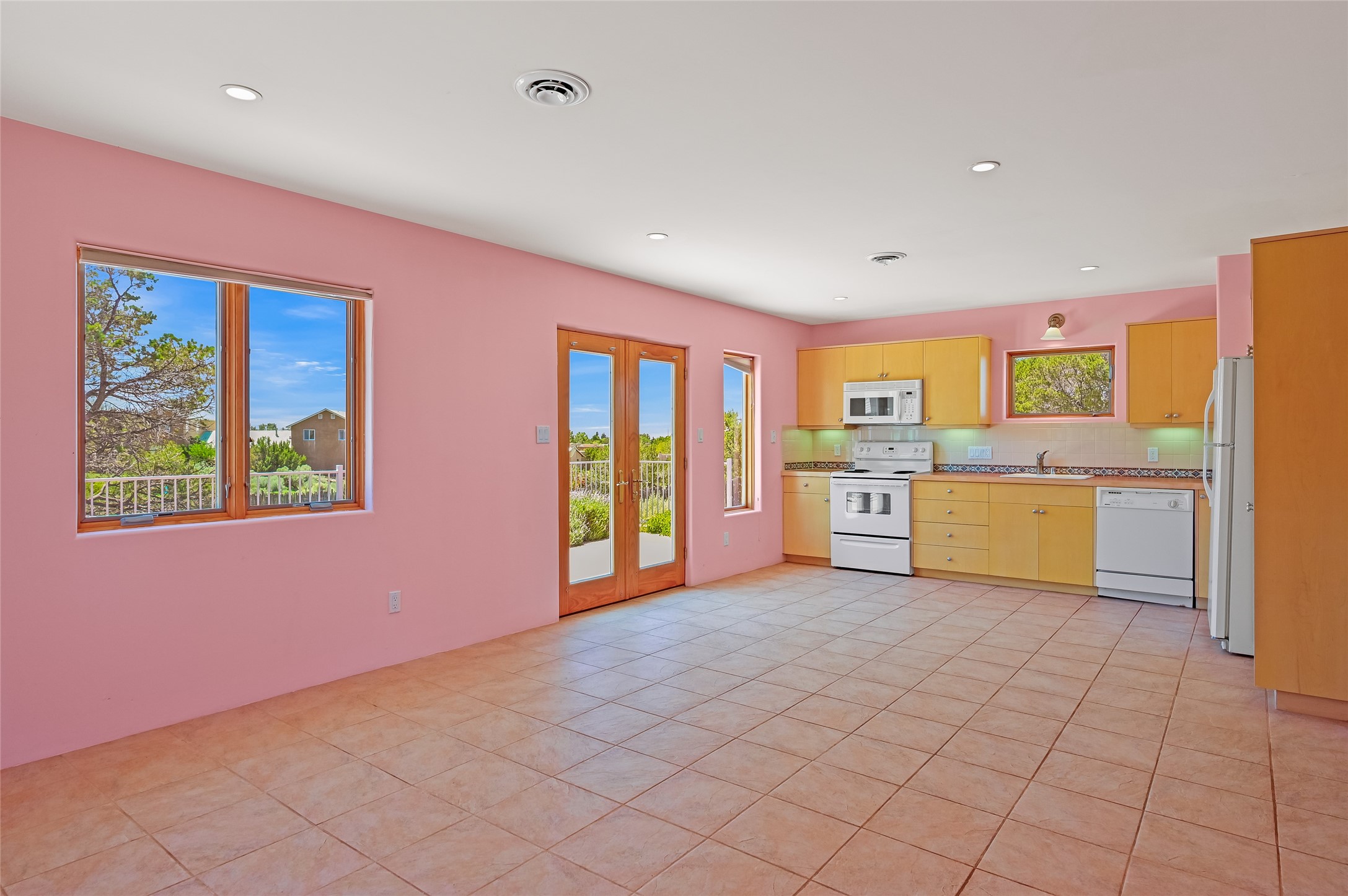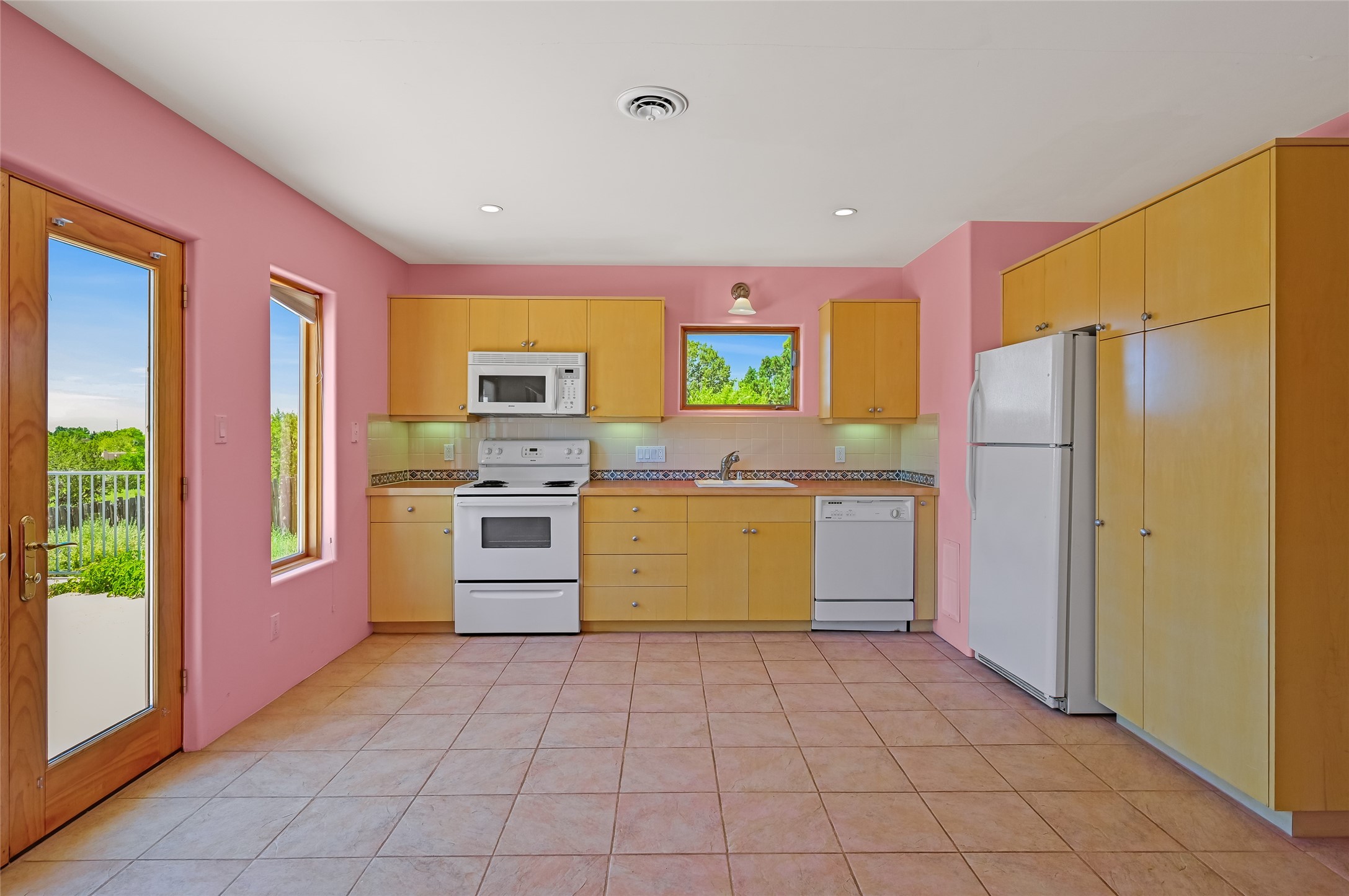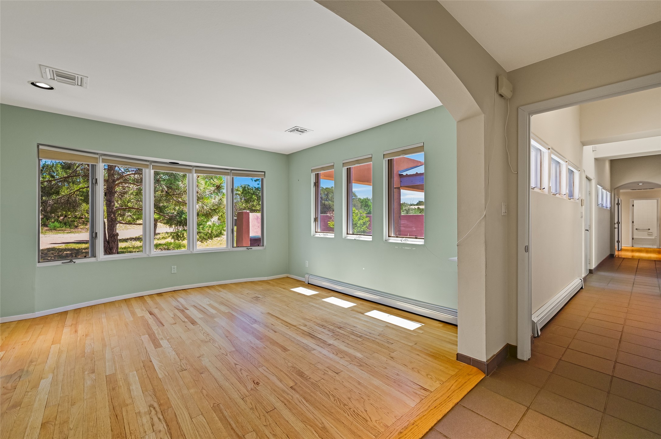 Income-producing property just 15 minutes from Downtown Santa Fe (3 mins. to St. Vincent's, close to shopping and the Rail Runner). Situated on a private 1-acre lot, this unique compound features a 3-bedroom main house designed with passive solar principles. The fully detached 2-bedroom guest house has its own entrance, kitchen, and bath-ideal for rentals, a guest suite, studio, or private office. Mature trees surround both homes, providing peace, privacy, and scenic beauty. The sustainability, and potential. Perfect for investors or multigenerational living