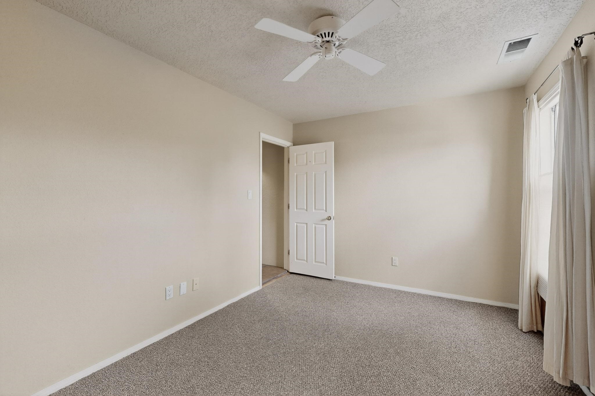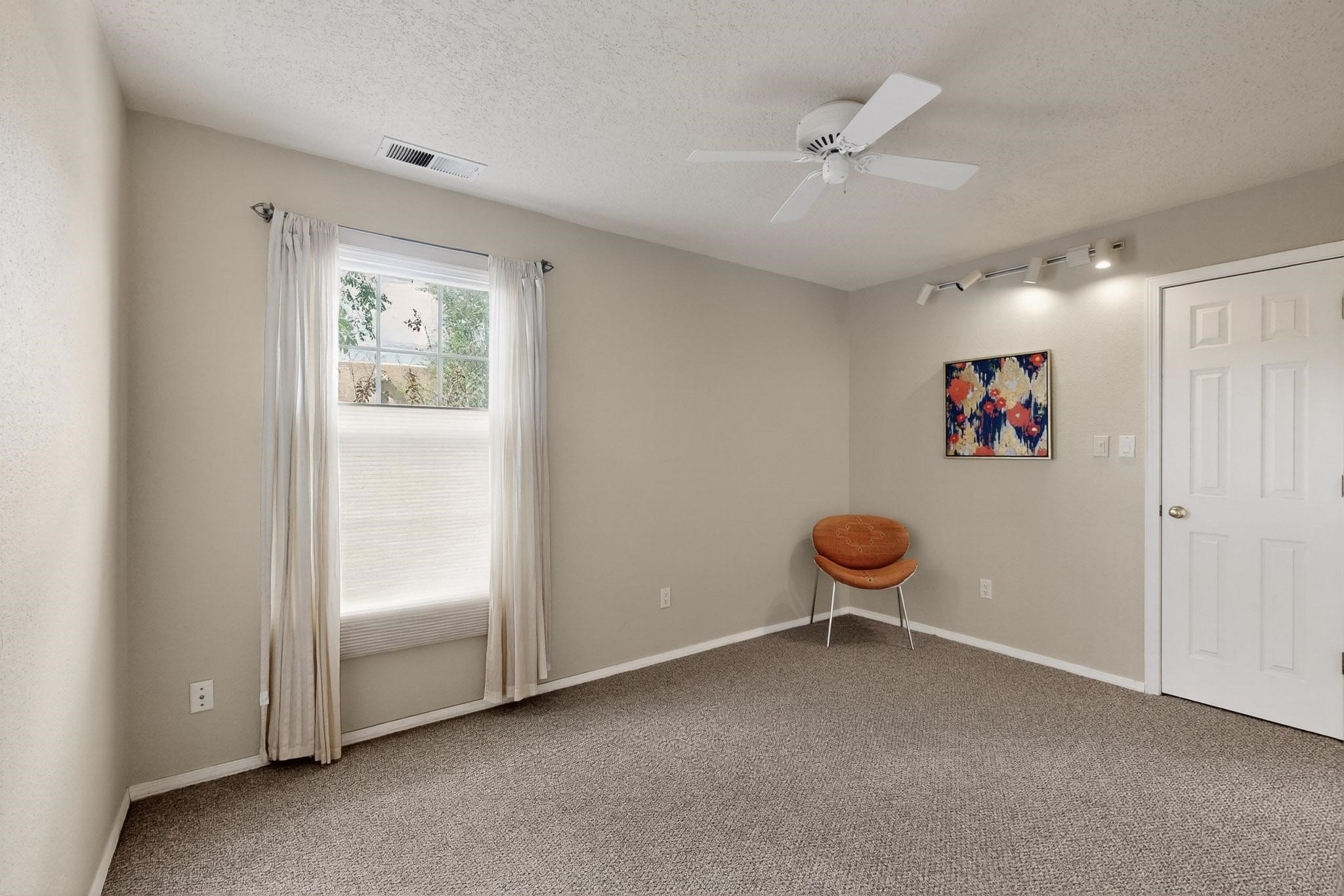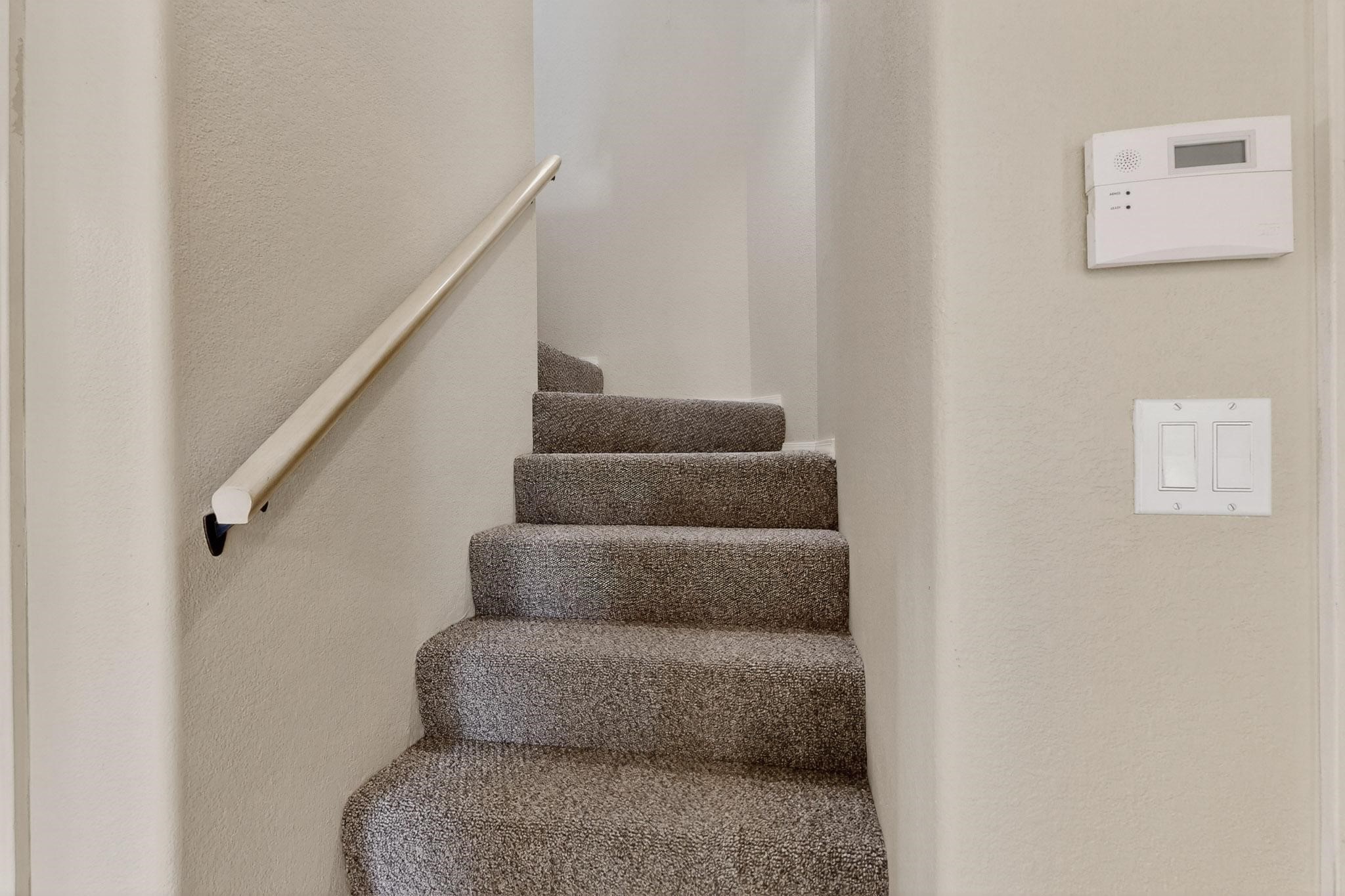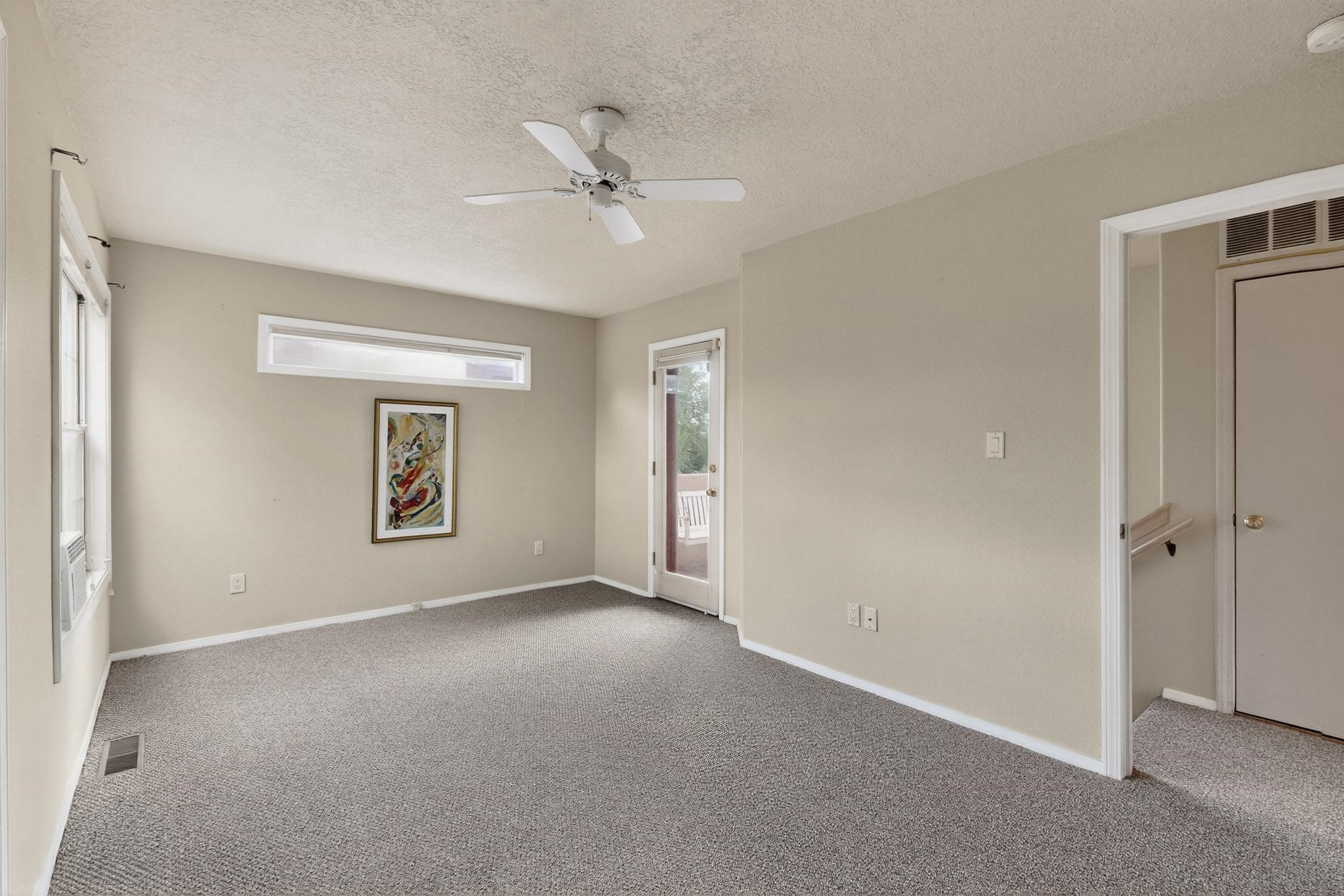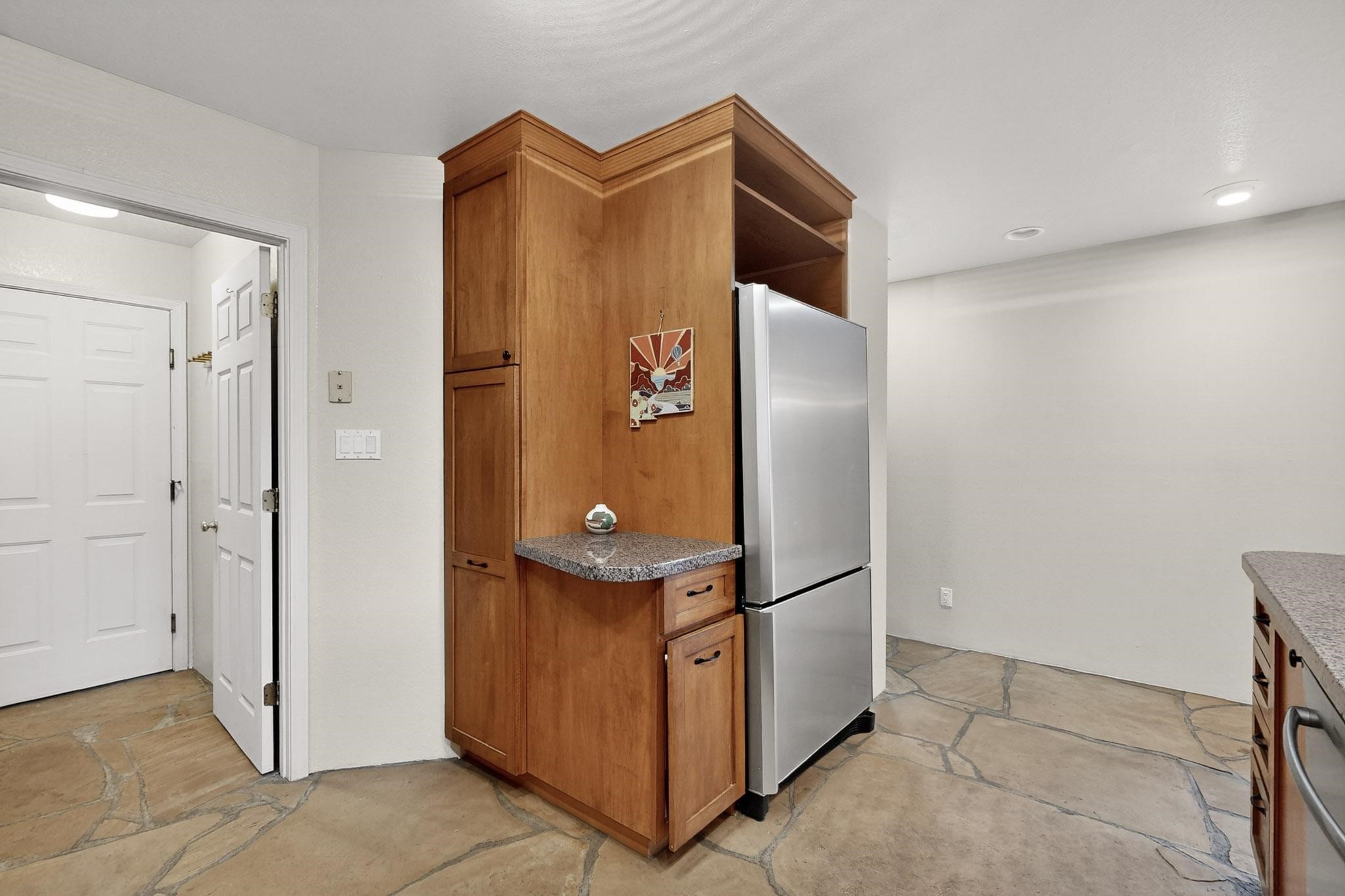 Welcome to your own private oasis minutes from the Plaza. A traditional SW style home where flagstone floors greet you when you walk in. Step down into the living room where high ceilings, tall windows, and a kiva fireplace create a cozy and relaxing space. There is a bathroom and bedroom on the bottom floor for easy and comfort. The updated kitchen flows to the dinning room, and outside to the multiple inviting patios with flowers and vines. Upstairs you'll find a suite with a walk through bathroom to the dressing area/office, and a balcony looking out to the mountains. Two more nicely appointed rooms are upstairs, and the laundry has been added to one of the bedrooms. Attached 1 car garage, newer carpet, kitchen and baths with granite countertops, fresh paint, and a newer roof. As you go out the small gated community, art filled streets and the Santa Fe River are right there where you can mosey along the path to the historic Downtown Santa Fe, or over to restaurants and stores. Now is your chance to have a lovely place so close to some of the things that make Santa Fe special. No HOA, and this is a free standing home in a gated community with 3 other 2 story homes.