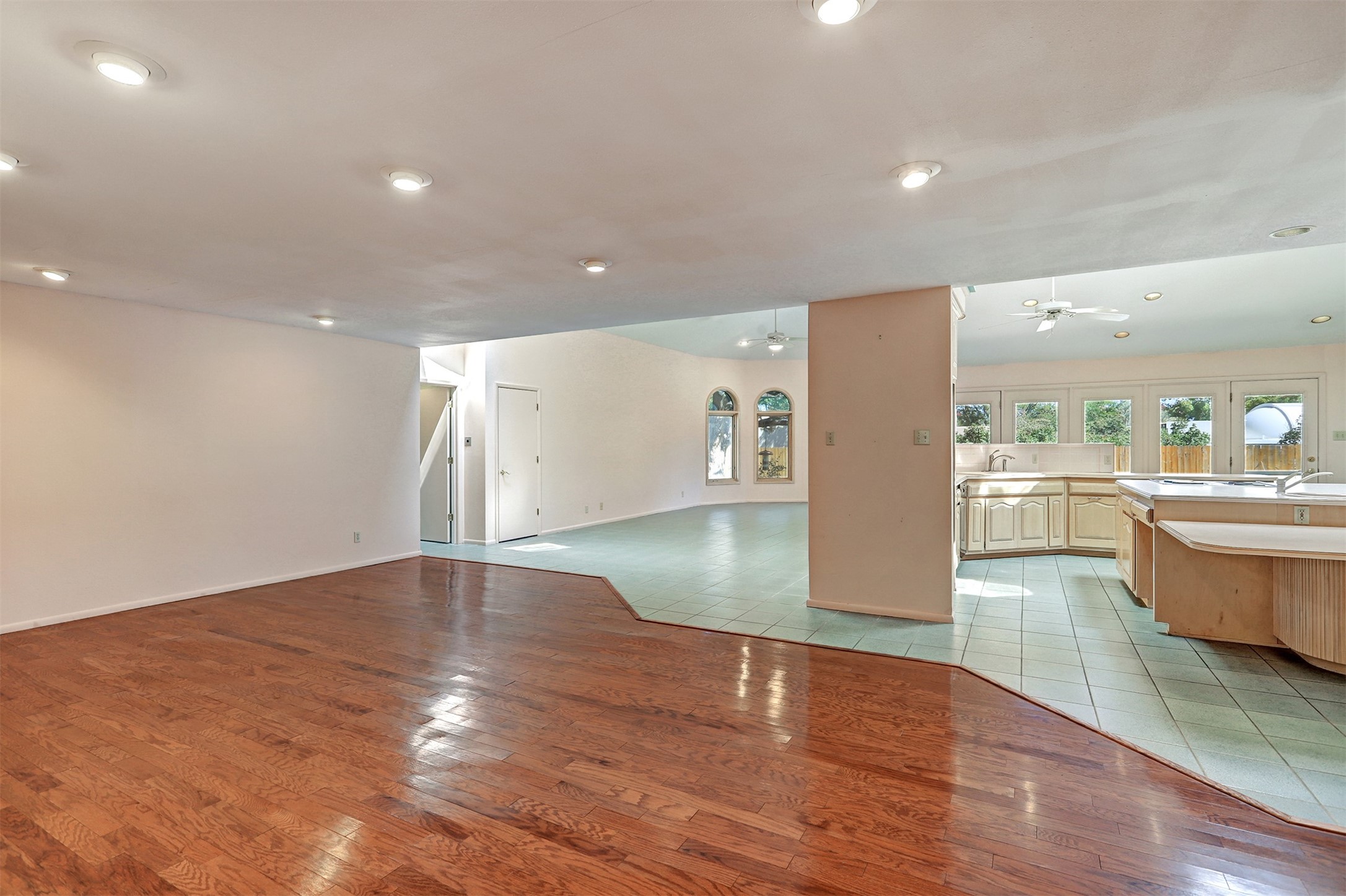 This inviting single-family offers open living space designed for comfort and functionality. The living room showcases soaring cathedral ceilings and radiant heated tile floors, creating a warm and welcoming atmosphere. At the heart of the home, the expansive kitchen features abundant storage and a central location, seamlessly connecting to the main living areas. A beautiful separate dining room provides the perfect setting for gatherings, while the cozy den/bonus room with brand-new carpet offers a more relaxed retreat. The primary suite includes an ensuite bathroom and a generous walk-in closet with built-in organizers. Two additional bedrooms and a second bathroom provide plenty of space for family or guests. The two-car garage is currently configured as a one-car garage plus a versatile rec room, with the option to convert back to a full two-car setup. Outdoors, enjoy RV parking with electrical hookup, a private backyard, and a quality Morgan shed for extra storage. This home blends thoughtful design with flexibility, offering space to live, entertain, and grow.