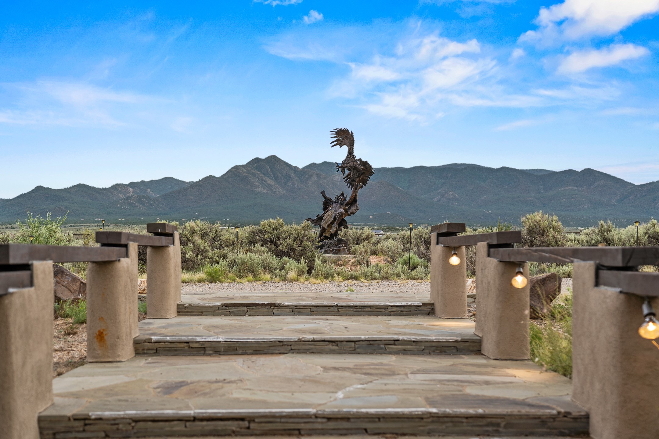 Welcome to 89 Riverbend, an extraordinary 4,233-square-foot Pueblo-style retreat on 8.89 private acres above the Ro Pueblo de Taos. This home artfully blends architectural authenticity with refined modern luxury, offering sweeping 360-degree views of Taos Mountain, the Ro Grande Gorge, and surrounding mesas--spectacular scenery that shifts with every season and hour, creating a landscape truly alive. Thoughtfully positioned to maximize privacy while staying connected to the land, it features a dramatic great room with soaring ceilings and floor-to-ceiling windows framing the river gorge--perfect for hosting gatherings or enjoying tranquil reflection. The formal dining room and cozy family area, complete with a wood-burning fireplace and built-in banco seating, create a warm ambiance that feels both grand and intimate. At the heart of the home is a chef's kitchen with Viking range, high-end appliances, walk-in pantry, and temperature-controlled wine cellar--an entertainer's dream. The expansive primary suite is a sanctuary, boasting two spa-like bathrooms and separate dressing rooms. Guest accommodations include a spacious secondary suite and a versatile third bedroom or office with built-in desk and mesa views. Outdoor living is seamlessly integrated with patios and gathering spaces--perfect for sunset dinners, morning coffee, or unwinding in the built-in hot tub beneath a starry sky. Whether watching the sunrise over Taos Mountain or exploring nearby trails, this home embodies the spirit of Taos--combining natural beauty, artistic inspiration, and cultural richness. A large workshop and greenhouse offer ideal spaces for projects or studio work. Though they need some updating, they present an incredible opportunity for creative pursuits. Located minutes from historic Taos Plaza yet worlds away in privacy, 89 Riverbend offers a rare chance to live in harmony where art, nature, and heritage meet.