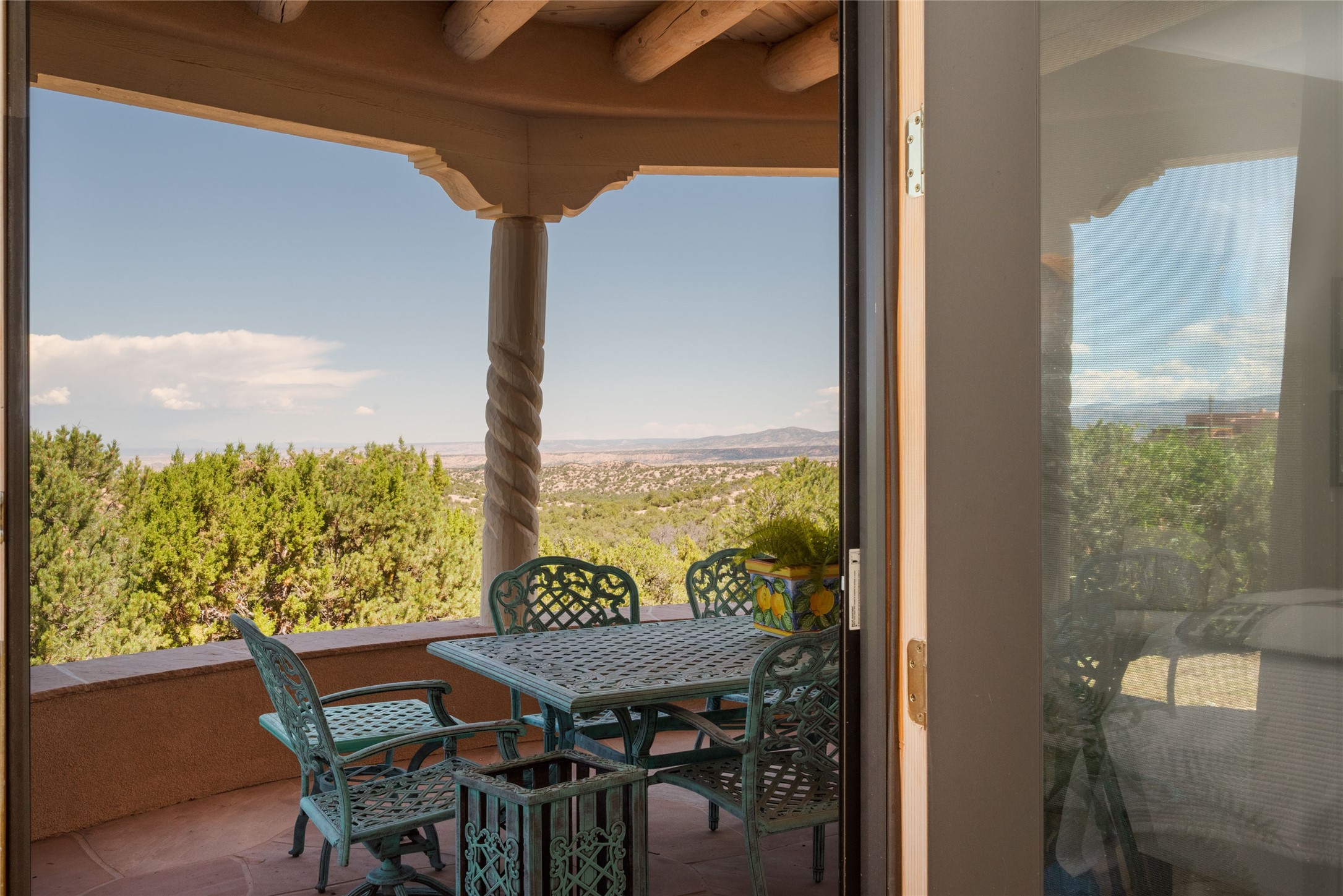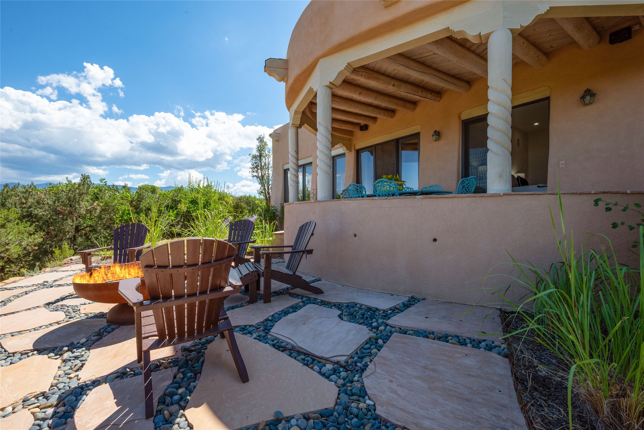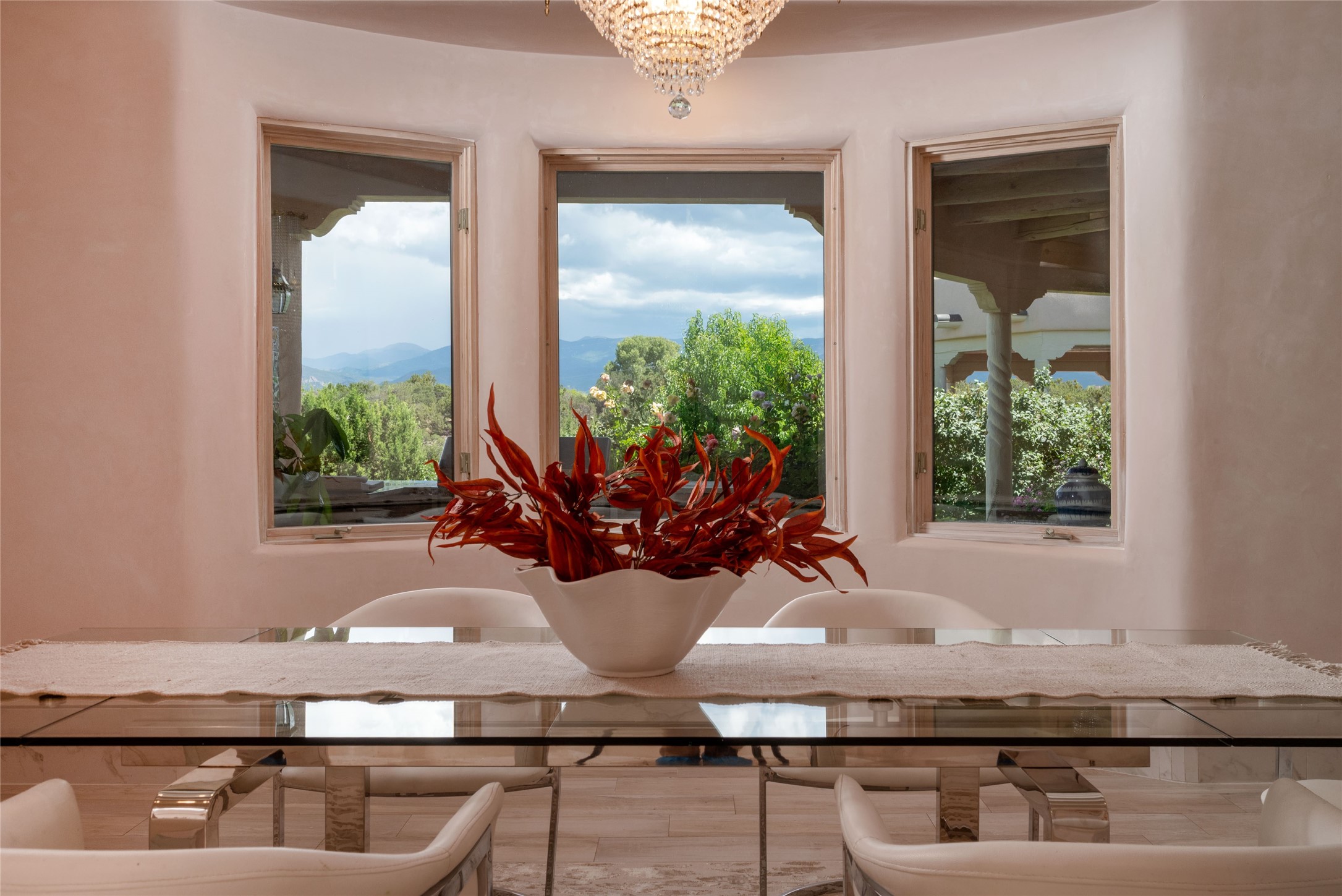 Grand Hacienda Winner and the unrivaled Belle of Tano Road redefines the essence of luxury living. Nestled behind exquisite handcrafted wrought iron gates, you are transported to a serene desert oasis, embraced by the splendor of nature, offering unparalleled privacy and sanctuary from the world. As you enter through handcrafted mahogany and wrought iron doors, the soaring ceilings and diamond plaster walls create an atmosphere of grandeur, while the Italian porcelain floors reflect a commitment to the highest standards of luxury and craftsmanship. Every detail has been meticulously curated for you. The great room, with its endless windows, invites you to bask in the breathtaking views of the sweeping mountains and the enchanting cityscape below, perfectly positioned above the exclusive enclave of Santa Fe. The sprawling estate houses two exquisite primary suites, each featuring spa-like bathrooms with soaking tubs, emperor showers, and ample space to have a powder room lounge, a meditation space, or a fitness area. Each of the four bedrooms is its own sanctuary, complete with fireplace and en-suite facilities, ensuring every guest feels like royalty and that their comfort and privacy are paramount. The gourmet kitchen is a culinary dream featuring custom cabinetry, Wolf range with double ovens and a warming drawer, Sub-Zero refrigerator, and a massive island seamlessly connecting to the outdoor cooking and dining spaces for effortless entertaining. Expansive grounds, nearly three lush acres, adorned with manicured lawns, vibrant rose gardens, and fruit trees, offer an idyllic setting for outdoor gatherings. These luxurious spaces provide not just comfort, but a lifestyle of sophistication. Immaculately maintained and thoughtfully expanded, this sprawling 6,700sq.ft estate is a testament to refined living. This is more than just a home - it is a lifestyle drenched in luxury and elegance. Design that speaks to the most discerning tastes and coveted desires. *Video*