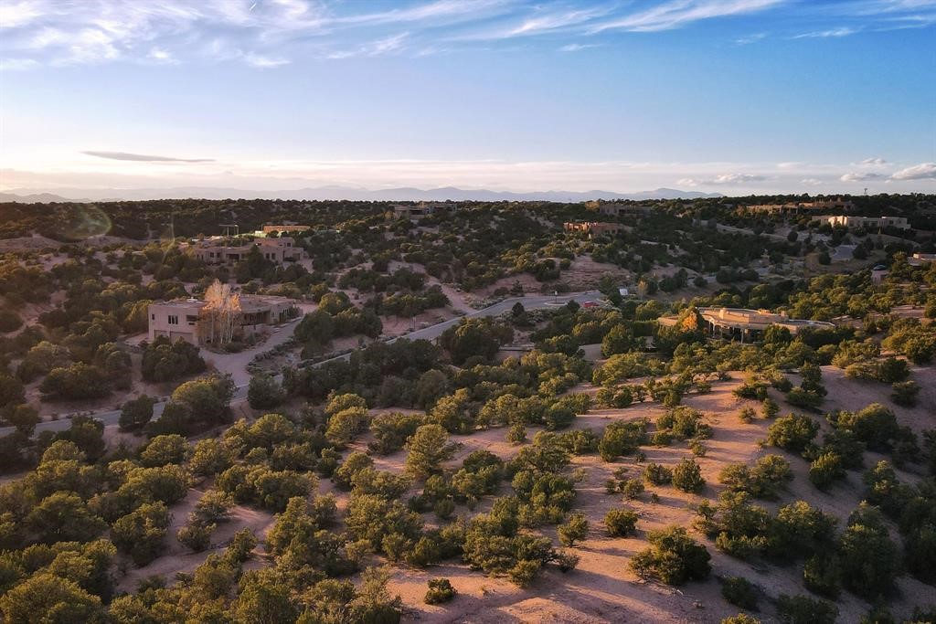 Spectacular 1.65-acre homesite with sweeping mountain, sunset, and city-light views. Within one mile of the Plaza of Santa Fe, paved road, full city utilities, and close to shopping, plus biking and hiking trails. Site plan, floor plan, and rendering concepts included to showcase the property's exceptional potential in one of Santa Fe's most coveted communities. Schedule your leisurely showing today and follow the trail markers up to the building pad of the lot where a thoughtful viewing landing has been constructed for your comfort.