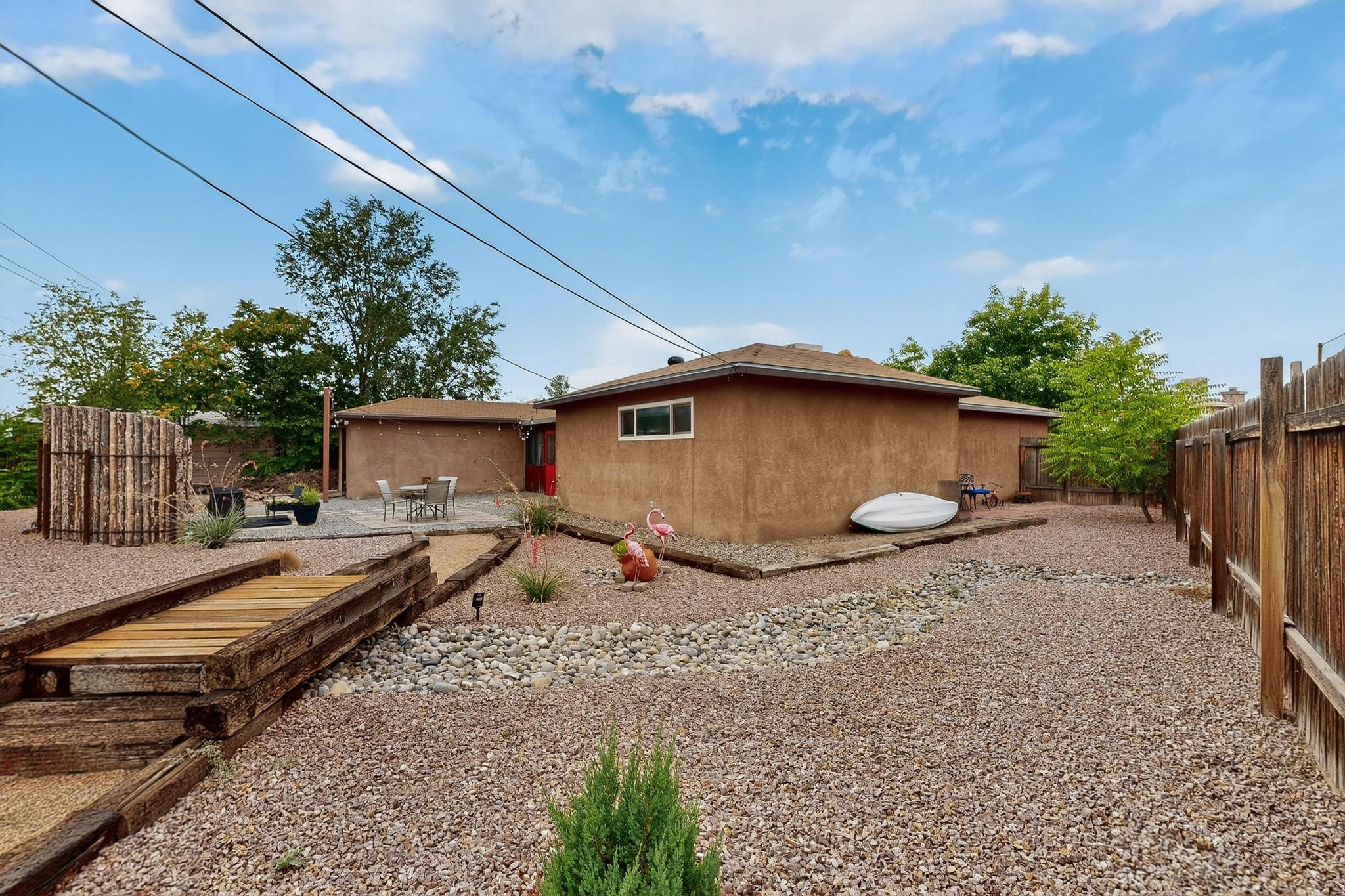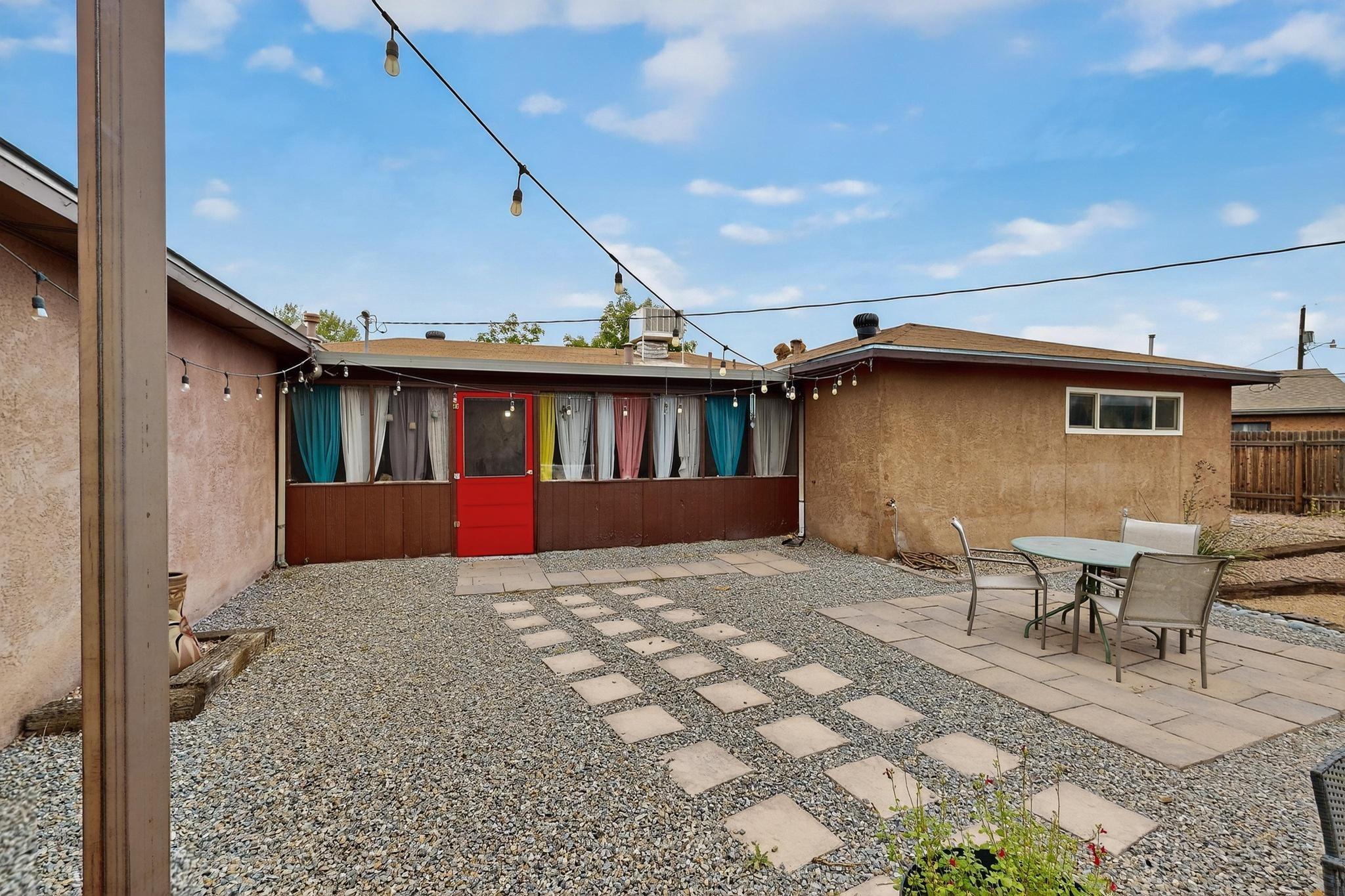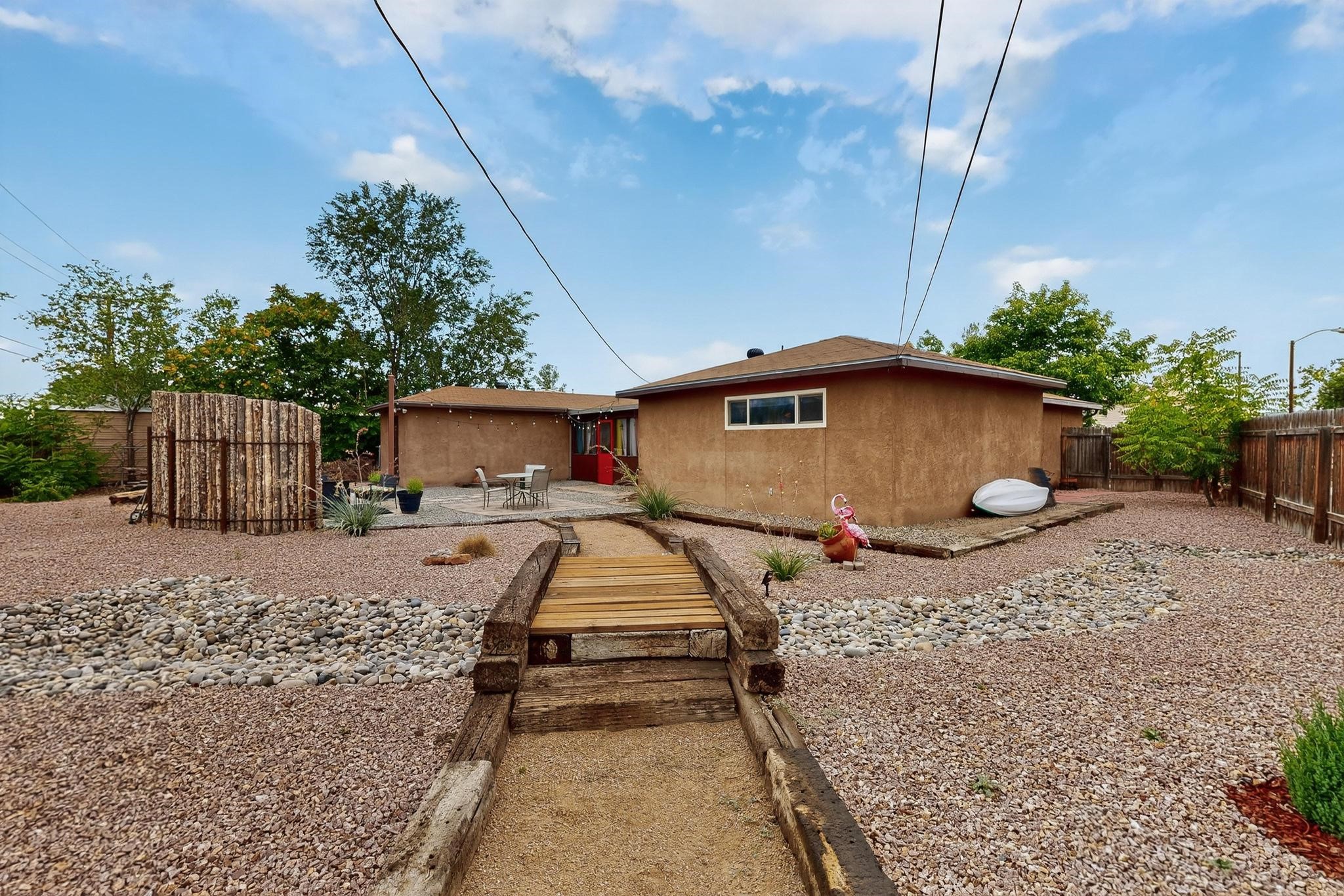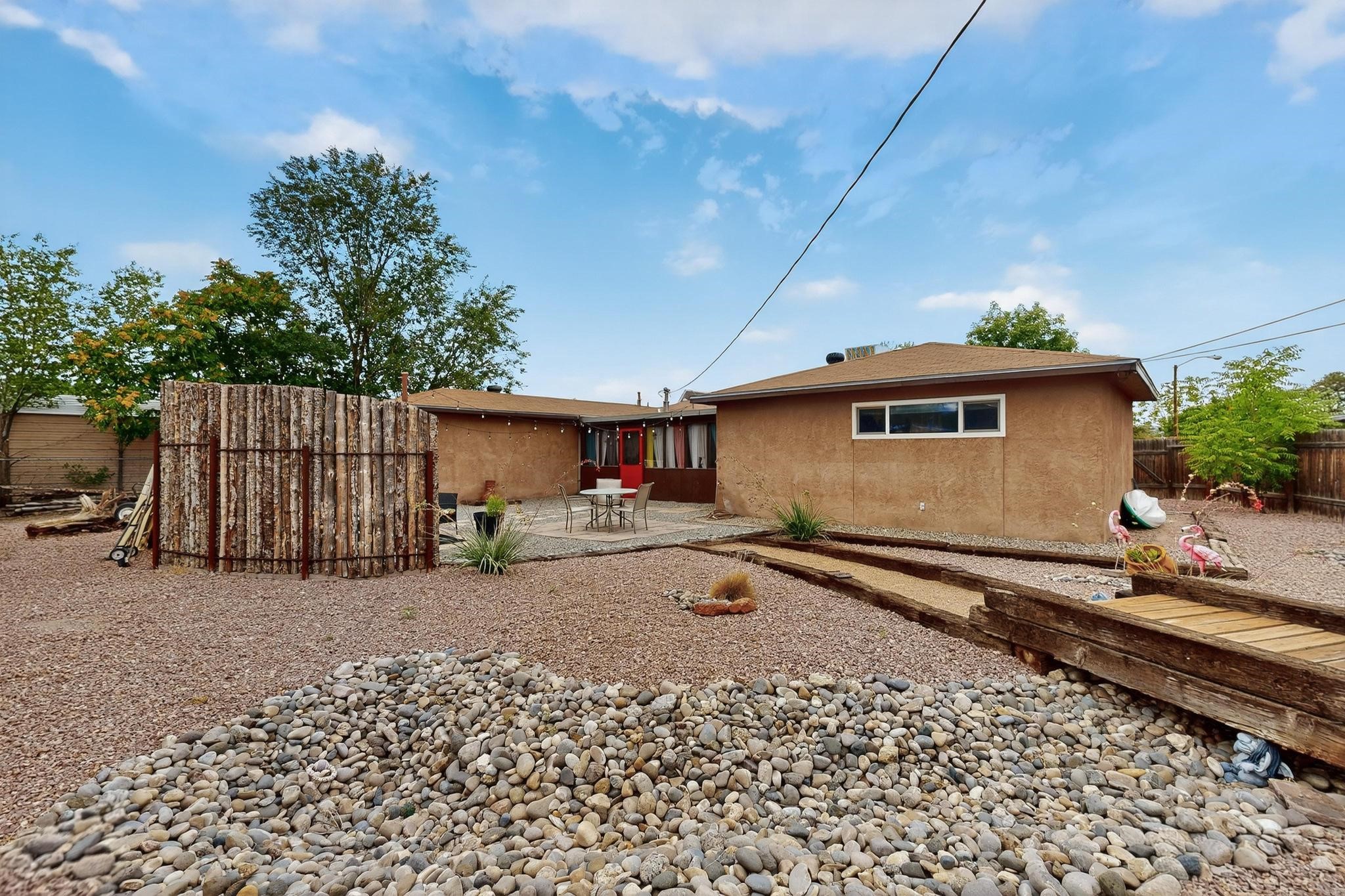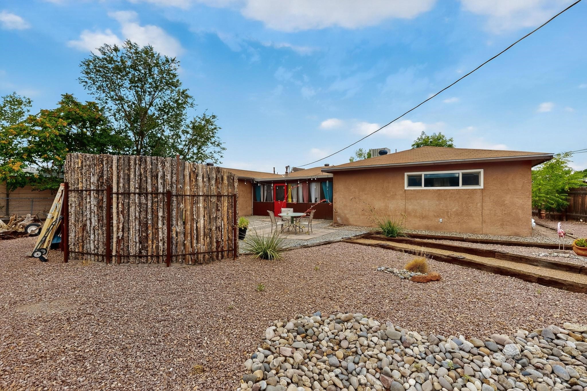 Motivated Seller is offering $5,000 in flex cash which can be used toward closing costs, rate buy-down, or price adjustments! Come see this gorgeous 4 bedroom, 2 bath house on a quiet street in the heart of northern Bernalillo. Updated kitchen and bathrooms. Bonus ''gym'' could be used as an extra family room, media room or bedroom. Enjoy your coffee in the screened porch or one of 4! separate sitting/eating/patio areas in the back yard, or under the shade of the trees in the front yard. Bonus is the views of the Sandias from your beautifully Xeriscaped back yard. Property is fully fenced for the safety of your family or furbabies. Gated access to the backyard from Camino Don Tomas. Quick access to 550 and I-25 makes for an easy commute to work.