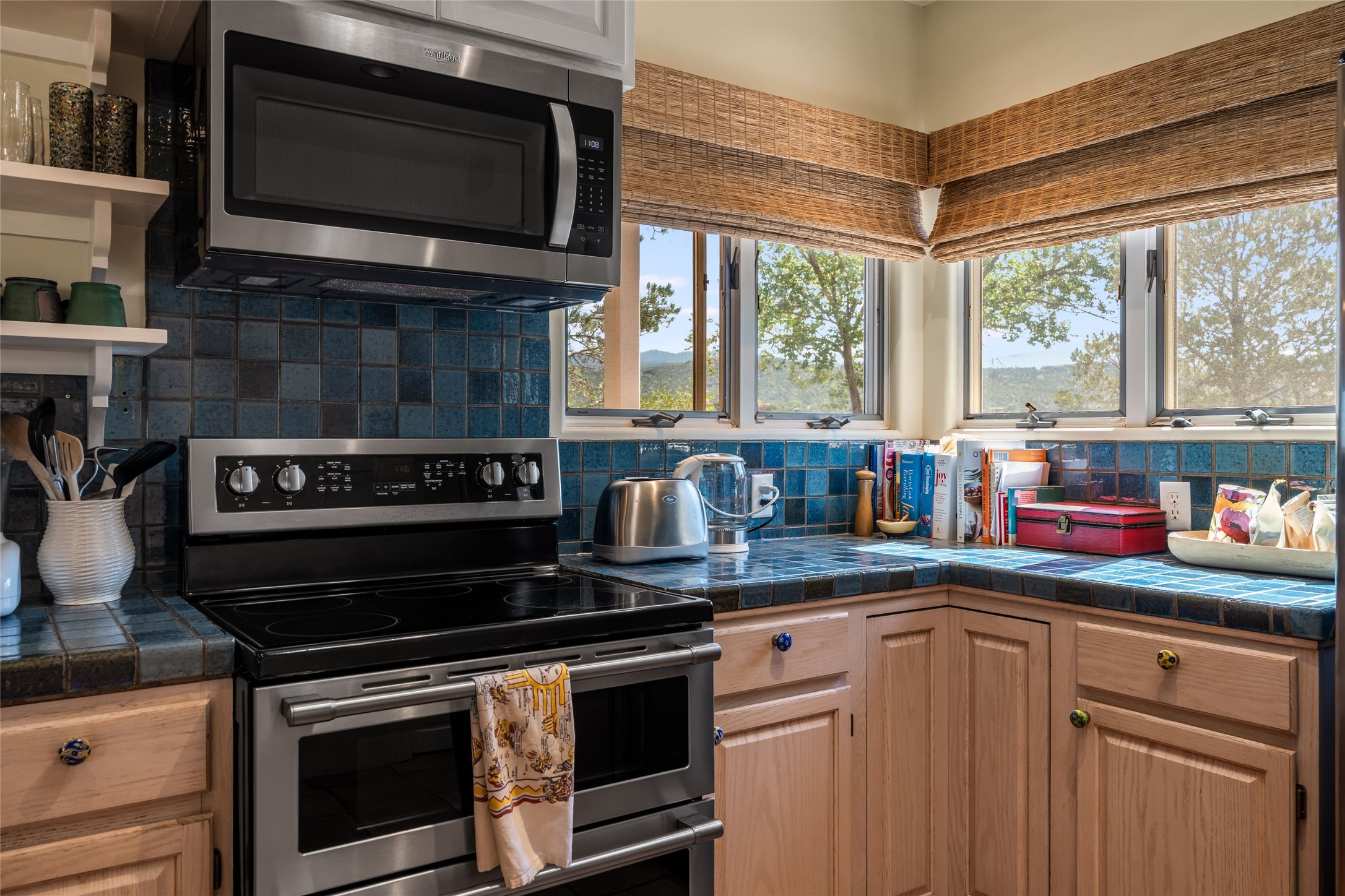 Perched at the very top of coveted Stagecoach Road, this single-family home offers unmatched privacy, tranquility, and almost 360-degree views. Located less than 1.5 miles from The Plaza, it combines convenience with the feeling of being a world away. From sunrise to sunset, every room in this 3,000 sq ft residence is bathed in natural light and breathtaking scenery. Thoughtfully designed for both comfort and inspiration, the home features two spacious bedrooms and two well-appointed bathrooms, along with a large family room and a studio--perfect for creative pursuits, a home office, or additional guest space. The open-concept layout seamlessly connects the kitchen, dining area, and living room, creating an airy and inviting space ideal for entertaining or quiet evenings at home. Antique Saltillo tile adds warmth and character throughout, while a cozy reading room invites you to unwind and take in the views. While the home is fully livable, it offers an excellent opportunity for updates to match your personal style. Whether you're enjoying coffee at sunrise or a glass of wine at sunset, this hilltop retreat offers a rare chance to live above it all--surrounded by nature, beauty, and serenity.