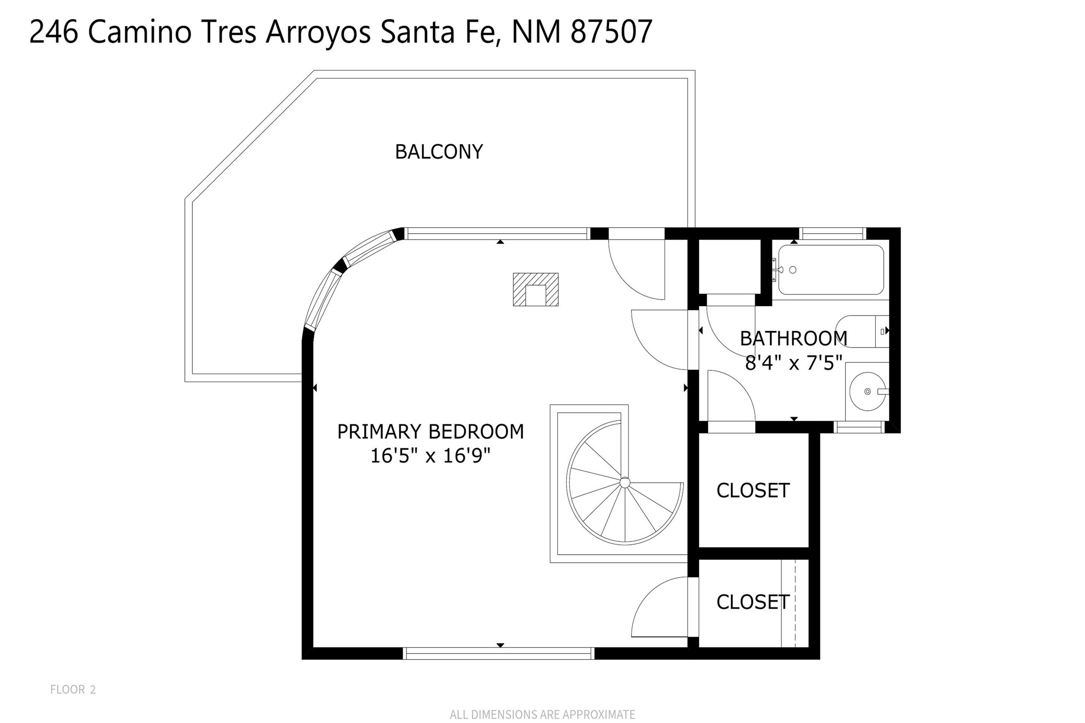Located on 1.25 acres, a mere 4 miles from the Plaza, Casa del Sol feels like country living ten minutes from town. The Casa has 3 bedrooms and 2 full baths, ample privacy, stunning mountain views, and fantastic light. This classic Pueblo style adobe home was built by hand by artist Paul Glickman with careful attention to detail. You'll find all the classic finishes - vigas and beams, high ceilings, corbels, pretty wood doors, Saltillo tile floors, nichos and 4 fireplaces- kivas and 2 wood burning stoves. The main living areas have an open feel between kitchen, dining and living, as well as high ceilings with clerestory windows for added light and passive solar gain. The South-facing flagstone patio off the kitchen, as well as the Northwest outdoor area off the living room, are perfect for indoor and outdoor living and entertaining. A highlight of this home is the Loretto-inspired wooden spiral staircase to the second-floor primary bedroom, with custom bamboo floors, a wood-burning stove, and an ensuite bath. Outside the upstairs bedroom, a wrap-around deck makes it easy to enjoy big sunset and sunrise views. Down a few steps from the front entry is the guest bedroom, offering good separation and privacy, as well as a cozy corner kiva fireplace. The third bedroom, with its separate entry, can serve several functions: home office, guest suite, den, or studio, and has a wood stove insert in the fireplace as well as a sink. With the adobe construction and a mini split for cooling, the house stays comfortable in winter and summer. A ground-mount solar array provides a surplus of energy almost every month. The property is zoned for livestock, with space for a corral. Brand new roof fall of 2025, with 10 year transferrable warranty! This home is a special retreat, with its charm, exquisite craftsmanship, and stunning views in a tranquil, beautiful, and natural setting. Casa del Sol is one of a kind.