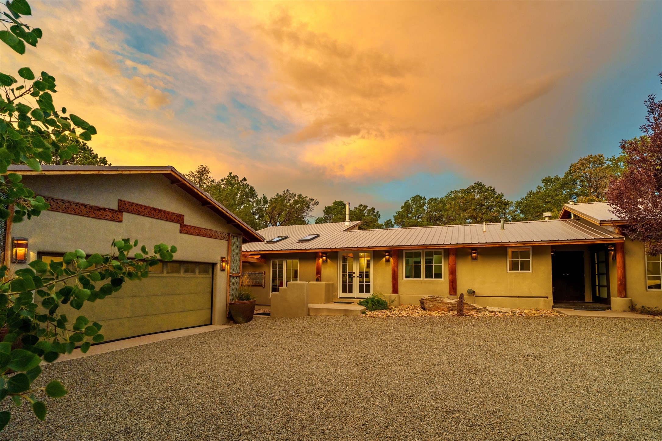 LIVE, WORK, ENTERTAIN, in your own secluded sanctuary located on 7.08 Sunlit Hills acres.10 Sabina Lane is a sophisticated & contemporary COMPOUND offering a wide variety ofliving & working spaces in a stunning pastoral setting, 15 minutes from Santa Fe.MAIN HOUSE - 2,187sqft open concept Great Room w/beamed cathedral ceiling,fireplace, Chef's kitchen w/granite counters, high end appliances, 2 spacious bedrooms w/ensuite bathrooms, laundry area, 5 sets of French door leading to 58 foot long covered portal.GUEST SUITE - 530sqft is steps from the main house & offers an inviting bedroom, spainspired bathroom, custom tiles, soaking tub, is adjoined by a private tranquil terrace.STUDIO/OFFICE - 994sqft amazing work space with vaulted ceiling, view windows, areasfor an office, art or other work related spaces, powder room & covered portal entry. Onewould never need to leave the property to conduct all their business or artistic work.CASITA - 683sqft Set apart from the main house, the casita has a full kitchen w/stonecounters, kiva fireplace, covered portal, stackable washer/dryer. The casitahas produced additional income as an Air B&BGARAGE - 60 sqft Fully finished, 2car capacity, storage areas.GAZEBO -196sqft An inviting space away from the home for meditation & relaxation.PAVILION -241sqft Wonderful retreat area w/fireplace, bancoseating, ceiling fan, designer lighting.The property is accessed through a gated entry, a graveled driveway w/recently addedretaining wall. Many additional aspects - electric convectionstove top, extensive & significant landscaping,10 zone irrigation system,2 owned propane tanks (500 and 250 gallons), 5 fireplaces, an amazing flower filled meadow, healthy pinon, aspen and juniper trees, eclectic river rock pylons, antique wooden bathroom cabinet, a wealth of ceiling fans & mini split in the primarybedroom. For folks seeking a destination, full time live/work situation, please consider 10Sabina Lane.