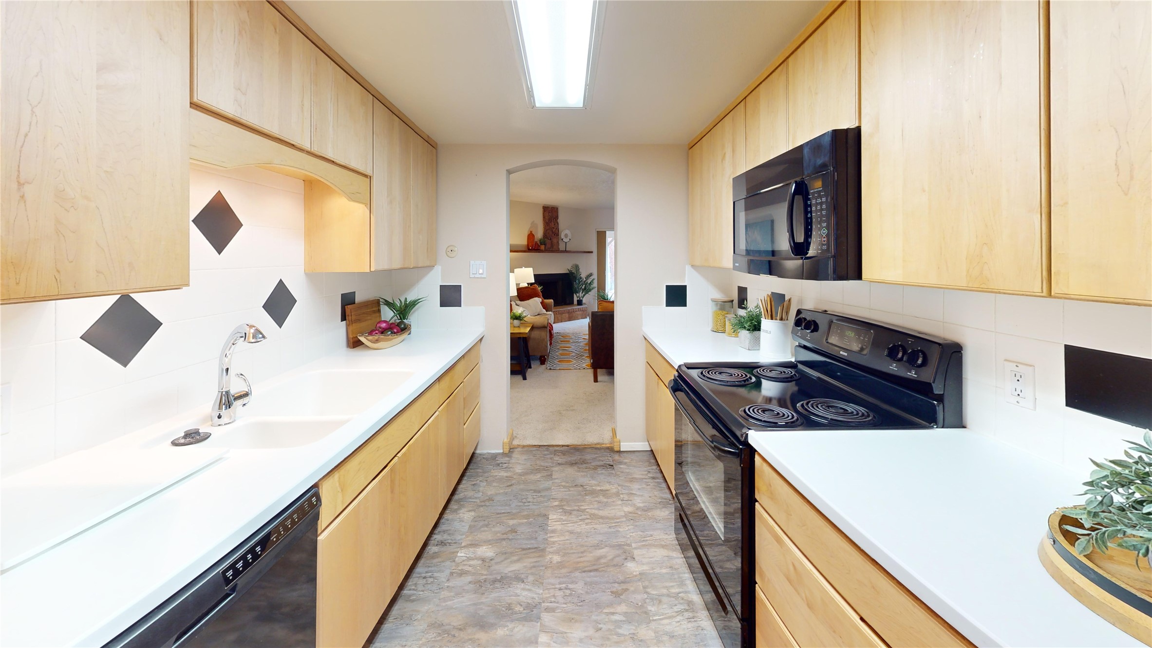 Tucked into a beautifully landscaped, tree-filled neighborhood, this 2-bedroom, 2-bathroom townhome offers comfort, convenience, and the relaxed charm of Los Alamos living. Mature pines and manicured grounds create an oasis-like setting that feels both connected and serene.A private walkway leads you to the welcoming entryway and into the spacious living room, where a wood-burning fireplace provides warmth and comfort. Large windows frame sweeping mountain and canyon views, the perfect backdrop for enjoying a cozy evening or watching birds and wildlife from the comfort of home.The updated kitchen features solid-surface countertops and warm maple cabinetry, combining timeless style with everyday function. Just off the kitchen, the inviting dining nook overlooks the private garden entryway--a cheerful spot for morning coffee. Nearby, a conveniently placed laundry closet and direct access to the spacious 2-car garage add everyday ease.Outdoor living is a highlight, with a private patio that invites you to dine al fresco or simply relax beneath the pines while enjoying the peaceful canyon views.Both generously sized bedrooms include en suite bathrooms, offering privacy and flexibility for guests, a home office, or hobbies. The primary suite is at the back of the home and enjoys south facing windows looking to the canyon.With its canyon setting, functional layout, and neighborhood that feels like a retreat, this home presents a rare opportunity to enjoy downtown Los Alamos living in a peaceful, low-maintenance setting.