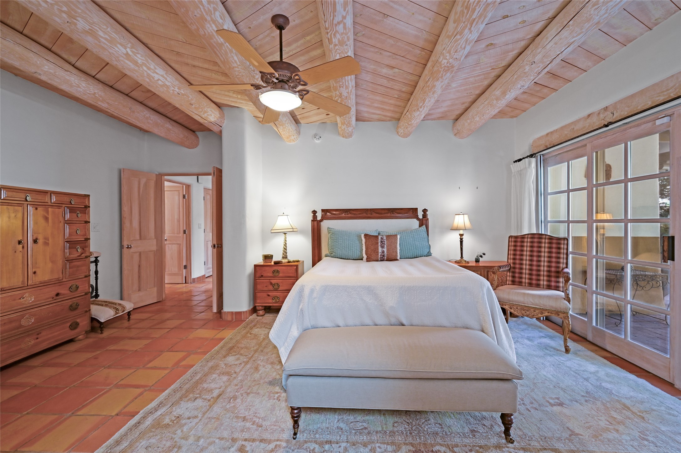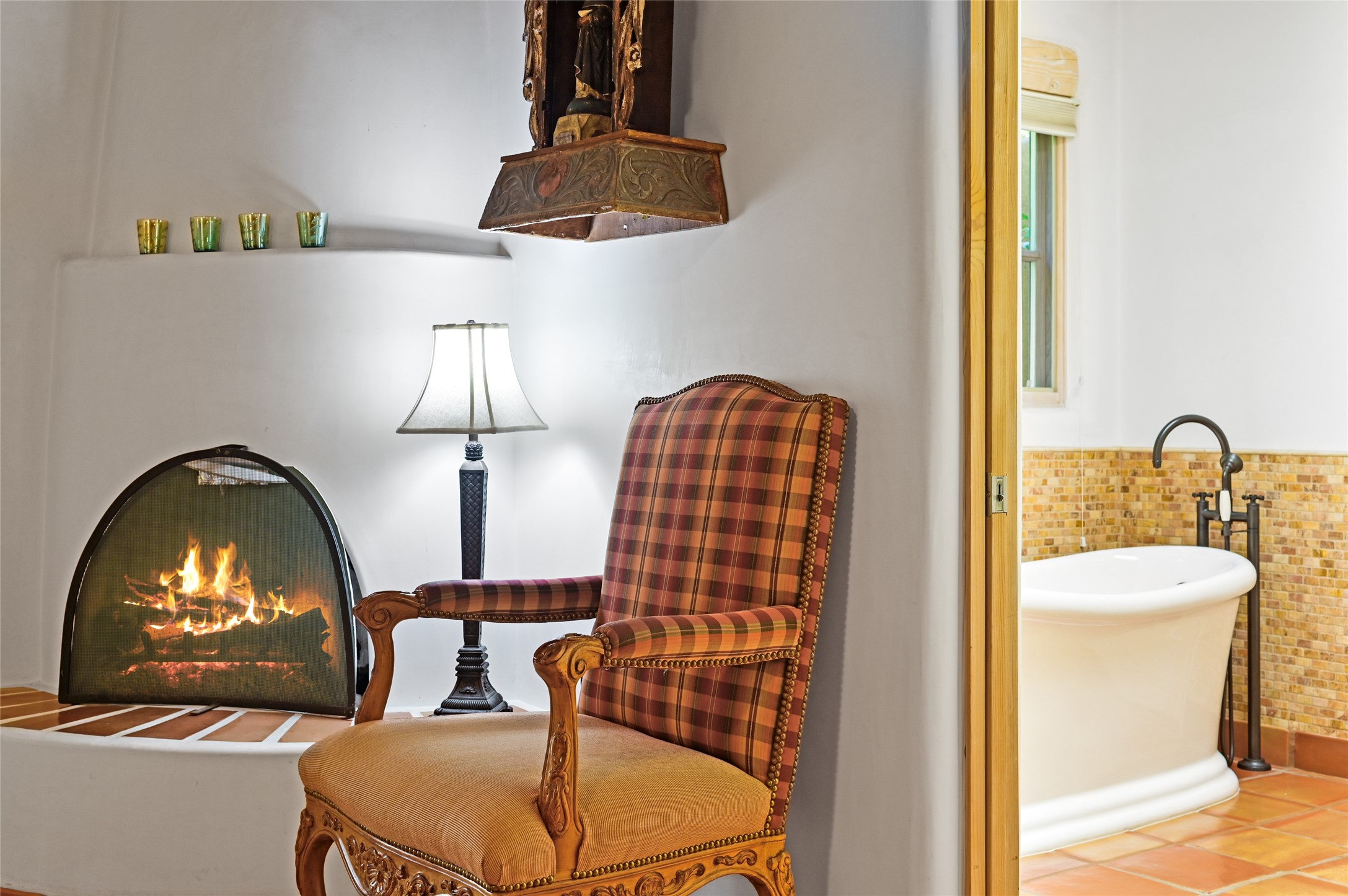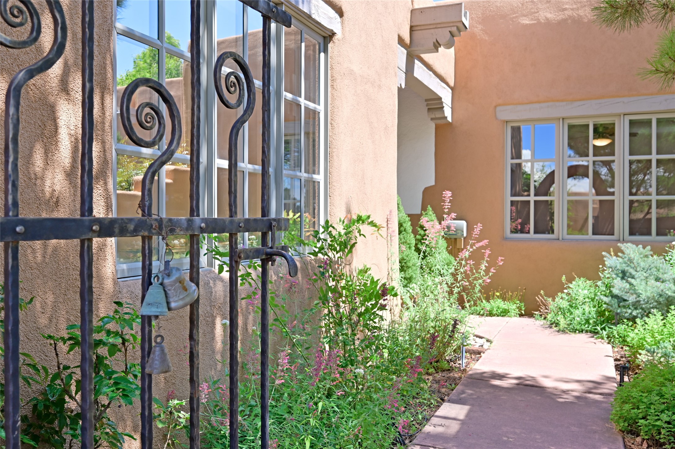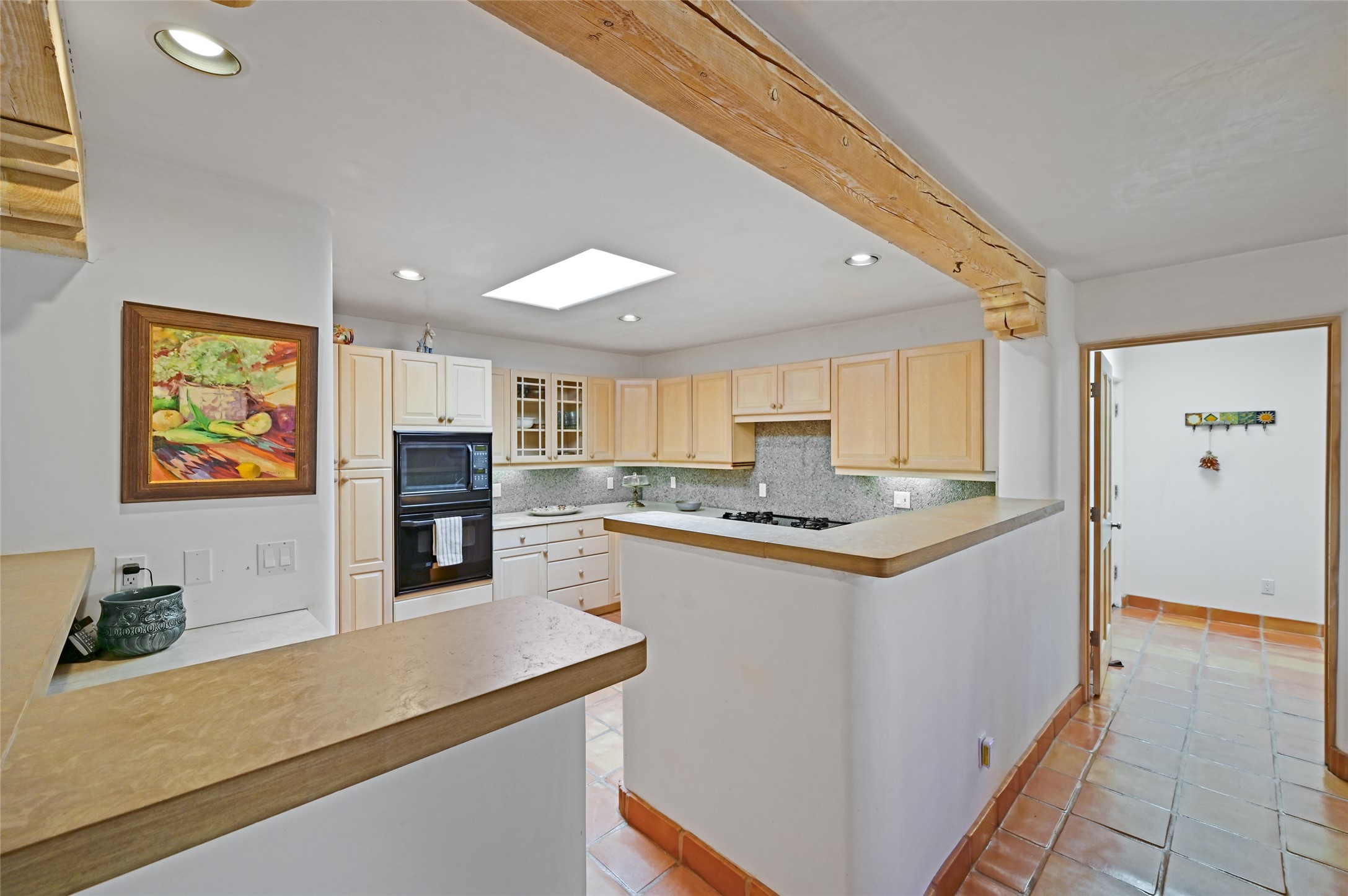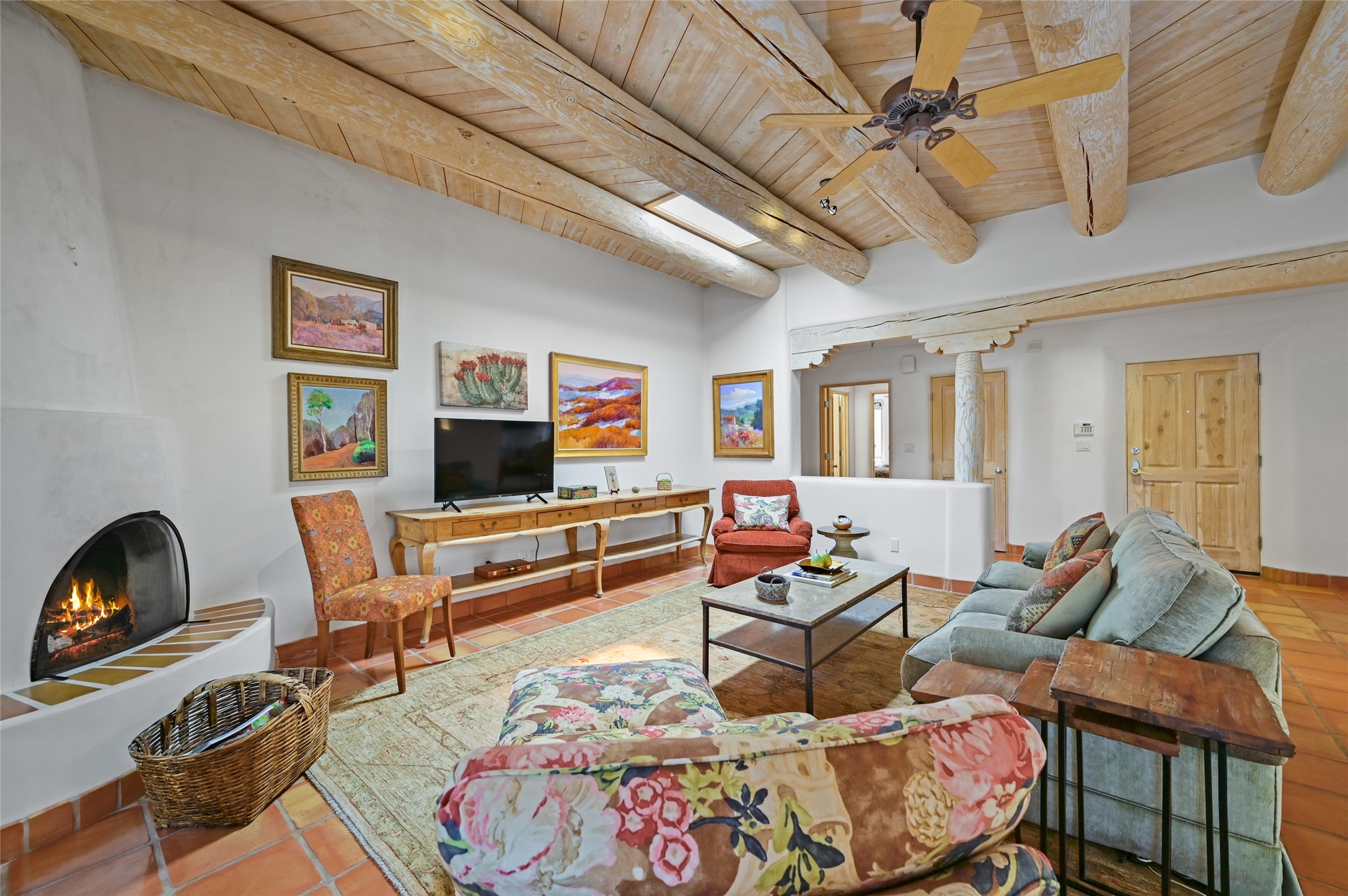 Worried about the HOA dues? Seller will pay 1 years' worth of dues for Quail Run's perfect condo -- a classic Pion C floorplan with two bedrooms plus an office/den! Step inside to discover plaster walls, Saltillo tile floors, and a traditional Kiva fireplace that create a warm and inviting atmosphere. Skylights throughout bathe the home in natural light, while the single-level layout with no steps offers comfort and ease of living.The kitchen features updated stone counters, a stylish backsplash, and generous cabinetry for storage and organization. The primary suite is its own retreat with a Kiva fireplace and access to the back courtyard while the adjoining bath includes a newer modern bathtub for relaxing at day's end and a double vanity and larger closest.The living spaces open to a covered back patio, complete with a gentle fountain, brick detailing, vigas, lush landscaping and charming corbels -- a private sanctuary for relaxing or entertaining. A spacious two-car garage adds convenience and storage.Ownership at Quail Run includes access to exceptional amenities: 24-hour hosted security, state-of-the-art fitness facilities, a swimming pool, golf, pickleball, fitness classes, social gatherings, and its own restaurant!Come see why this special home in Quail Run offers the perfect blend of Santa Fe style and resort living.