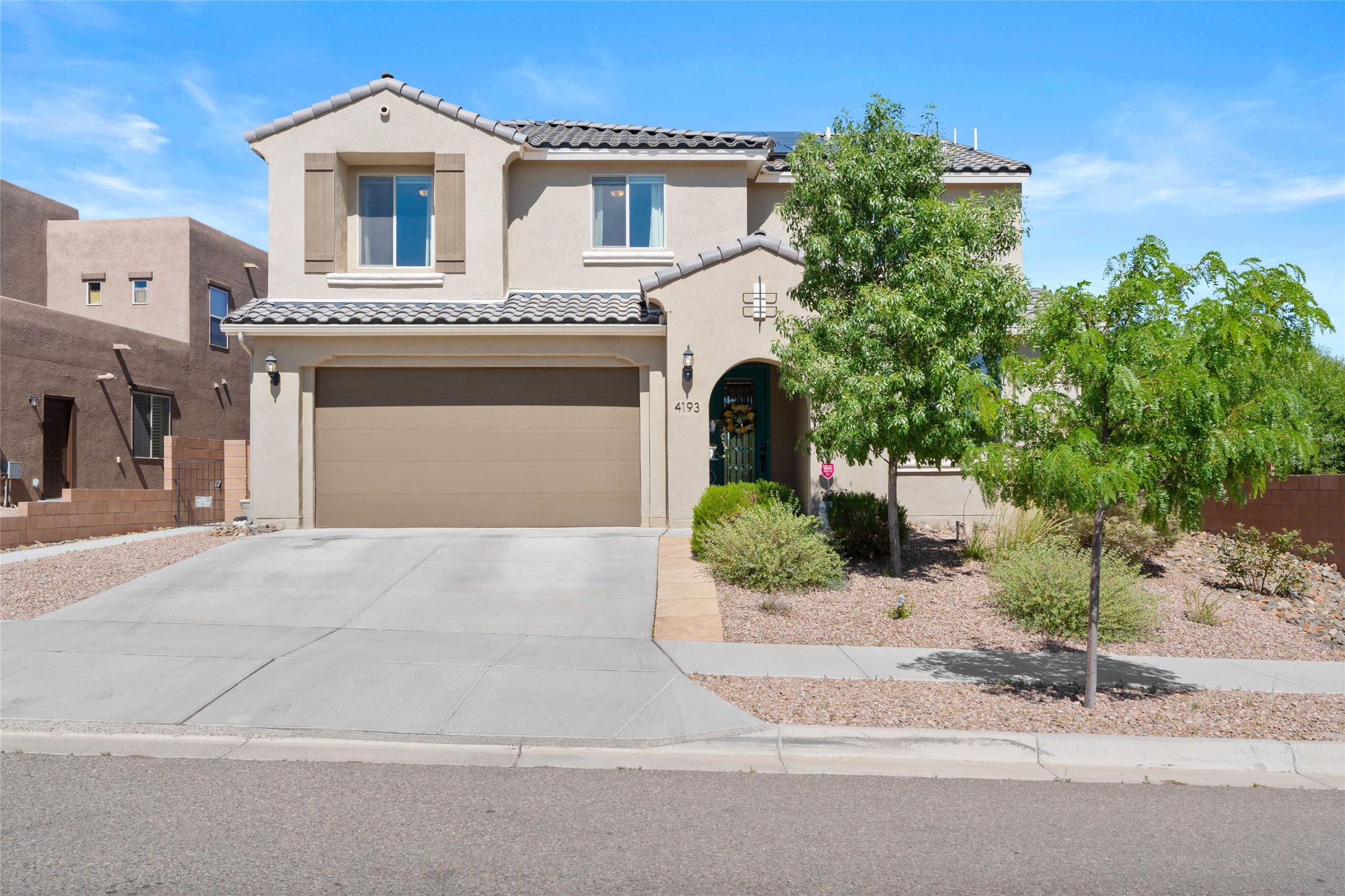 5-bedroom 3 bath residence with captivating mountain and garden views located in Vista de las Solares neighborhood. This thoughtfully designed home provides plenty of space for comfortable living. The upgraded kitchen includes a modern cabinet system, perfect for culinary enthusiasts, while two inviting fireplaces enhance the warmth and charm of the living areas. The primary bedroom serves as a private sanctuary, offering a spacious walk-in closet, a relaxing soaking tub, and access to a private deck--ideal for enjoying the serene surroundings. The third and fourth bedrooms present flexible options, easily transforming into an office, studio, or exercise room based on your needs. A guest bedroom and bath are conveniently situated on the first floor, ensuring comfort for visitors. 2 bathrooms come with grab bars for safety and convenience. Step outside to discover a large backyard featuring grapevines, peach and plum trees, and raised garden beds, ideal for gardening aficionados. This outdoor space is equipped with two irrigation systems, a freeze-proof hydrant, and outdoor lighting, creating an inviting atmosphere for gatherings or quiet evenings. Landscaped yard with drought resistant garden with buffalo grass. Energy efficiency is a highlight of this property with photovoltaic solar panels, SMART home upgrades and wired garage for an EV charger, all promoting sustainable living. Conveniently located near the Santa Fe Regional Airport, Santa Fe Place Mall, and Presbyterian Medical Center.