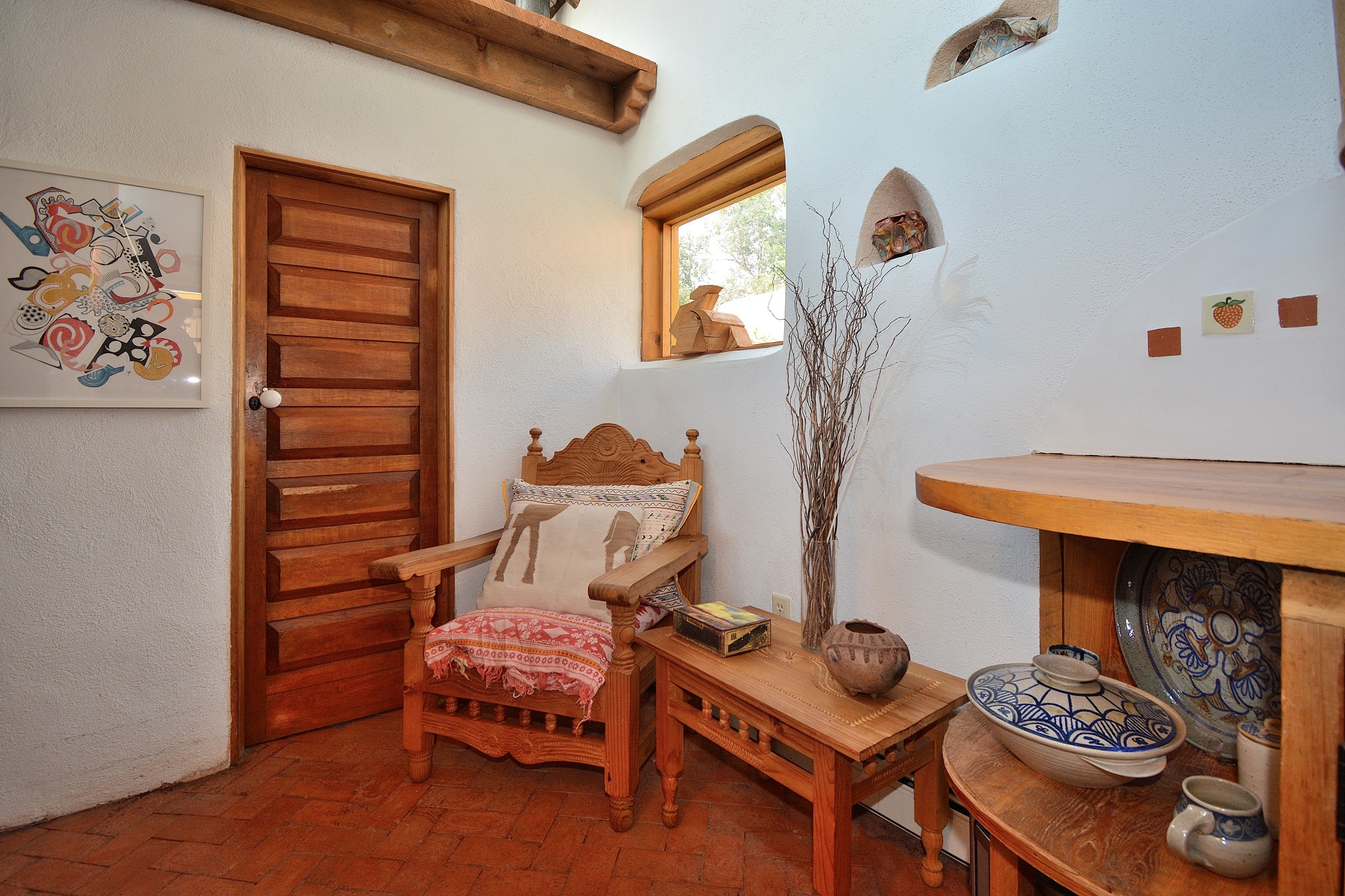 If your looking for an Ideal Santa Fe Home with historic Charm Stop and See! LOCATION LOCATION LOCATIONRecent price reduction and a new TPO roof overlay/ Brand New Skylights installed in November 2025..what's not to love! This home is located in the coveted Historic Eastside. This home is Quintessential Santa Fe Charm! Partial Adobe construction, Wood Frame, wood ceilings, vigas, 2 wood burning Kiva Fireplaces, Brick floors with radiant heat. CASITA round back with Separate entrance. Home is a 10 minute walk to Canyon Road featuring Art galleries and many of SF best Dining establishments. The home offers mature gardens front/back and a secret terrace. The main house features a kitchen with amazing sunlit tall ceilings and windows. You will appreciate the original wood cabinetry and wood countertops. Breakfast area or office space off of the kitchen. laundry area is conveniently adjoined with the 1/2 bath. Behind the main house you'll find a private courtyard and an attached Casita complete with a loft space that currently serves as a sleeping area. There is a kitchenette, and a full bathroom(Shower needs to be remodeled but is functional). Occupy the casita as an extension of your home or use as an office or artist studio. The home has undergone a pre-inspection and is priced accordingly.