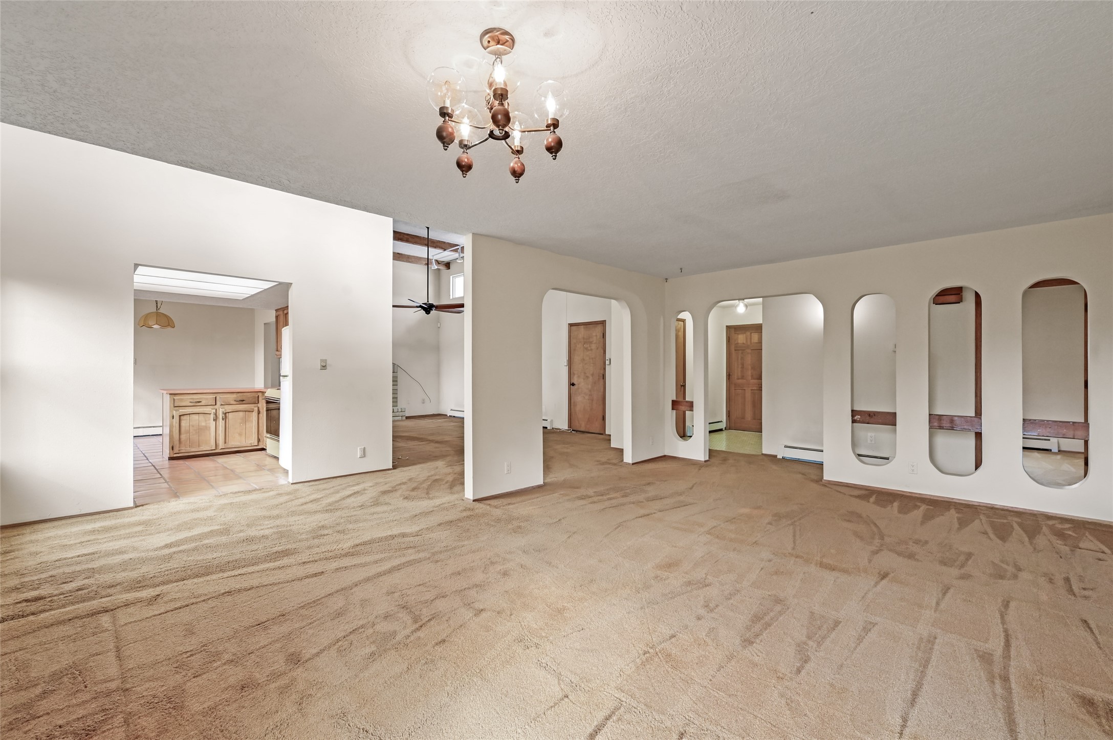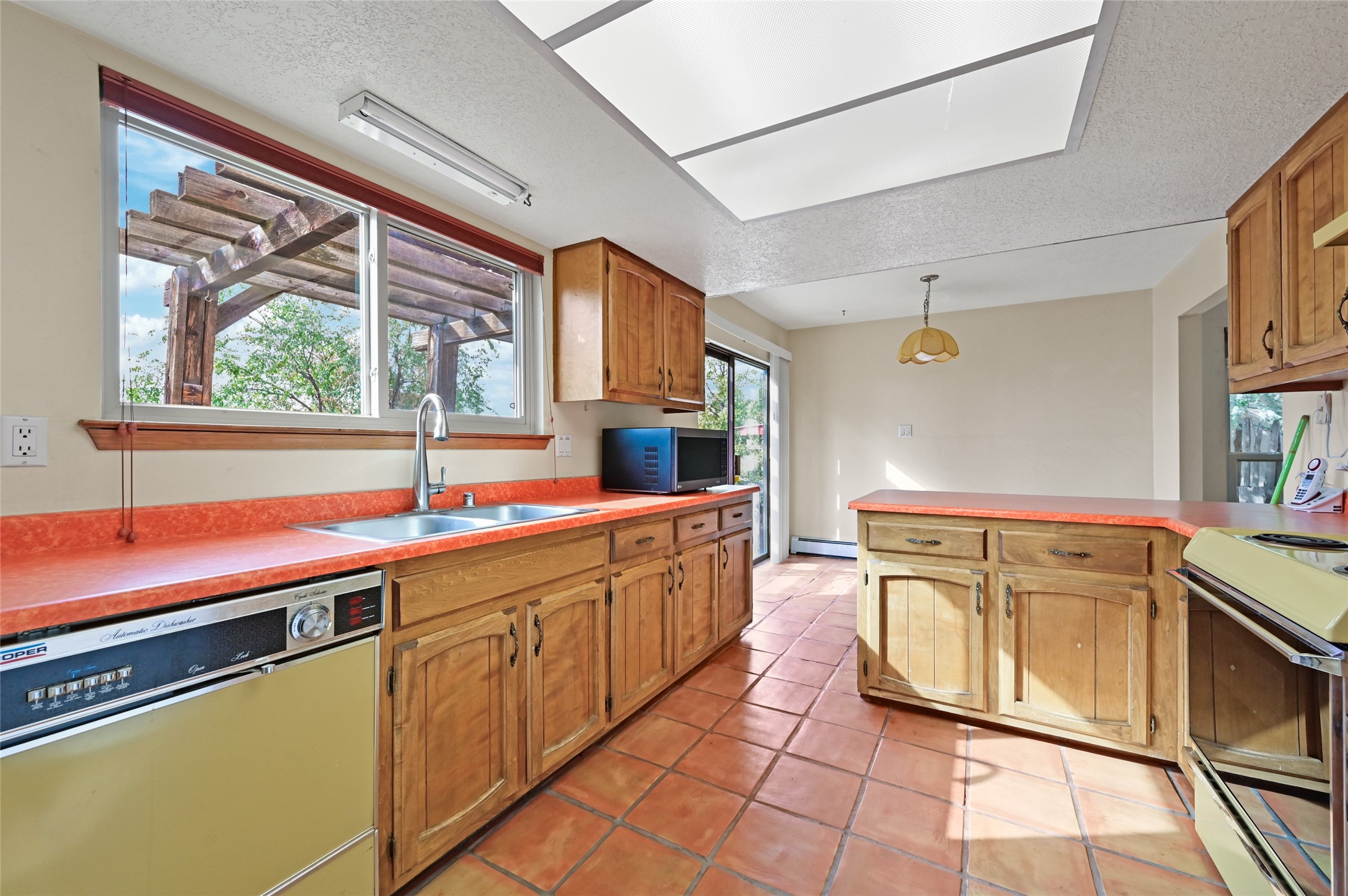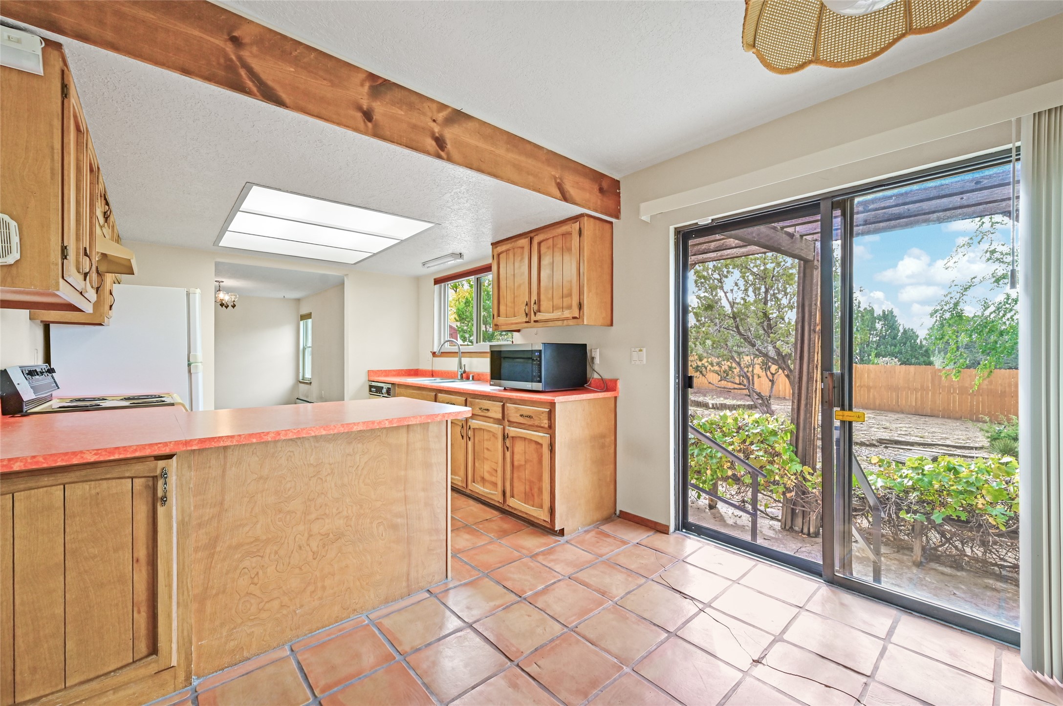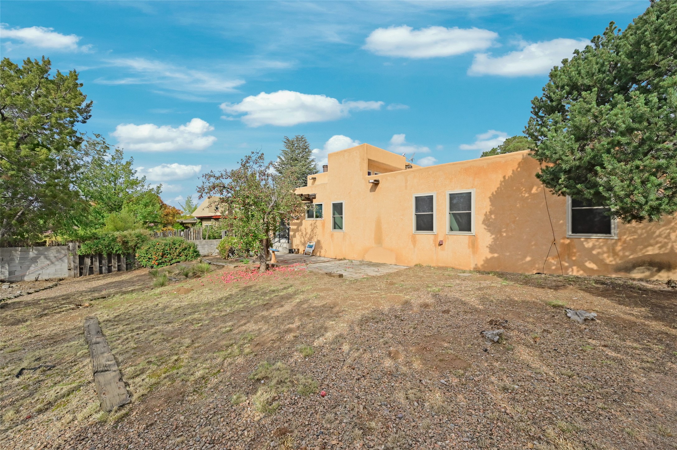 Rare opportunity to reimagine this 3 bed/2 bath 1700+sf single family home on ~1/4 acre lot in classic, central Santa Fe location! Entry foyer opens to living room w/dramatic tall ceilings, beams, windows, and wood burning fireplace. Eat-in kitchen w/dining area has classic Saltillo tile flooring and leads to generous rectangular backyard w/ample space to create and upgrade for multiple purposes, from gardening, entertaining, restoration, and more. 2 car garage + additional spaces in driveway/street. Close to everything. Neighborhood is just minutes from I-25 & Railrunner station for commuters, retail/grocery stores, multiple schools, and <10 min drive to the Plaza. Come and see the potential this has to offer to make it your own!