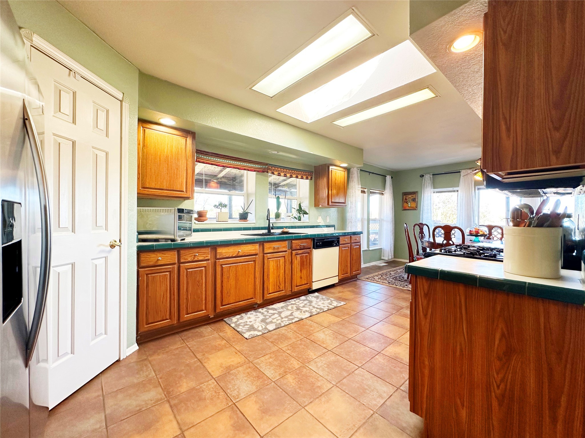 Welcome home to this delightful 2 bedroom, 2 bath modular home on 5.04 acres of stunning New Mexico landscape in San Geronimo. This beautifully level property offers breathtaking panoramic mountain views, rolling meadows, and graceful pine trees - your own natural sanctuary. The thoughtfully designed master suite serves as your personal haven, featuring a comfortable sitting area and access to its own private covered deck where you can unwind after a fulfilling day. Additionally, the home features an expansive wrap-around deck offering commanding views of the iconic Hermit's Peak and spectacular sunsets across the crisp mountain landscape.The spacious kitchen provides generous storage and counter space, ideal for preparing meals or entertaining. The den offers wonderful flexibility with its