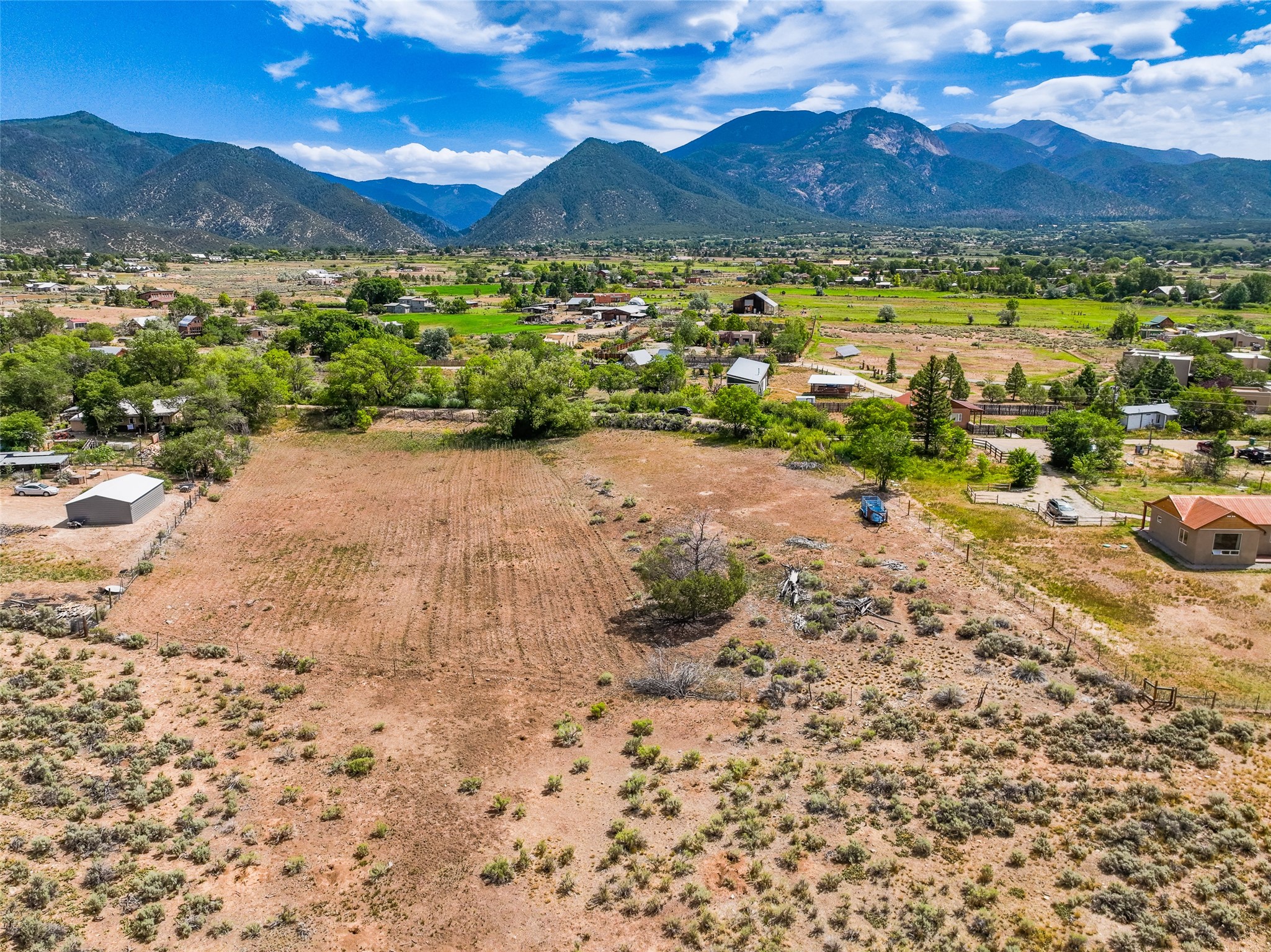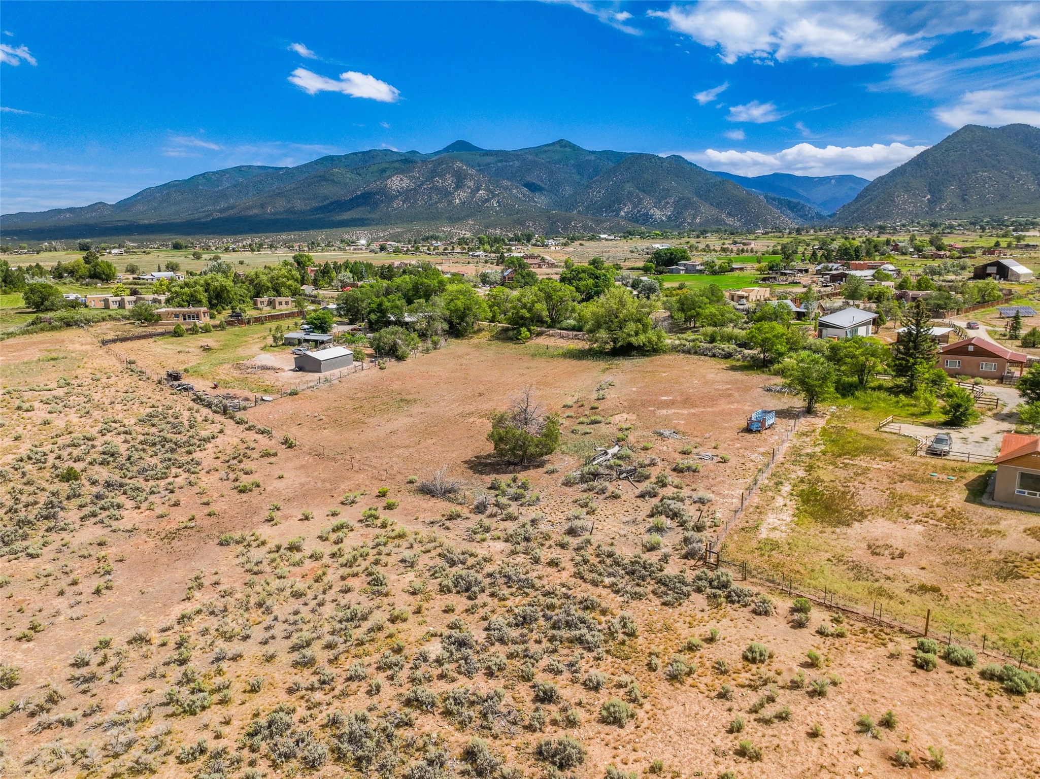 RARELY AVAILABLE LAND, IN ONE OF NEW MEXICO'S MOST PICTURESQUE AND SOUGHT-AFTER AREAS IN THE BEAUTIFUL VALLEY OF ARROYO SECO,TAOS. INVEST IN OR BUILD YOUR DREAM HOME. 2.17 LUSH ACRES. IRRIGATION DITCH WITH ACTIVE WATER RIGHTS AND ENDLESS UNOBSTRUCTED MOUNTAIN VIEWS! Rarely does land in this highly desired part of Arroyo Seco ever come available and to market. Wake up each morning to the beauty of nature surrounding you. Located in a serene and quiet area, this property offers the perfect retreat from the hustle and bustle of city life, ensuring peace and privacy. Lie back under the shade trees and feel the clean mountain air brushing gently across your skin and face. Listen to the sounds of water running freely through the acequia, take in the big Taos skies and unobstructed mountain views and feel yourself effortlessly unwinding into the tranquility of your new home . Nestled in the historic and picturesque valley of Arroyo Seco, this pristine 2.17-acre parcel offers a unique opportunity to build your dream home. Level and ready for development. Acequia with water rights included; for farming, gardening, or maintaining lush landscaping. Area identified and marked for drilling Well. Panoramic views of the Sangre de Cristo Mountains, including Lucero, Picuris and Wheeler Peak(the highest peak in New Mexico) Just a short drive away, you can enjoy the vibrant arts scene, unique shops, and delicious dining options in the charming village of Arroyo Seco or Town of Taos. Whether you're looking to build a home, start a farm, or simply invest in a valuable piece of property, this 2.17-acre parcel in Arroyo Seco is the perfect choice. Originally settled in 1804, Arroyo Seco is known for its old world charm, rich history, tranquil environment, and within minutes to the world renowned Taos Ski Valley.