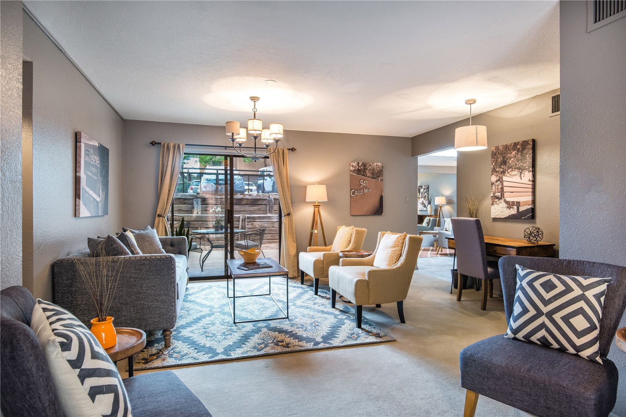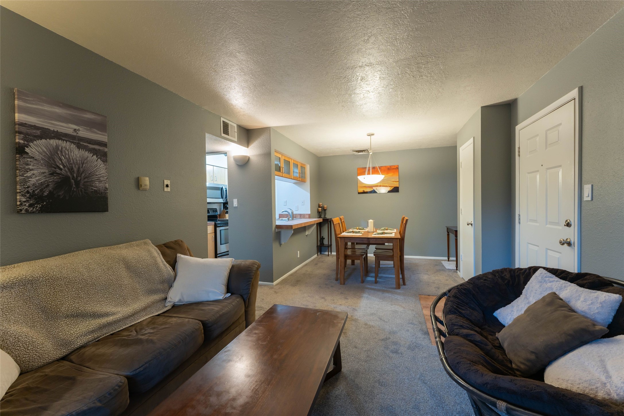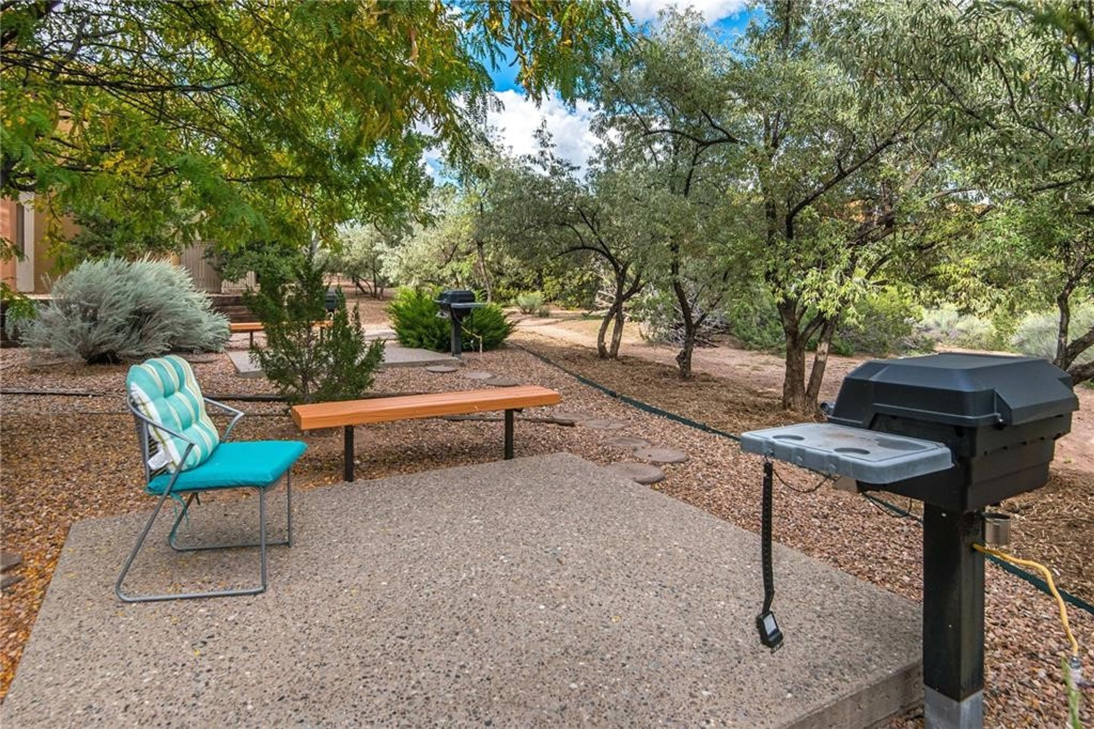 Welcome to The Reserve at Santa Fe, a beautifully maintained gated community just minutes from downtown. This furnished 1-bedroom, 1-bath residence offers comfort, privacy, and convenience in one of Santa Fe's most desirable condominium settings. The living area features soft natural light, neutral tones, and access to a private balcony surrounded by mature trees, creating a peaceful retreat. An open dining area connects seamlessly to the kitchen, which is equipped with stainless steel appliances, maple cabinetry, and tile countertops. The spacious bedroom includes ample closet space, while the full bath maintains the same clean, warm aesthetic found throughout the home. Move-in ready and sold with furnishings, this residence makes an excellent primary home, pied--terre, or long-term rental opportunity. The Reserve offers a host of amenities including a year-round heated pool, fitness center, clubhouse, walking trails, and on-site management, all within a secure gated setting just moments from shopping, dining, and the historic Plaza.